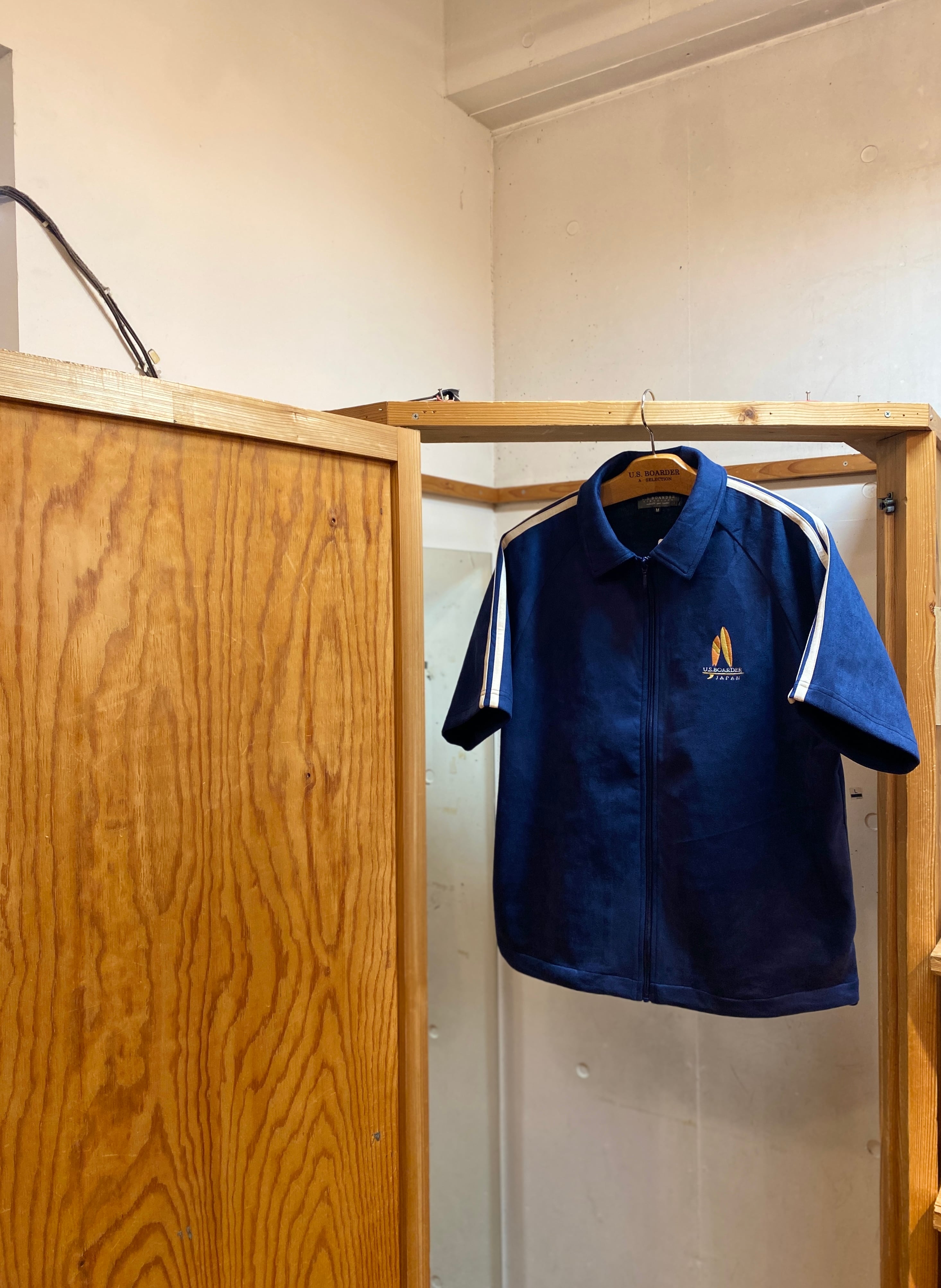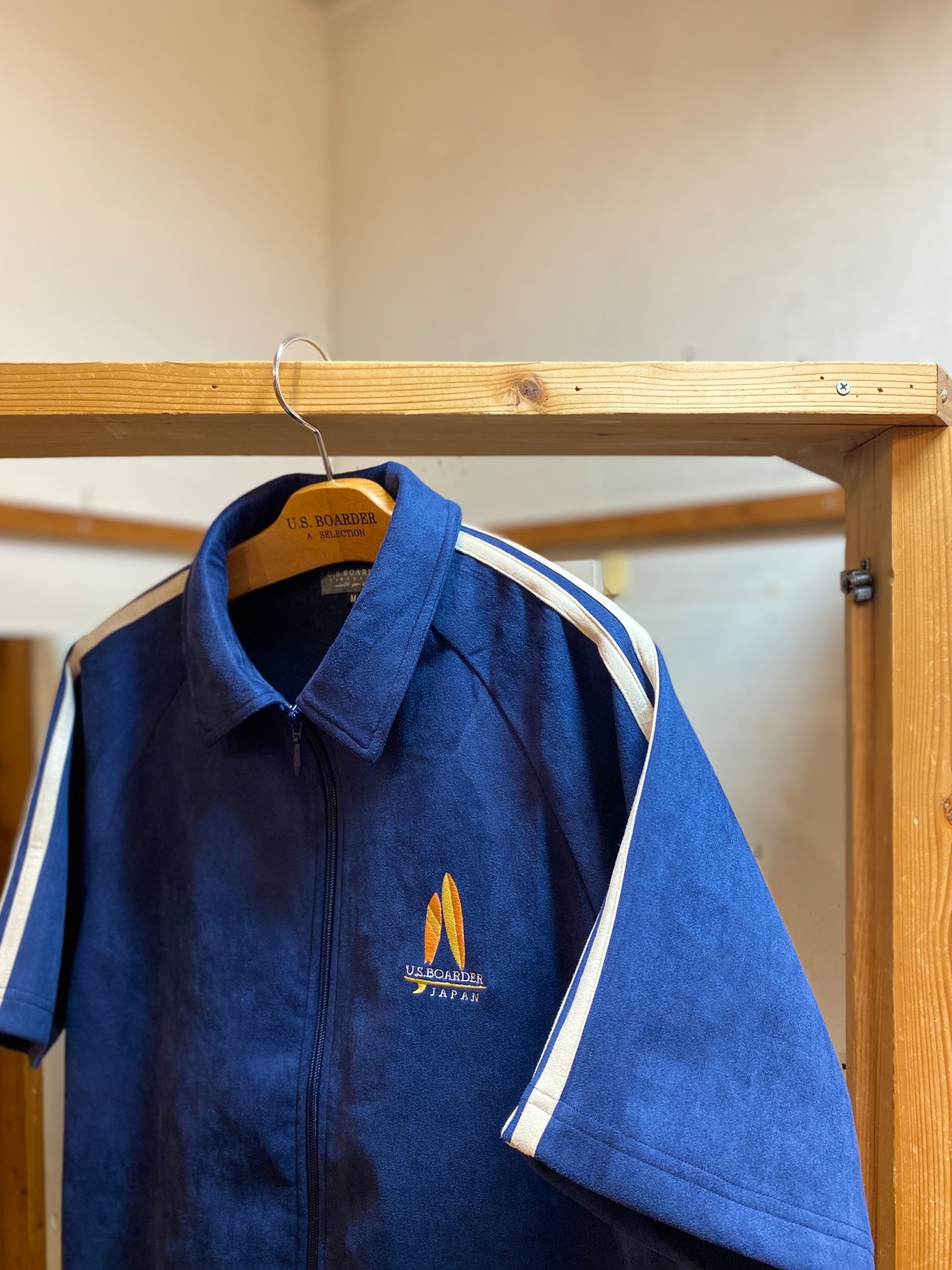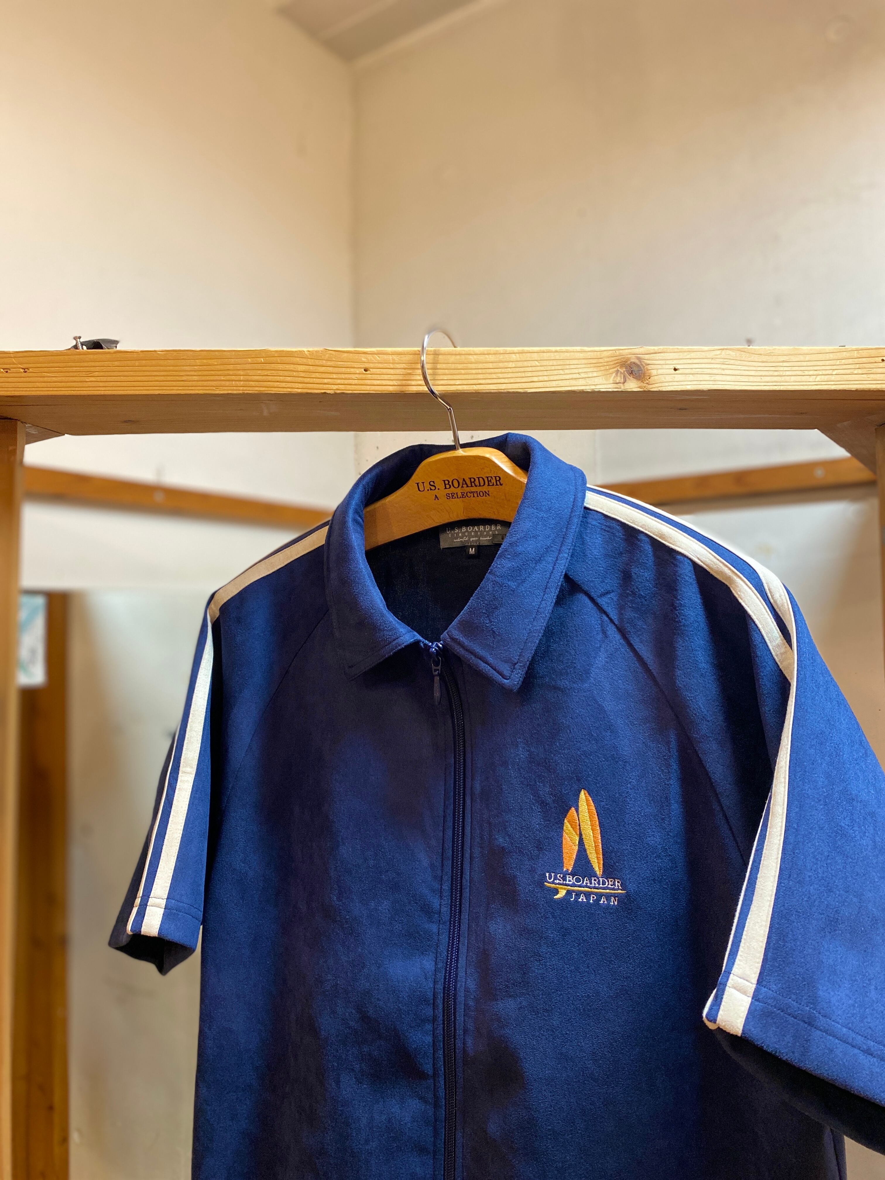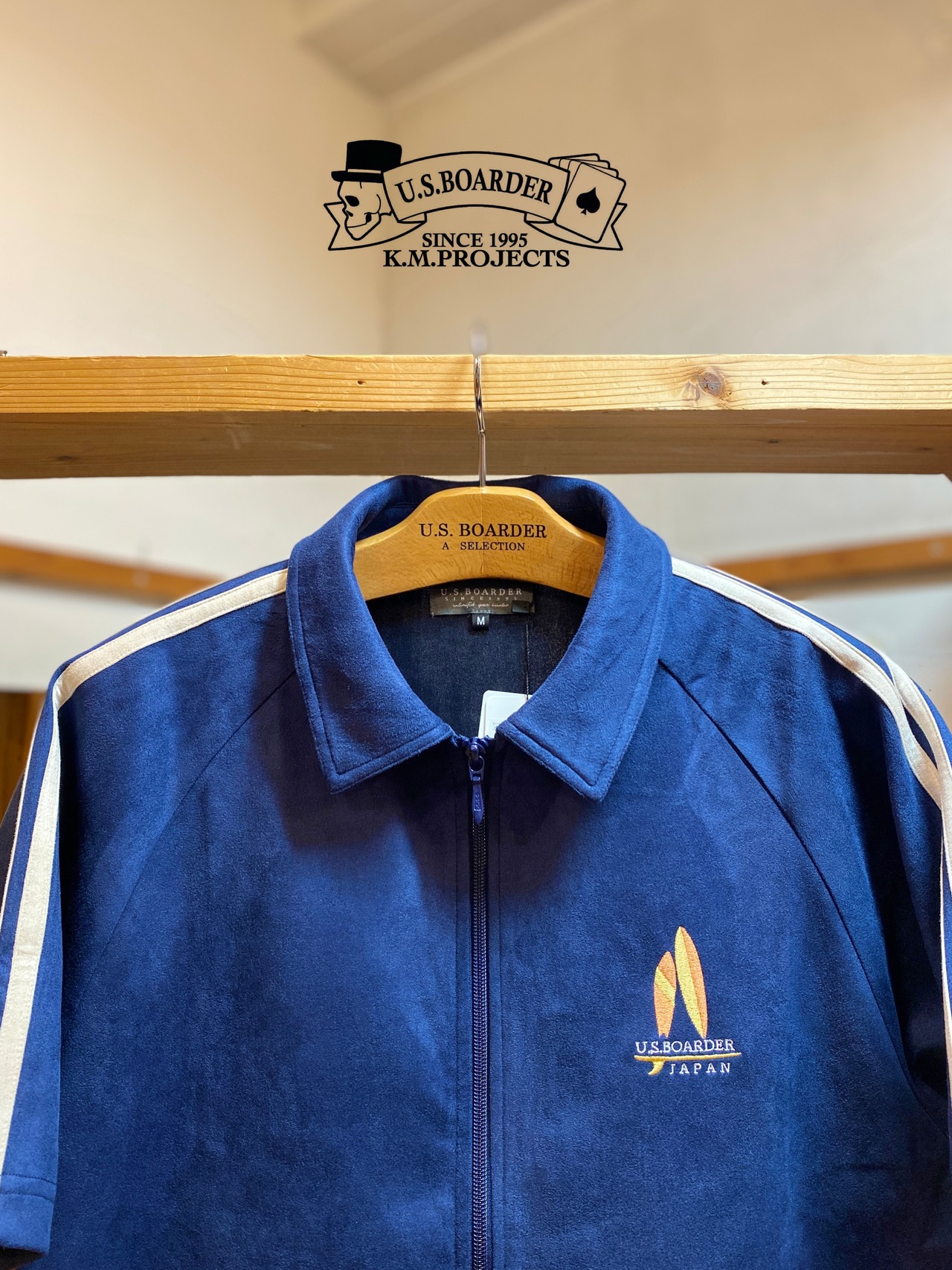 U.S.BOARDER S/S ZIPスエード ショートスリーブジャケット Navy blue NVY ネイビーブルー Jacket フェイクスエード サーフボード サーフィン トラックジャケット ブルゾン メンズ レディース ユニセックス u.s.boarder ユーエスボーダー