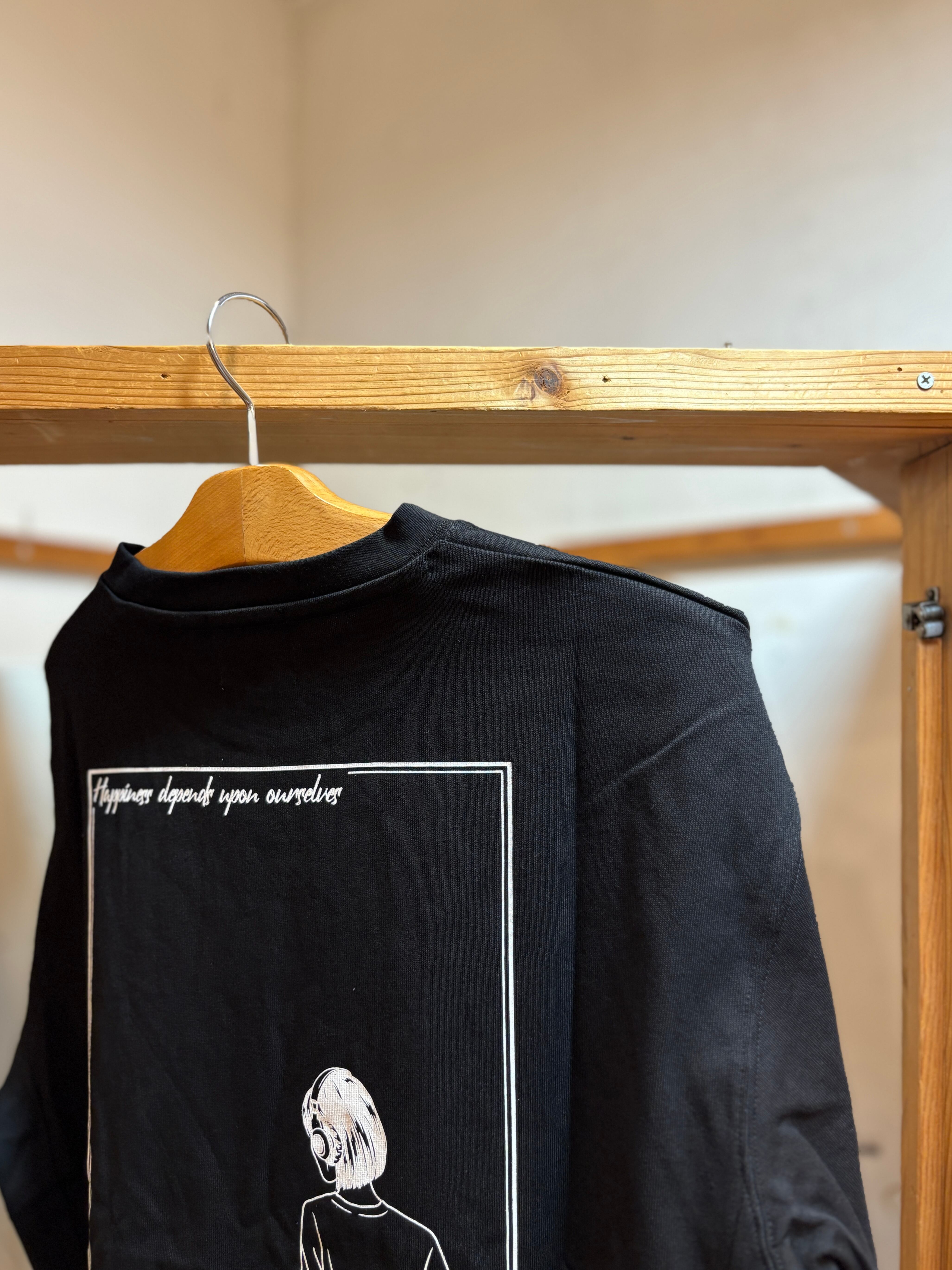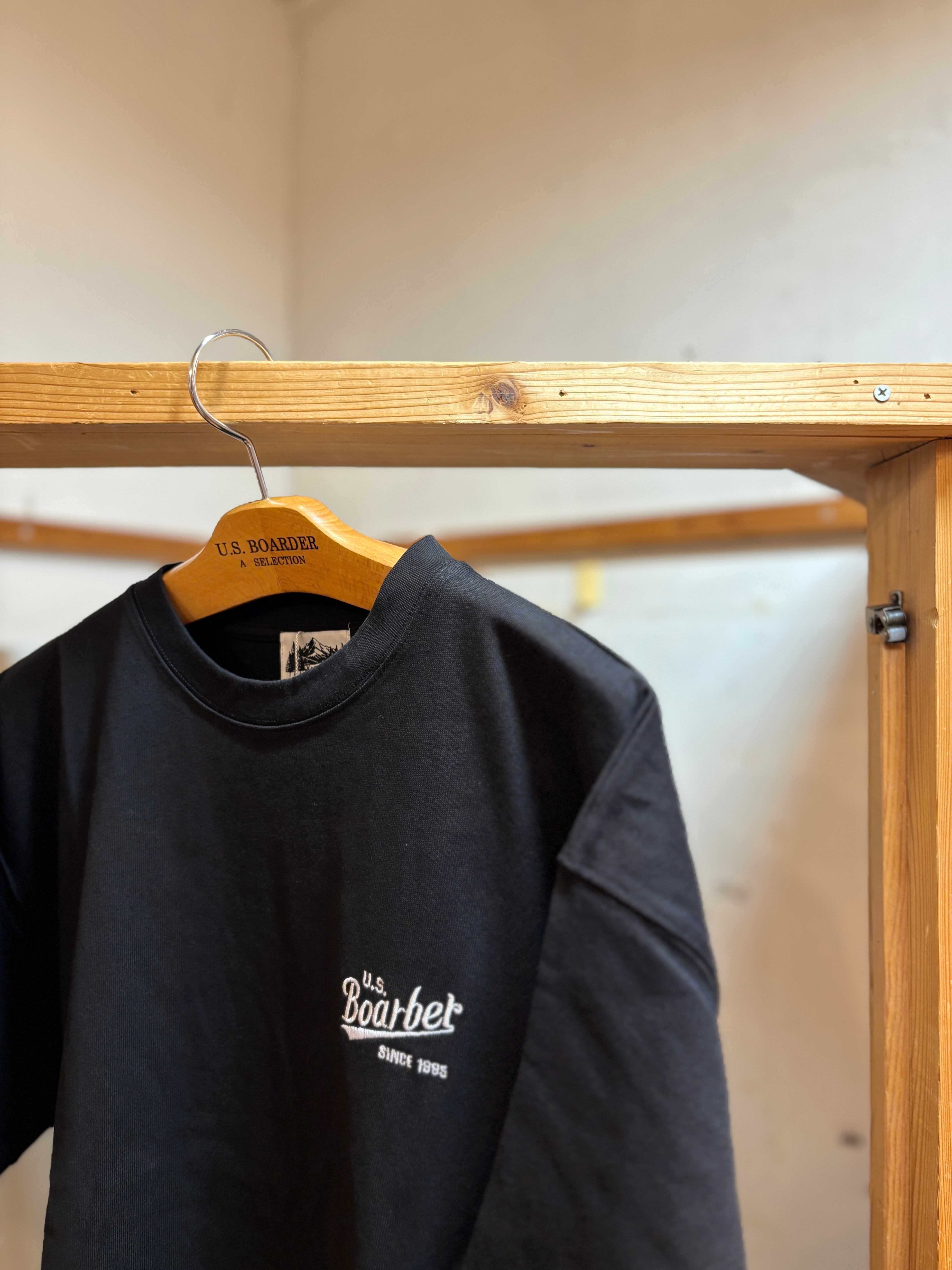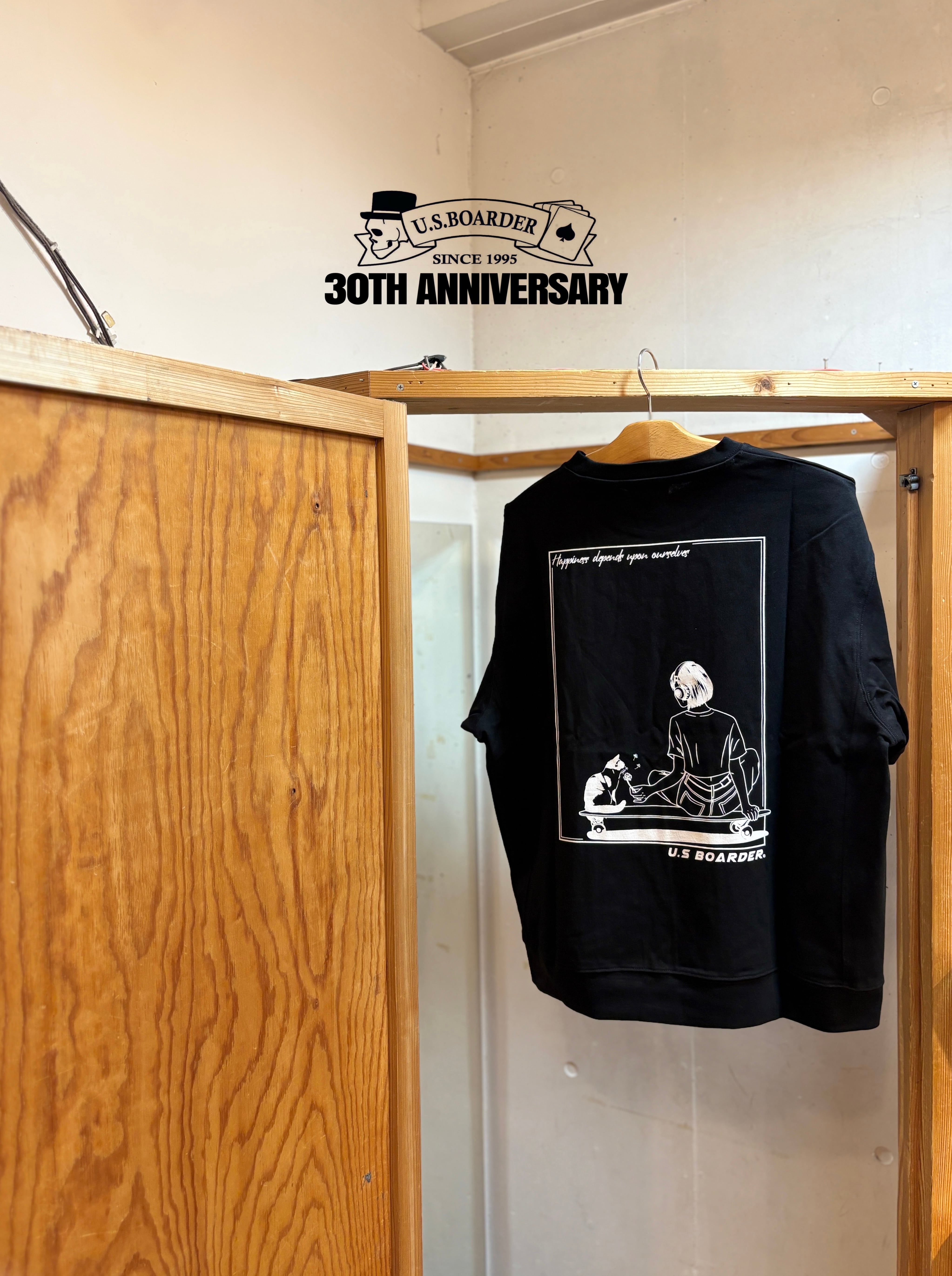 usboarder Sweat style T-shirt S/S スエットT Happiness タンポポと猫とスケートボードと女の子 幸福 幸せ Black ブラック 黒色 アメカジ カジュアル T-shirt ユーエスボーダー