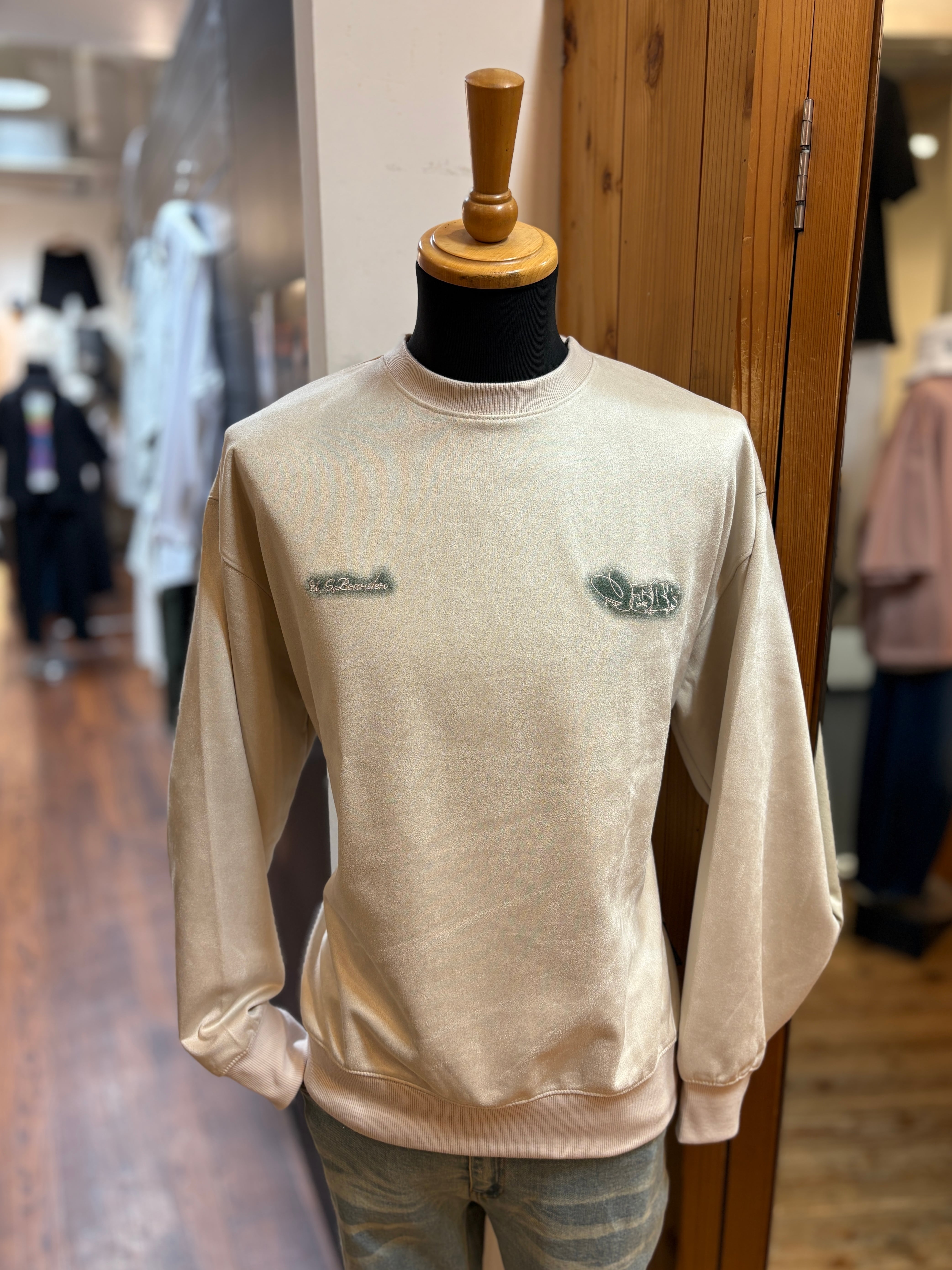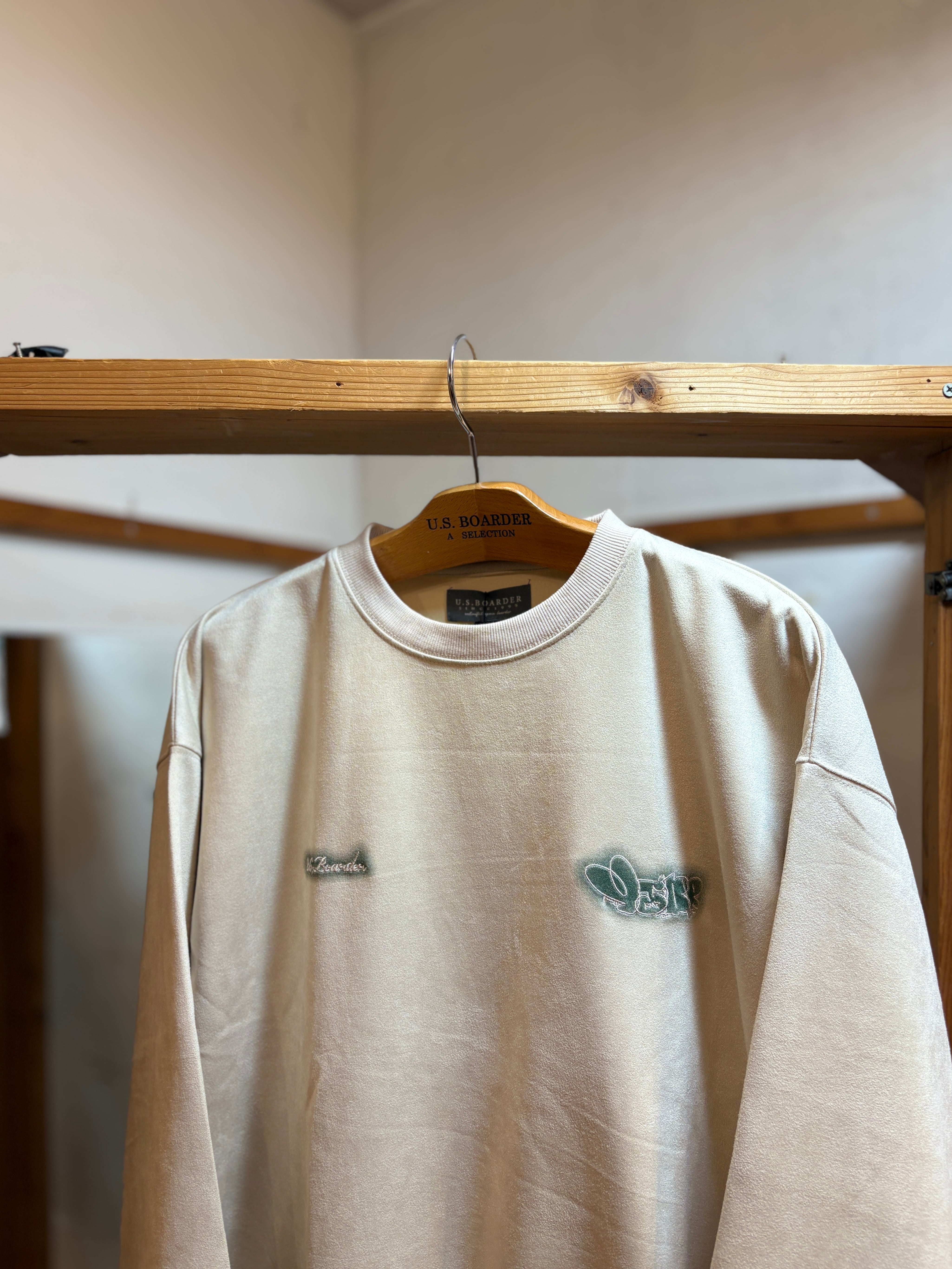 usboarder スエードトレーナー スエード トレーナー suede sweat shirt IVR アイボリー Ivory Throw up スローアップ 刺繍 U.S.BOARDER