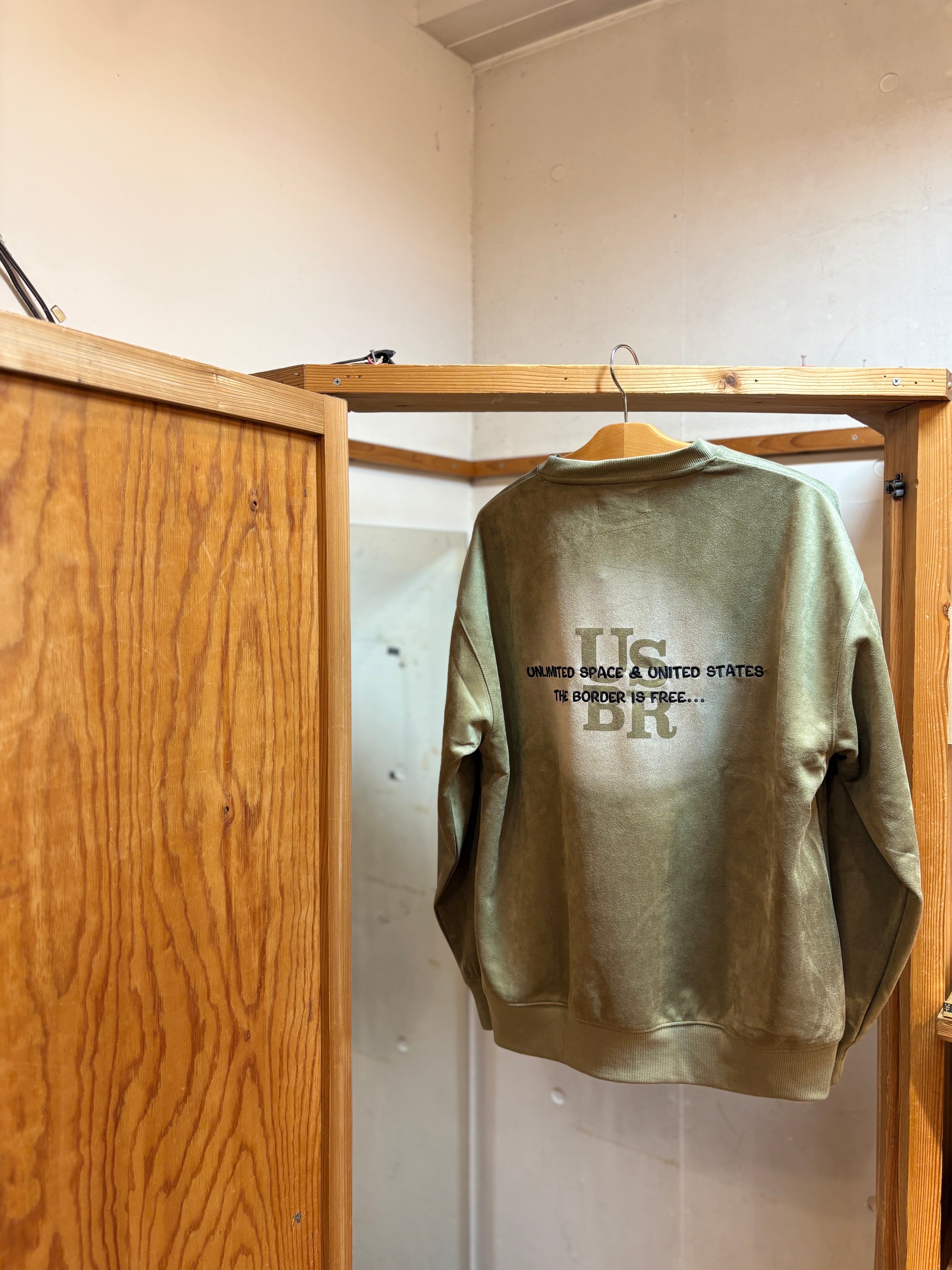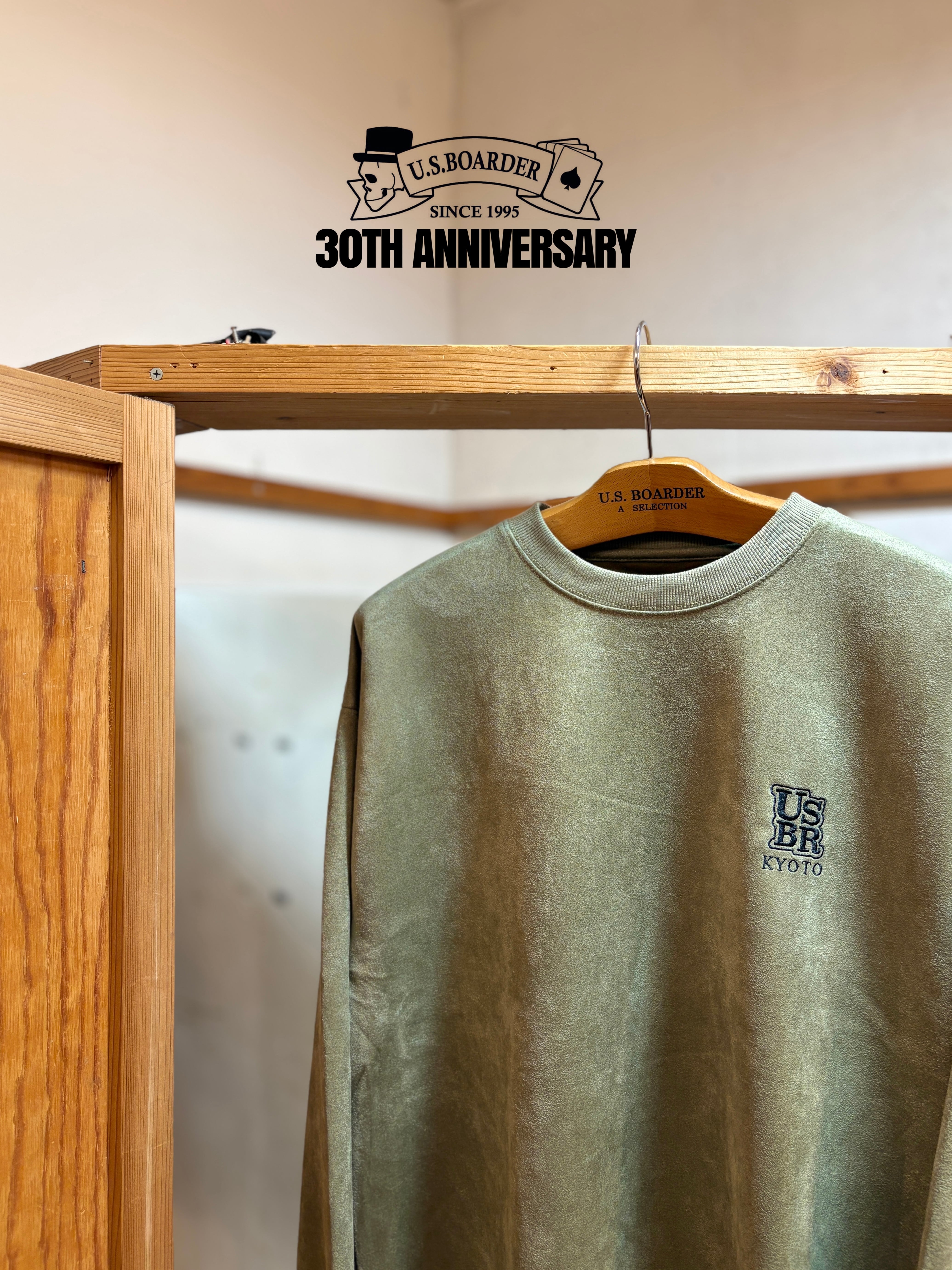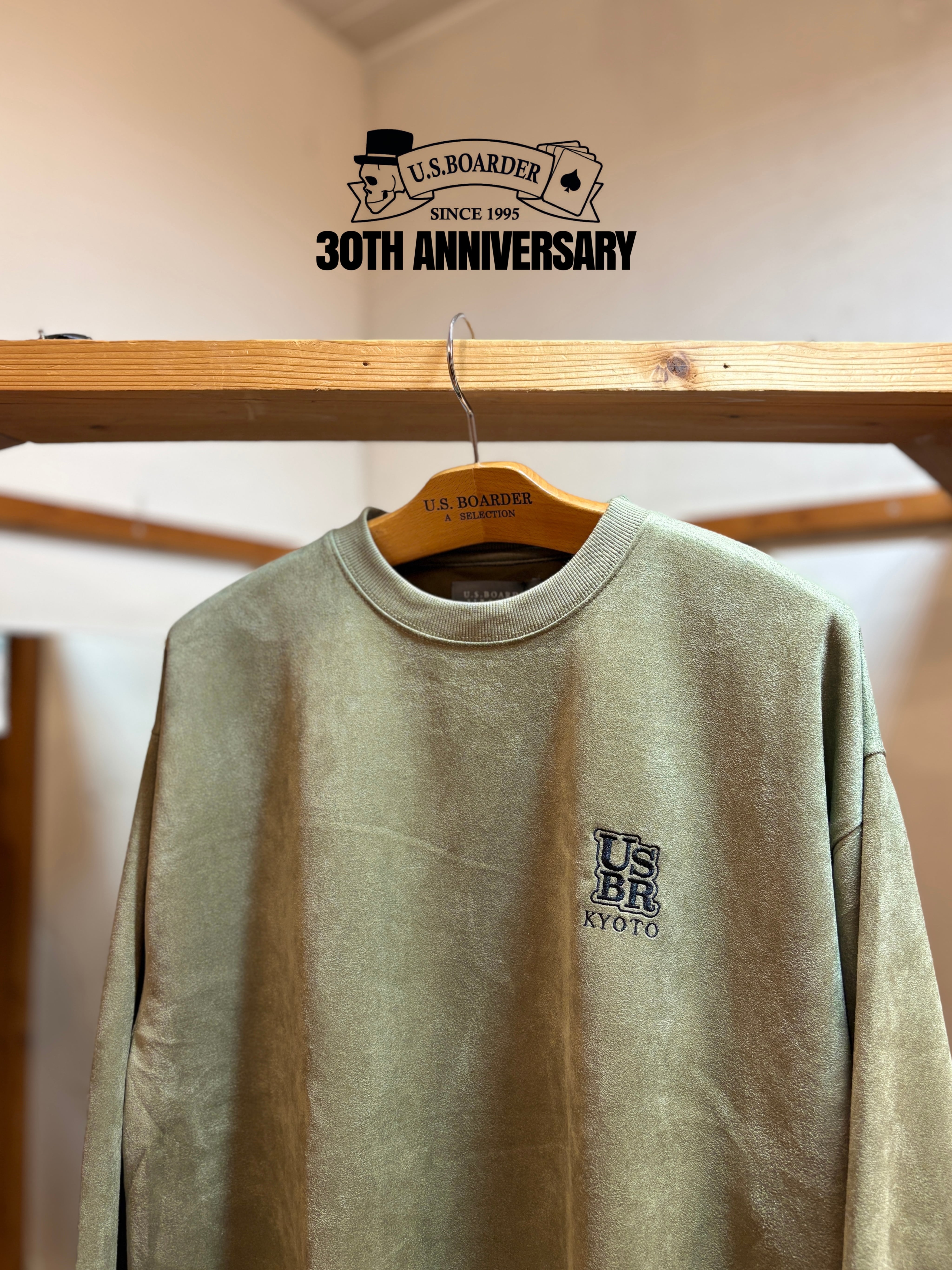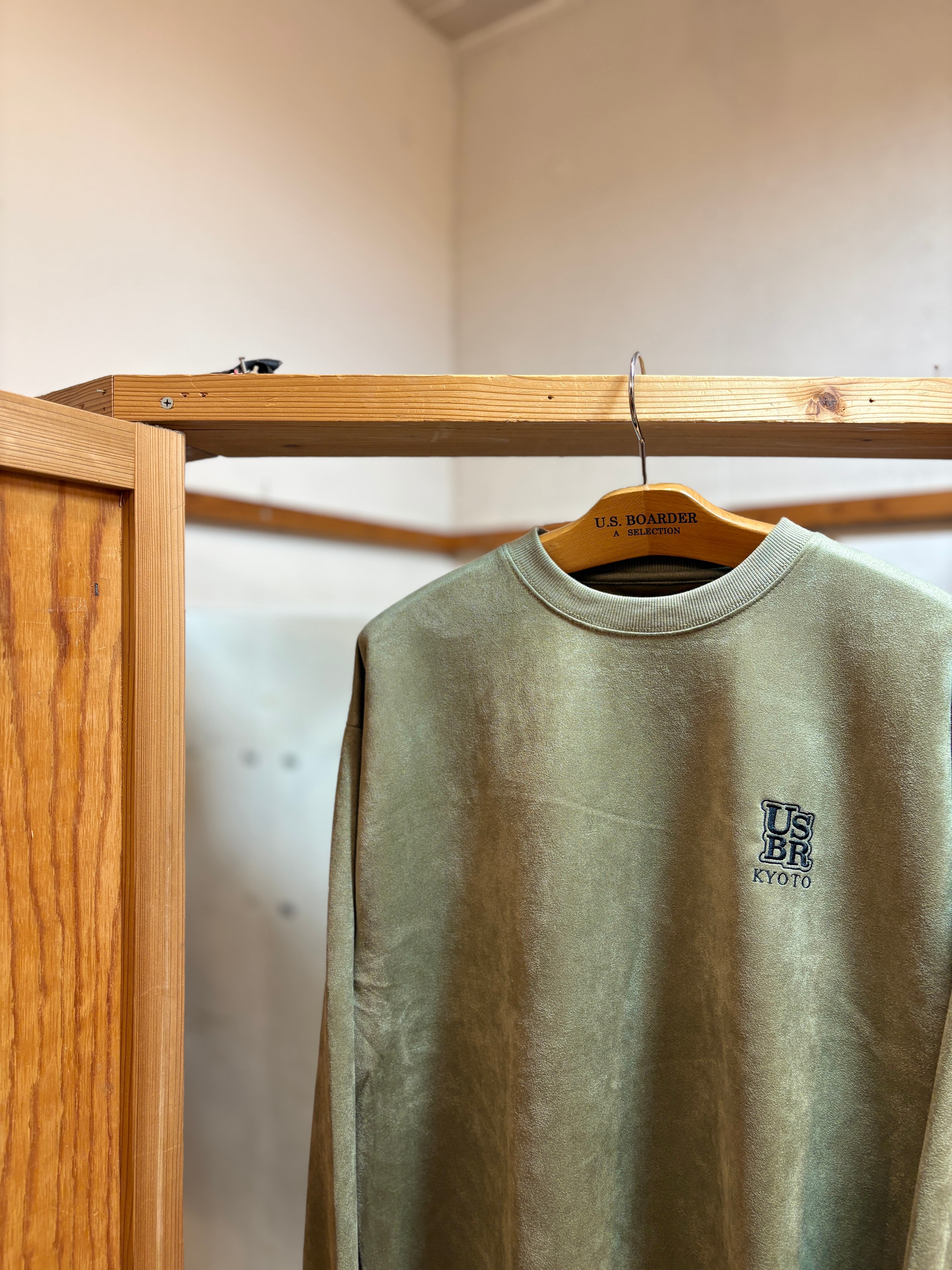 usboarder スエードトレーナー スエード トレーナー suede sweat shirt OLV オリーブ Olive Kyoto 京都 刺繍 U.S.BOARDER
