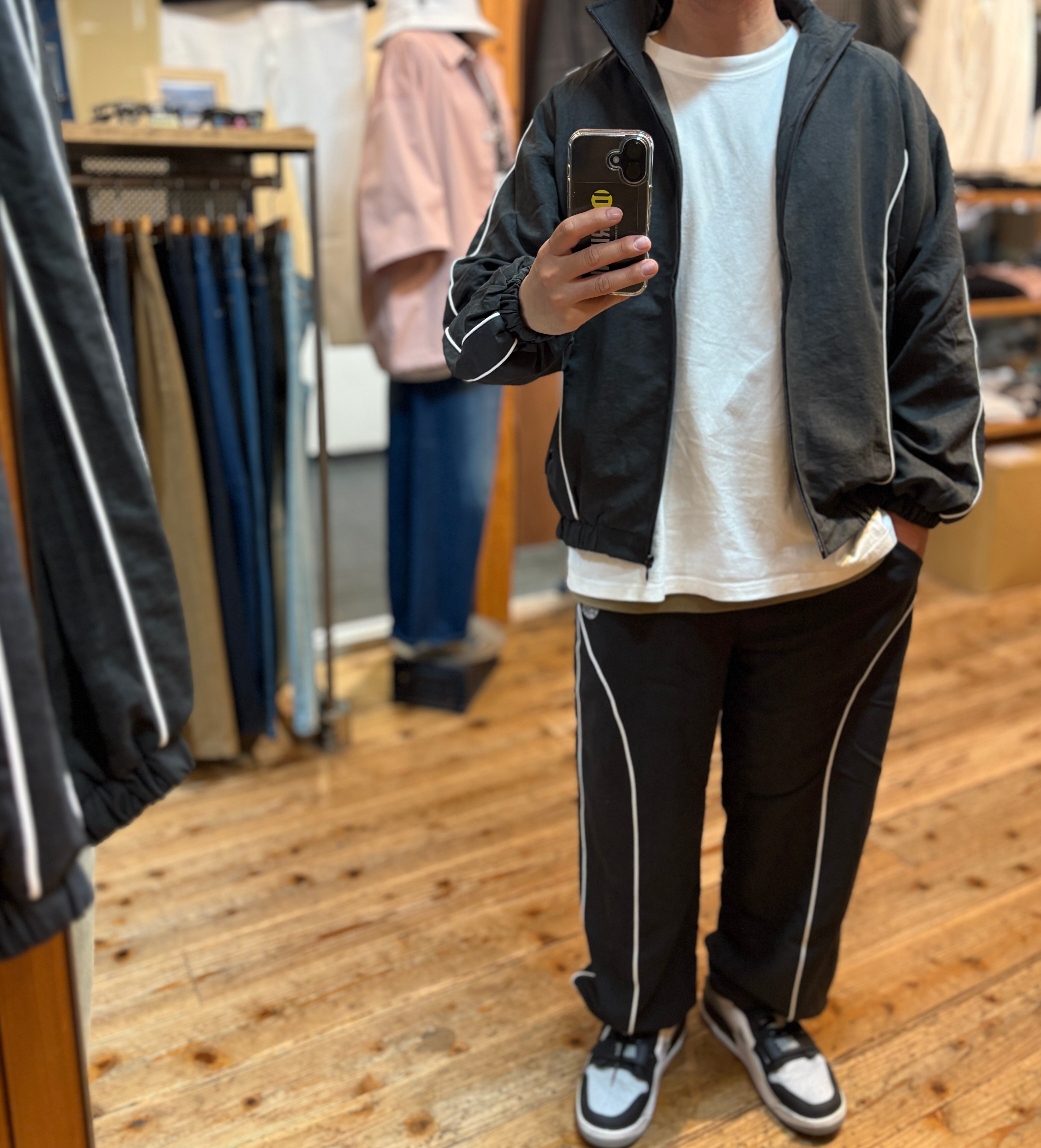 セットアップとなるボトムスのナイロンパンツもございます。こちらと併せての着用もお薦めです。
