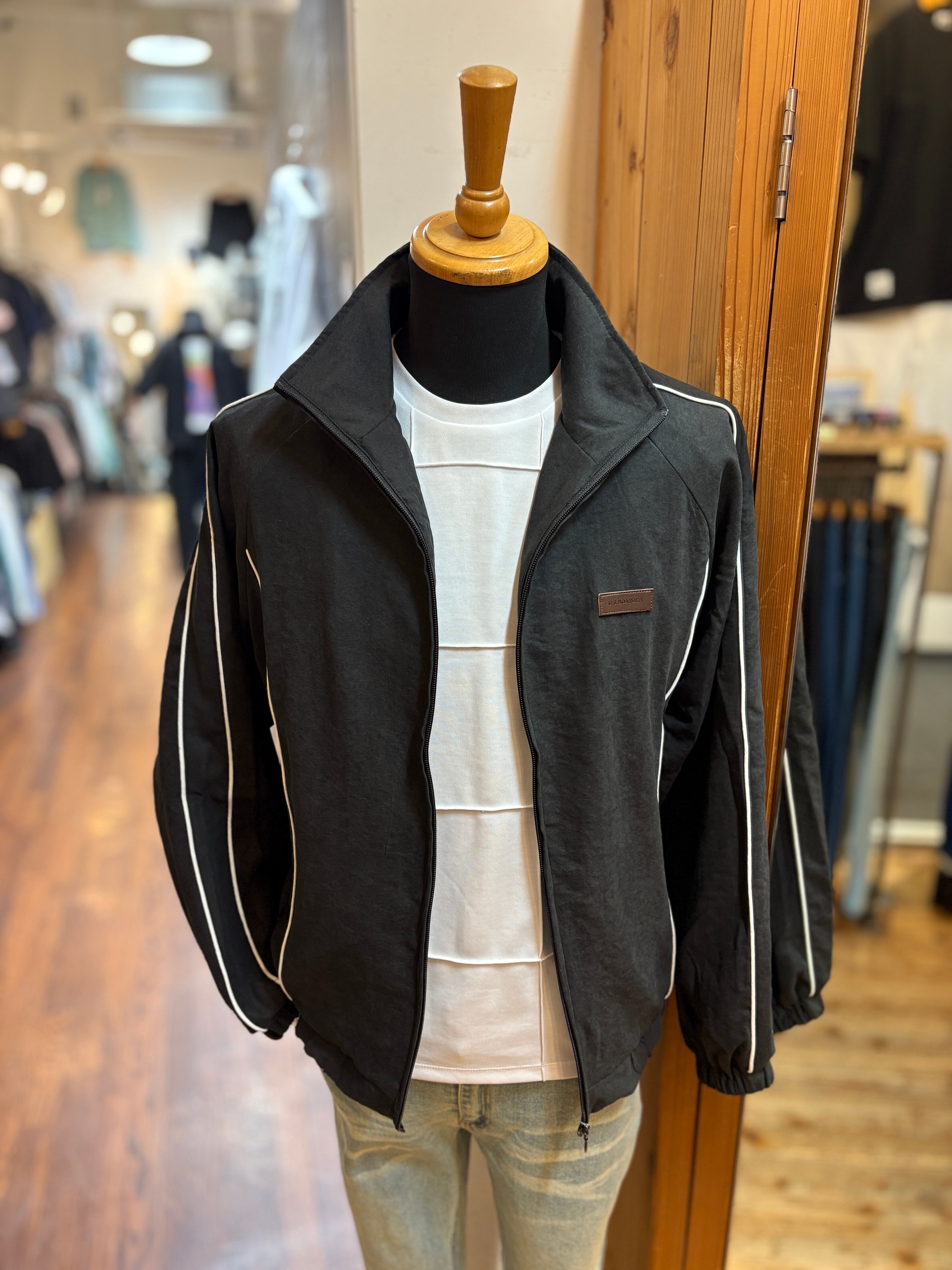スポーティーなルックスにライトな質感、パイピングがアクセント。ウィンドブレーカーとして最適です。
