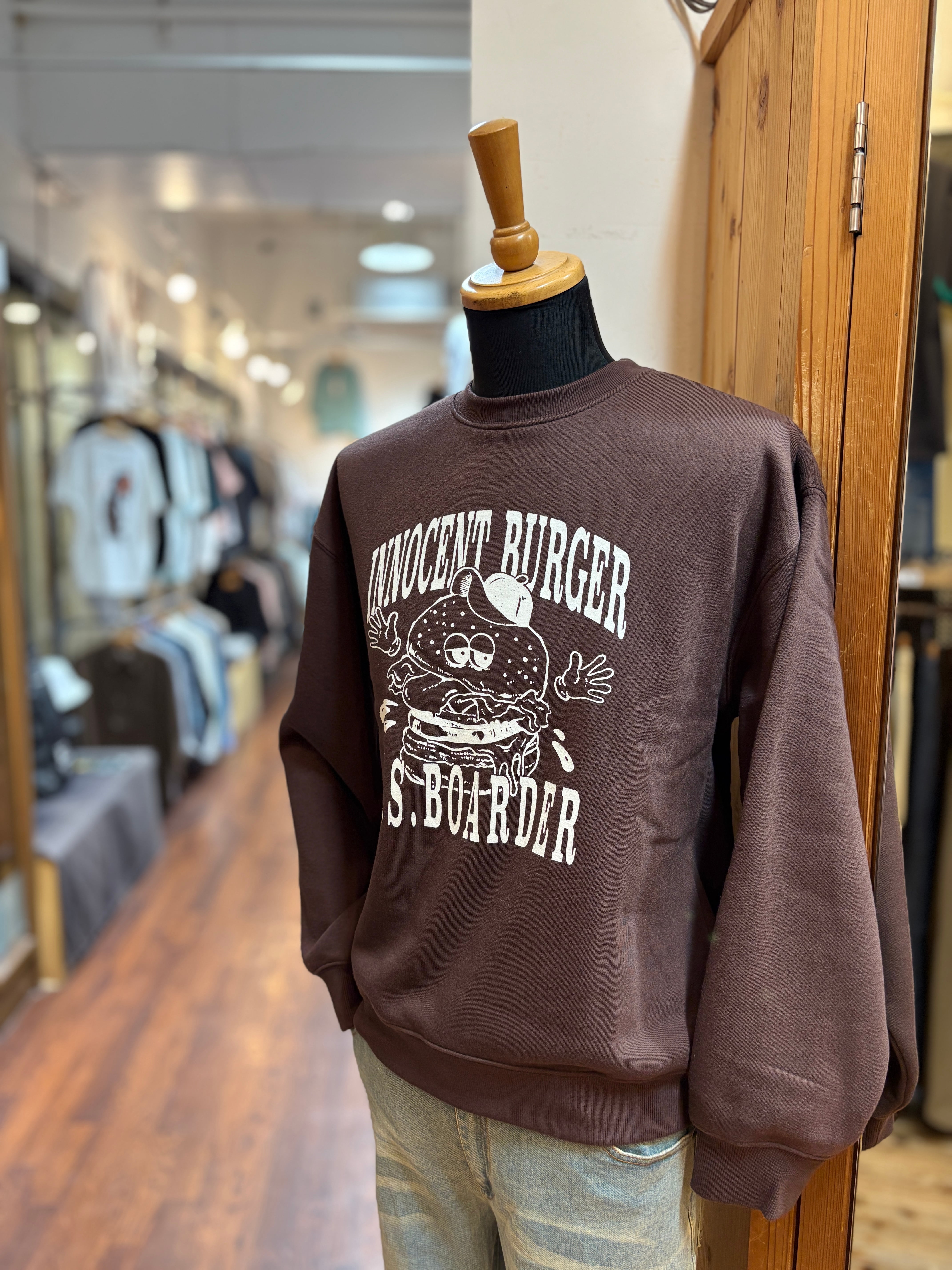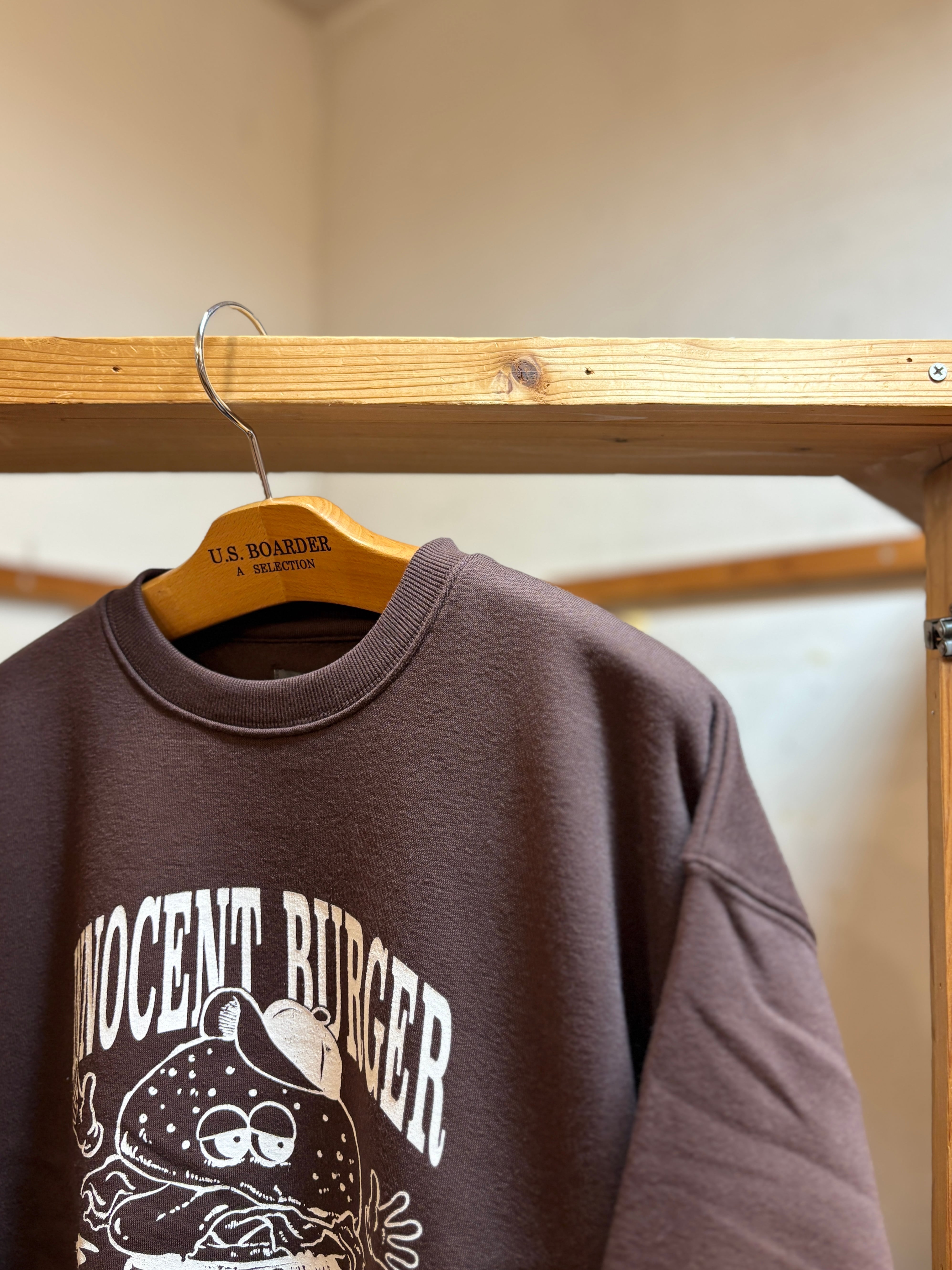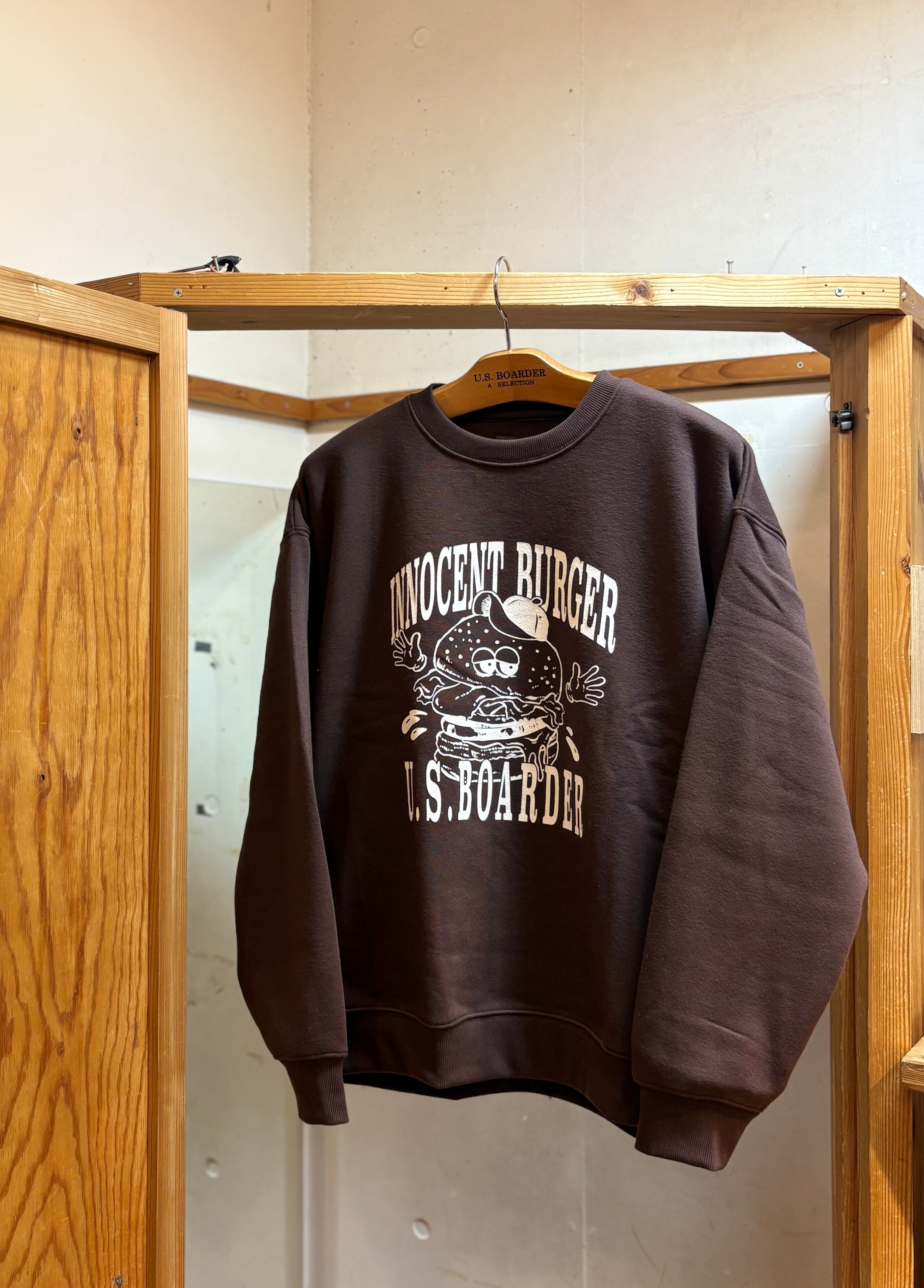 U.S.BOARDER 裏起毛25 SWT BRN ブラウン 茶色 刺繍 ハンバーガー バーガー burger オーバーサイズ sweatshirt usboarder ユーエスボーダー