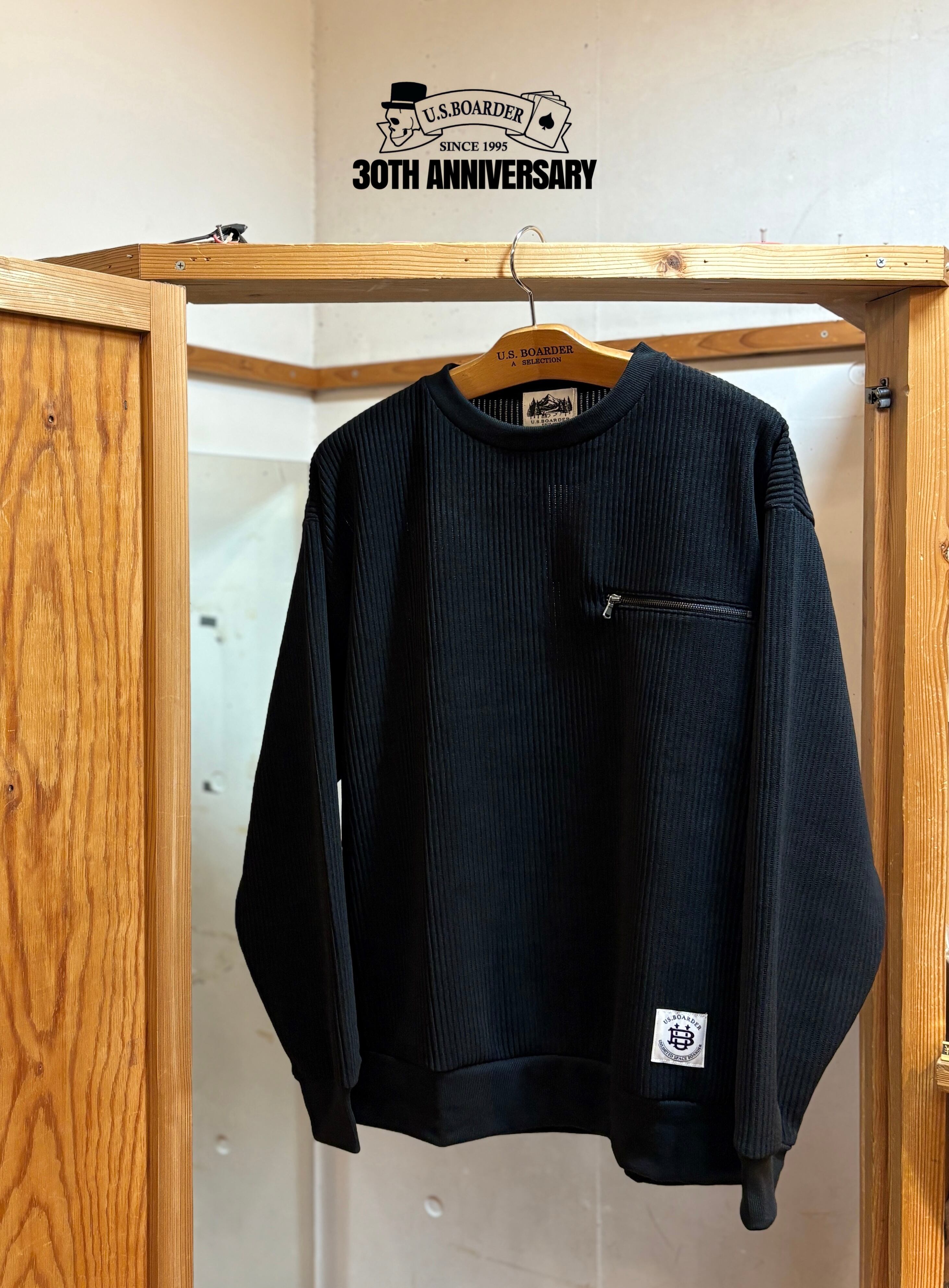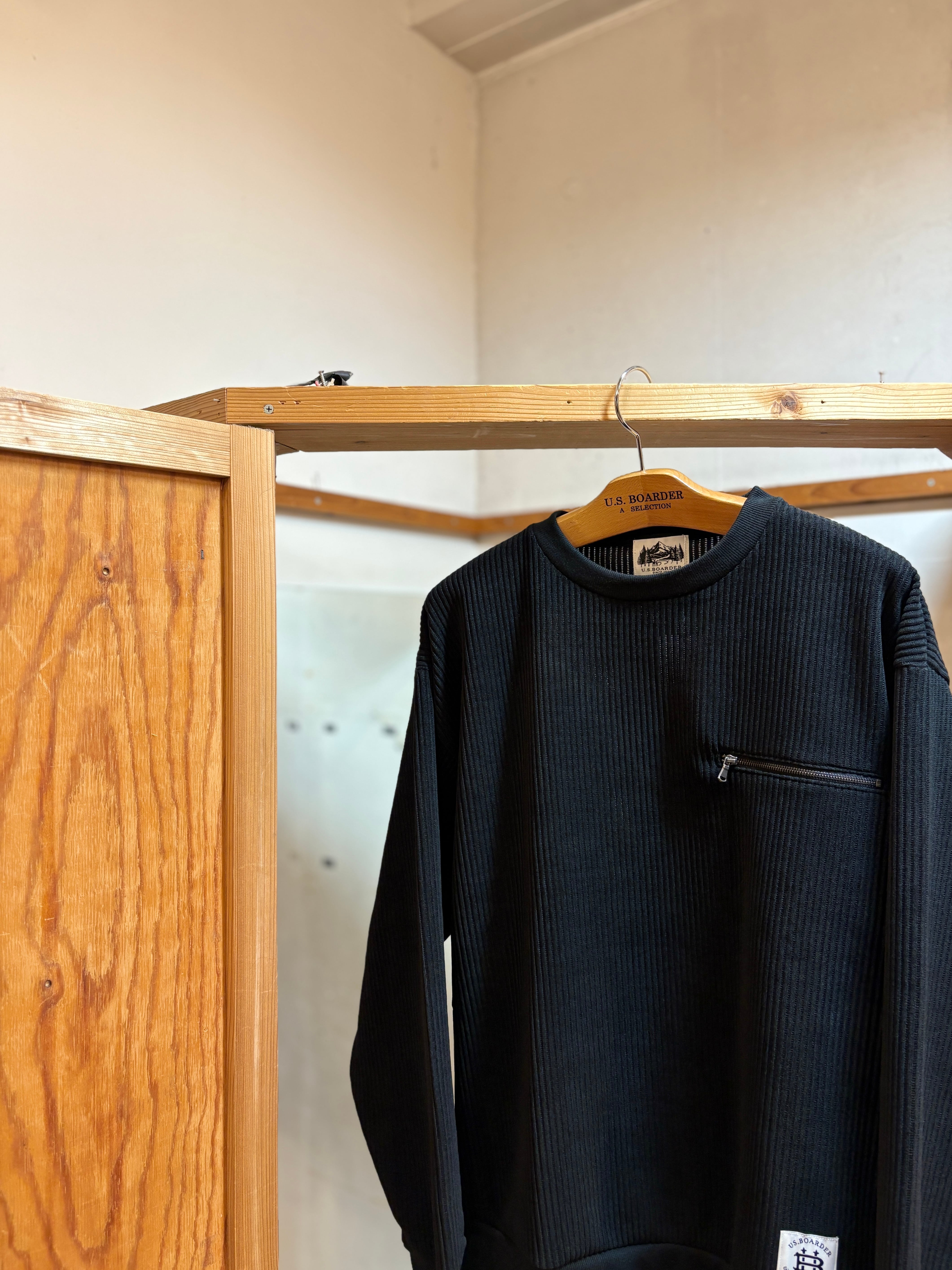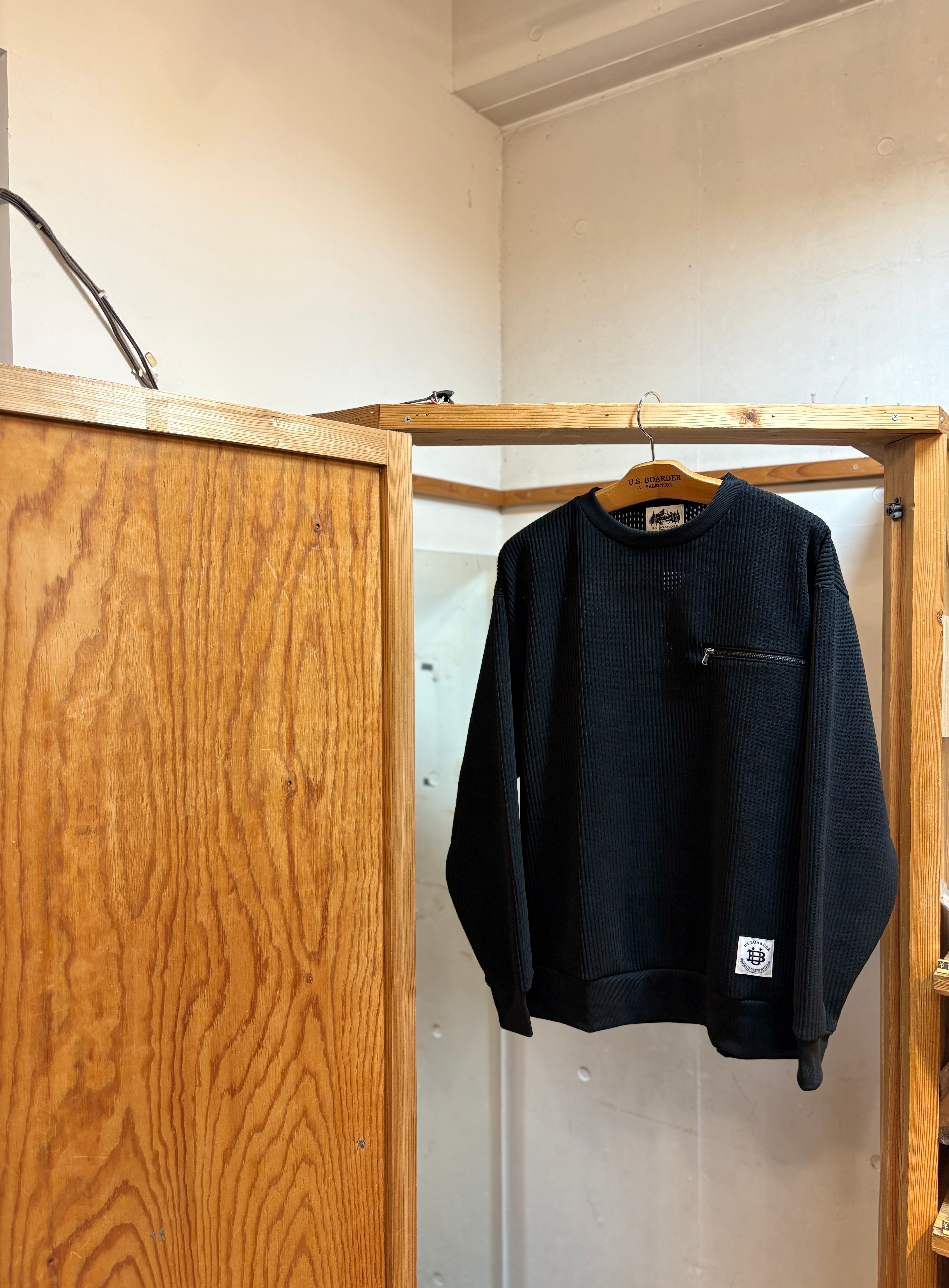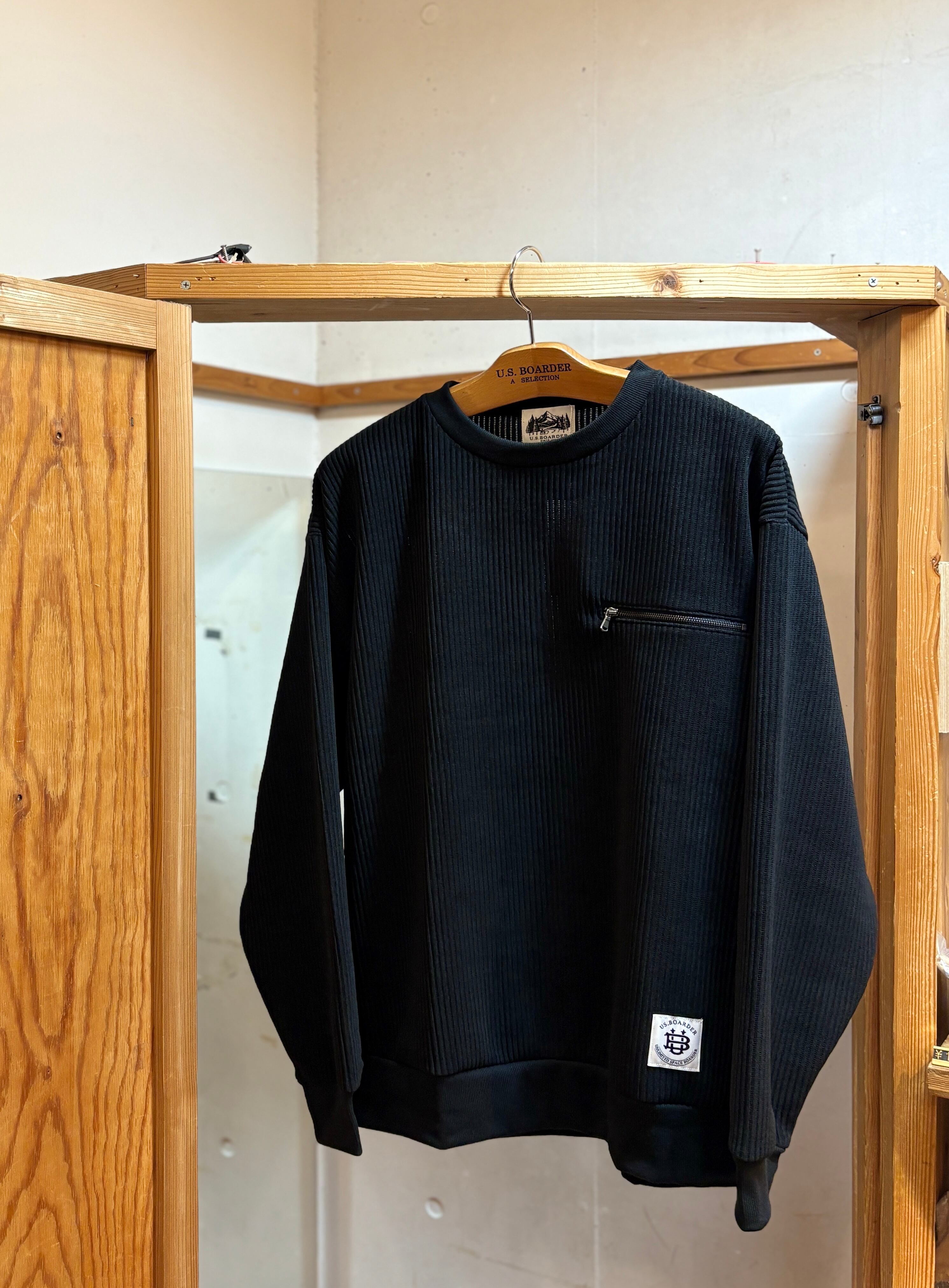 U.S.BOARDER カット CREW Black ブラック 黒色 Knit Sweat shirt スウェット ニット トレーナー ビロード コーデュロイ ニット風 usboarder