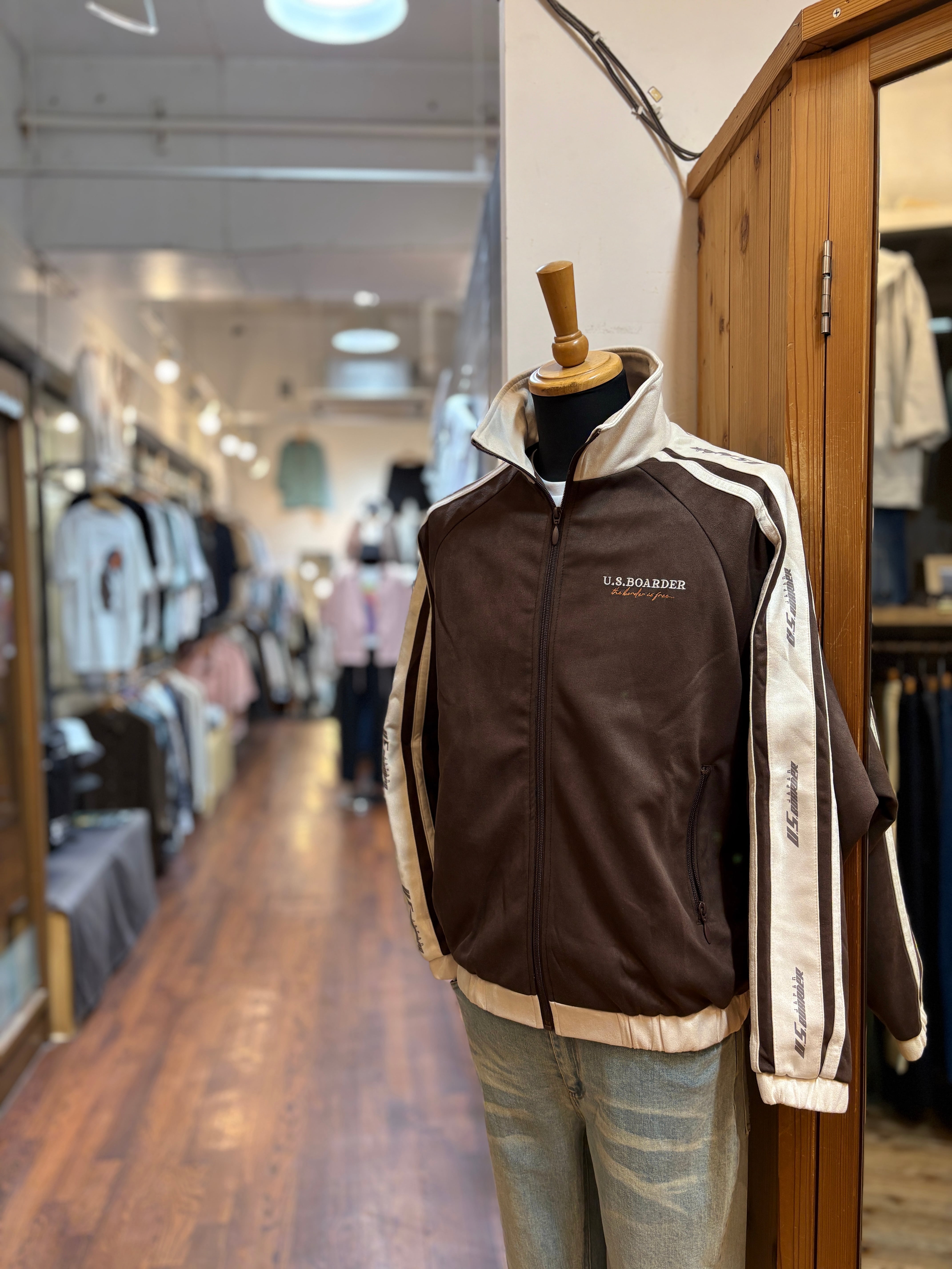 U.S.BOARDER ライントラックJ Ⅱ トラックジャケット Brown BRN ブラウン 茶色Jacket フェイクスエード ベロア風 トラックジャケット ブルゾン メンズ レディース ユニセックス u.s.boarder ユーエスボーダー | U.S.BOARDER KIXX