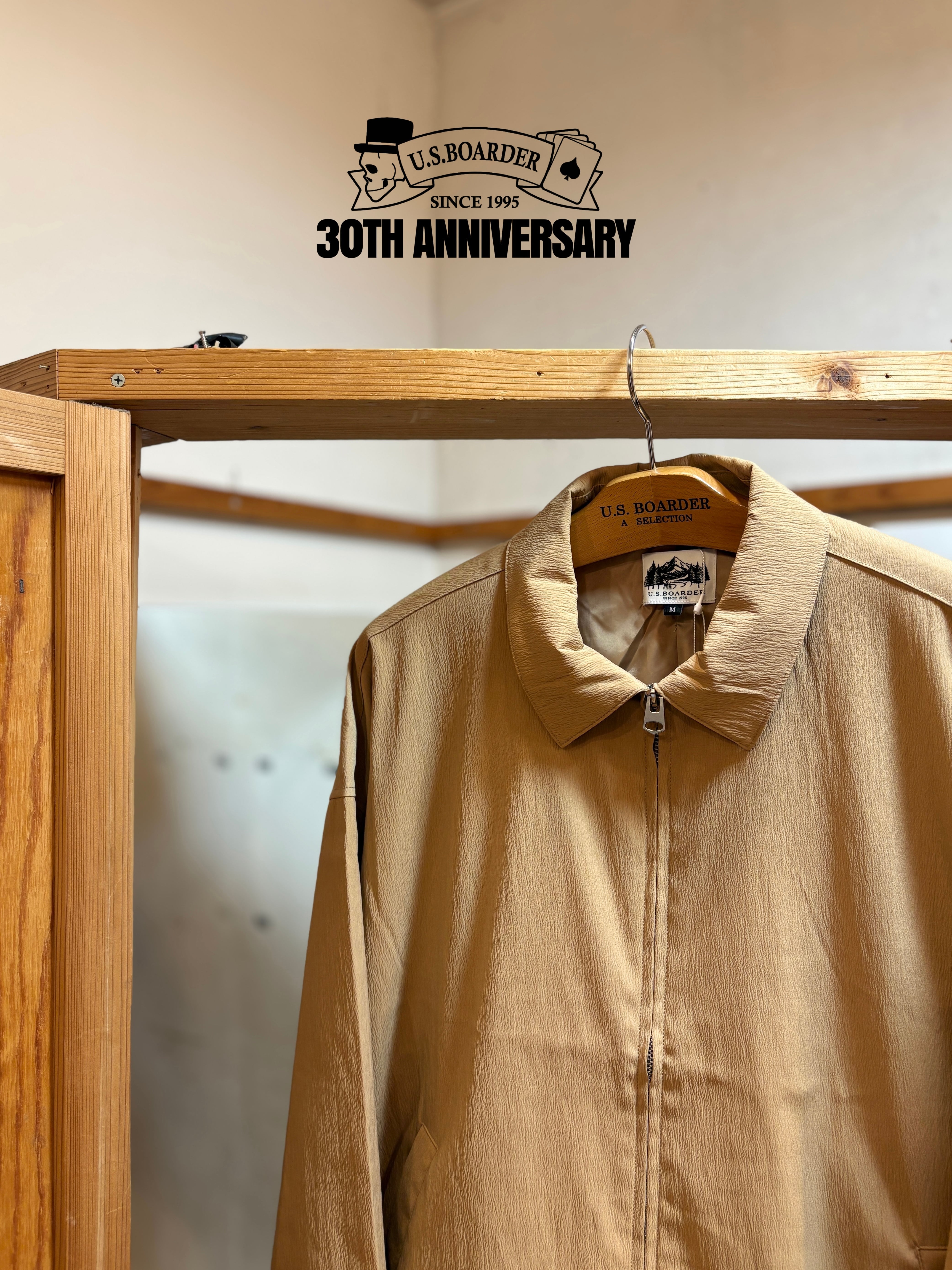 usboarder ZIP JKT Beige 黄土色 BEG Striped Crepe Fabric 楊柳生地 スイングトップ ZIPブルゾン Swing top ユーエスボーダー