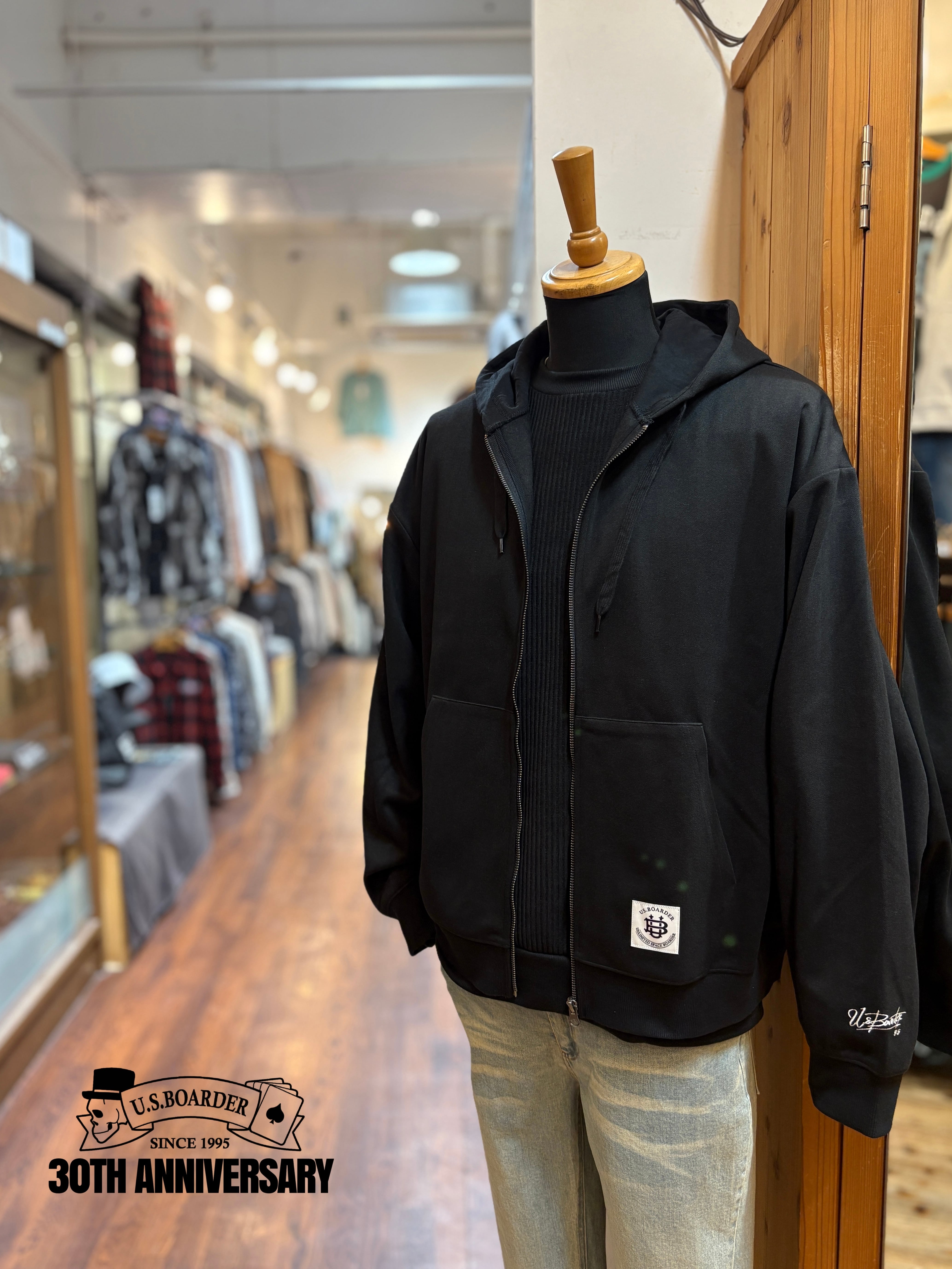 U.S.BOARDER ヘリンボーンJKT Jacket ZIPパーカー ジップパーカー Black BLK アイボリー zip hoodie アメカジ 起毛ZIPパーカー フーディー 刺繍 ユーエスボーダー
