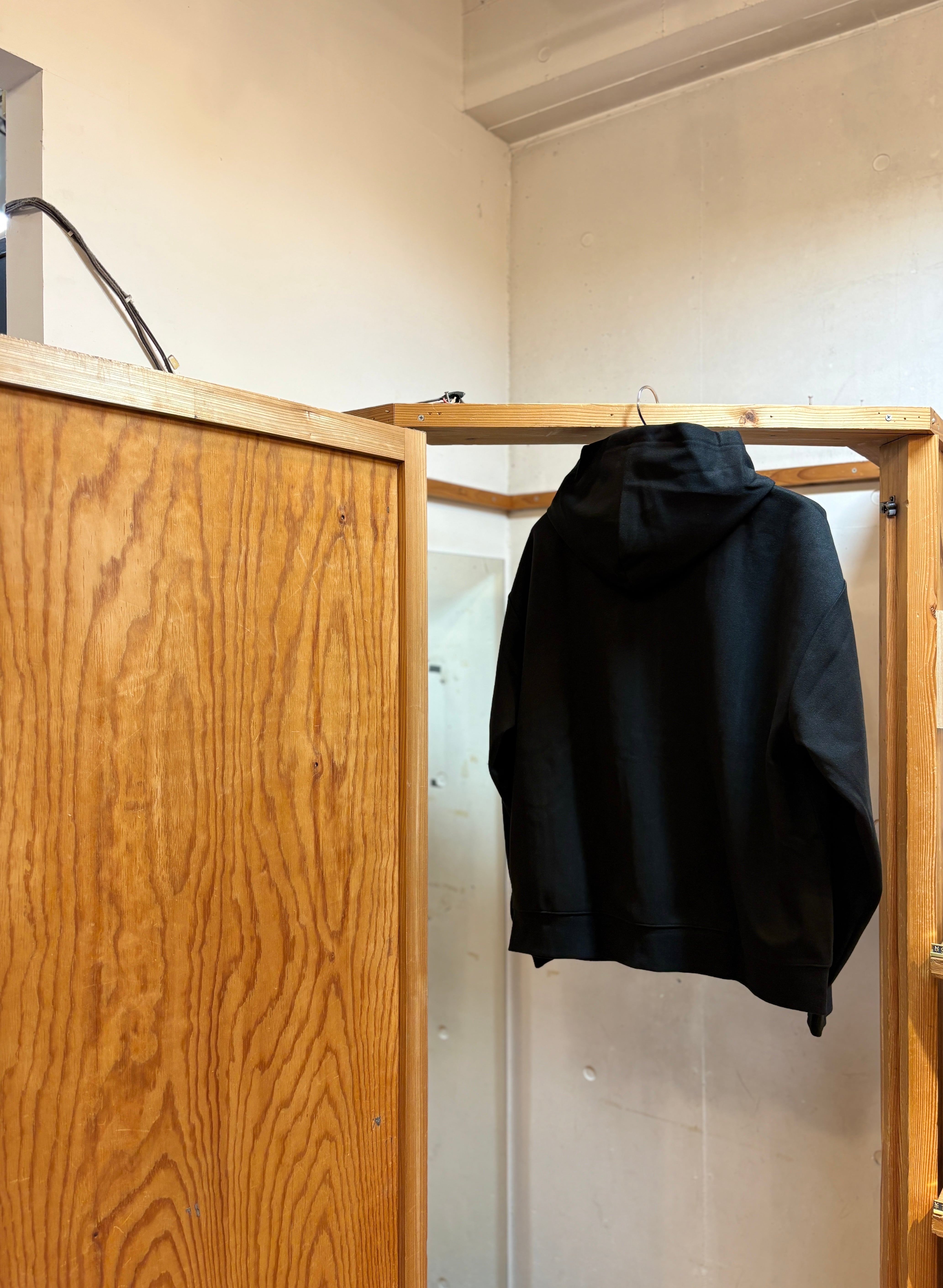袖口の刺繍がアクセント。フードはドローストリング(スピンドールコード)が装着している為、