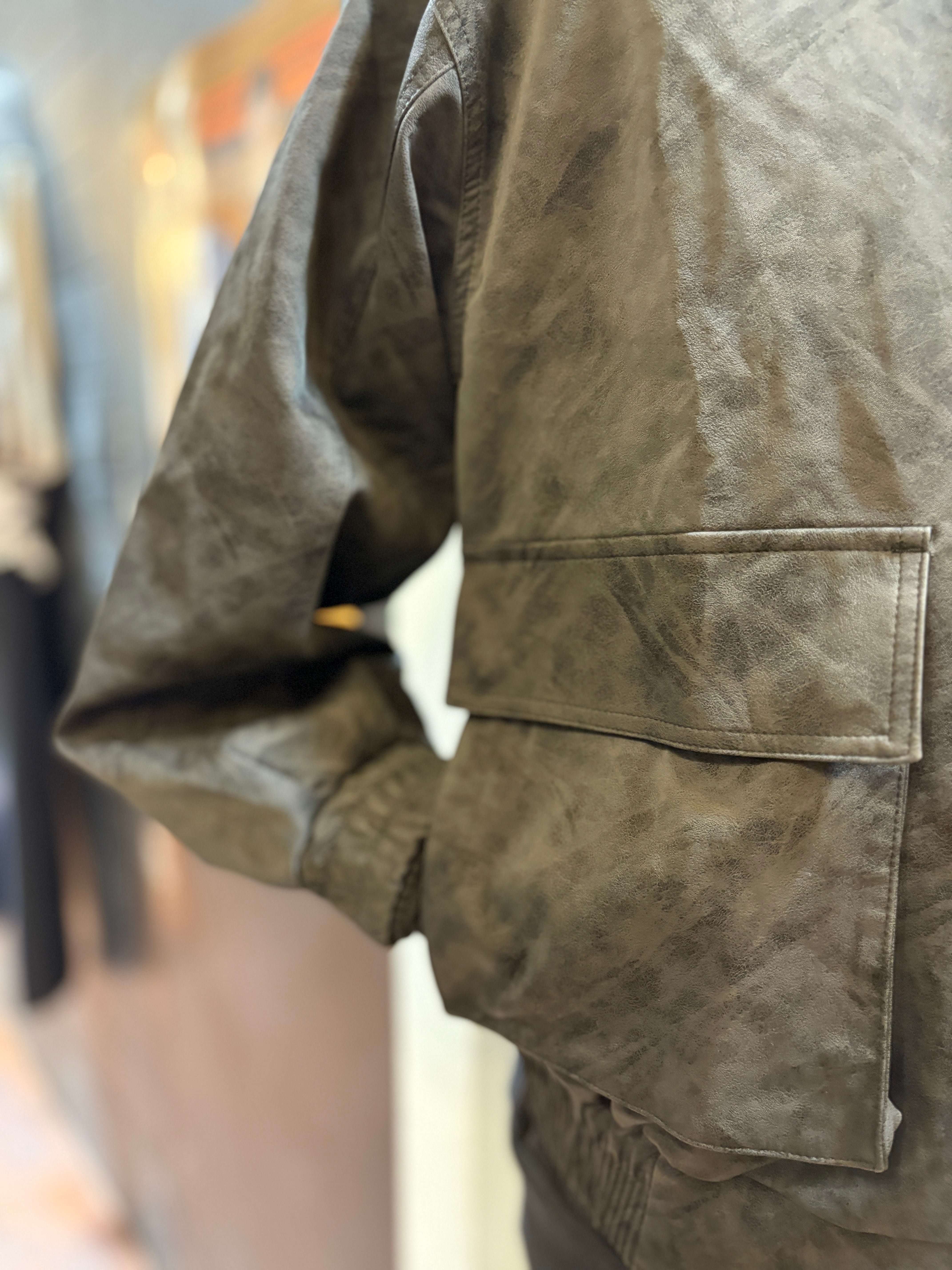 ユーズド加工の凹凸ある質感に軽い生地感、レザージャケットの雰囲気を楽しみたい方にお薦めです。