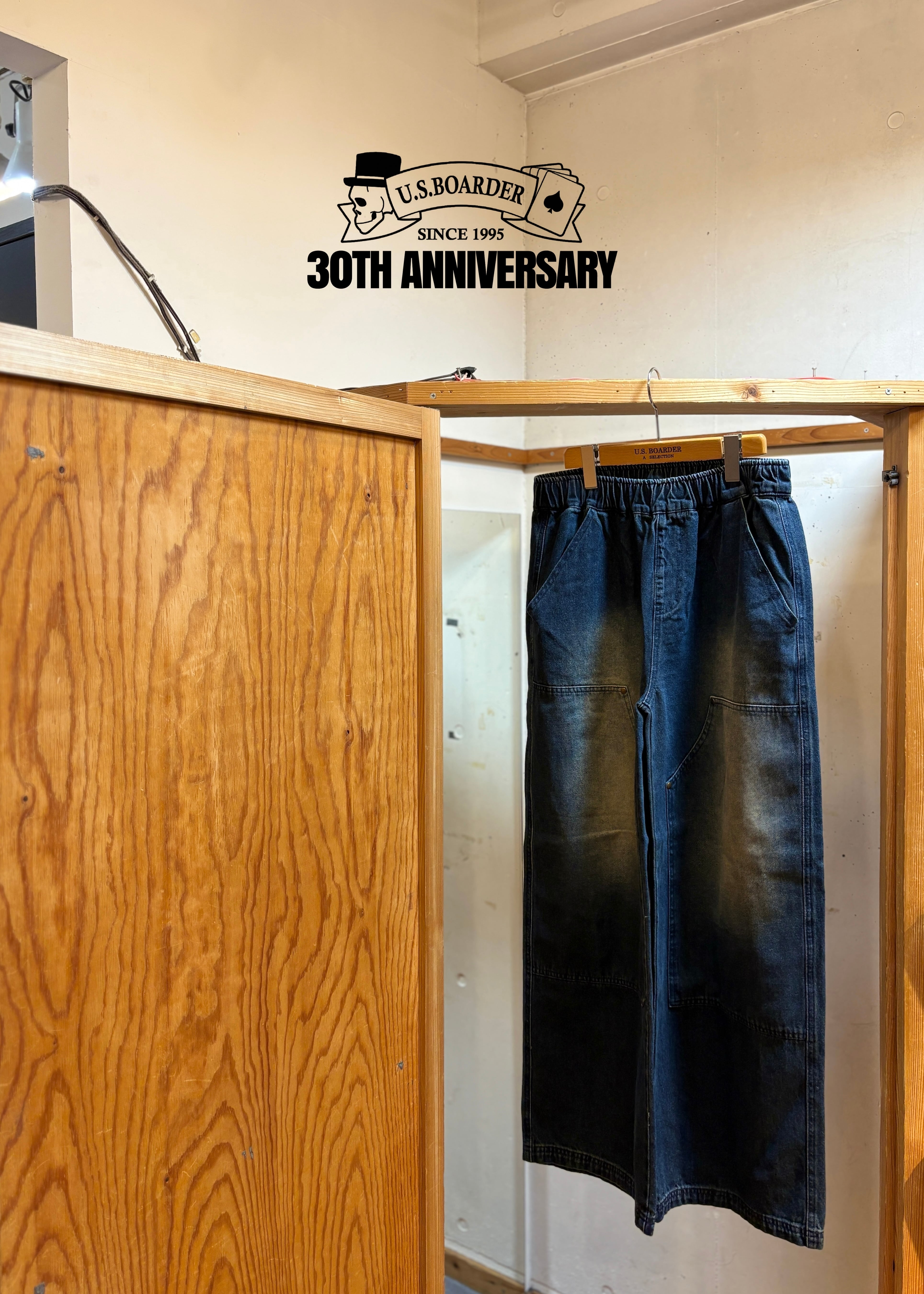 U.S.BOARDER オーバーダイD P Blue ブルー BLU カーペンター ジーンズ パネル デニム Denim Indigo インディゴ Carpenter ダブルニー バギー ワイド パンツ ストーンウォッシュ メンズ レディース ユニセックス ボトムス ユーエスボーダー