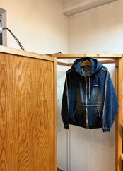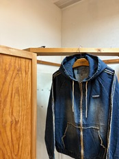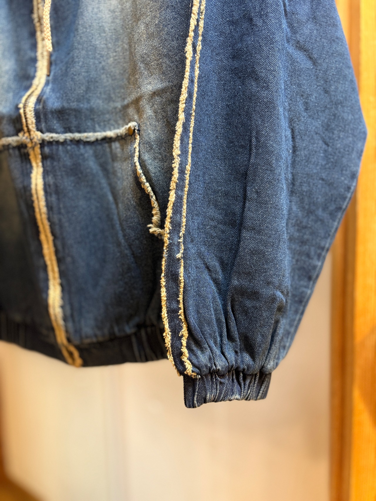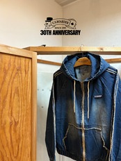 フリンジがモチーフとなったデニムフーディーが入荷しました。加工風合い、着古した雰囲気が特徴的なアイテムです。
