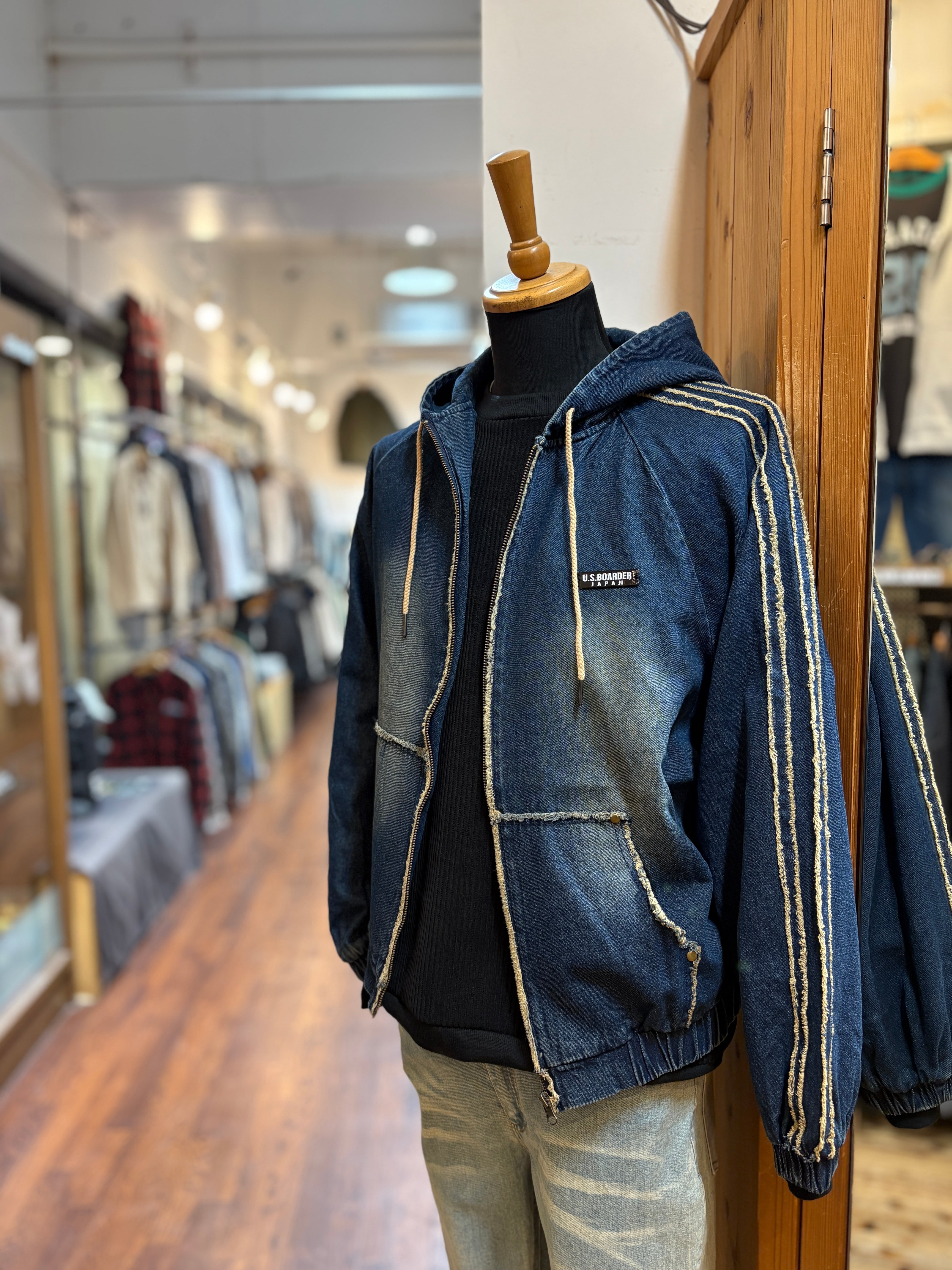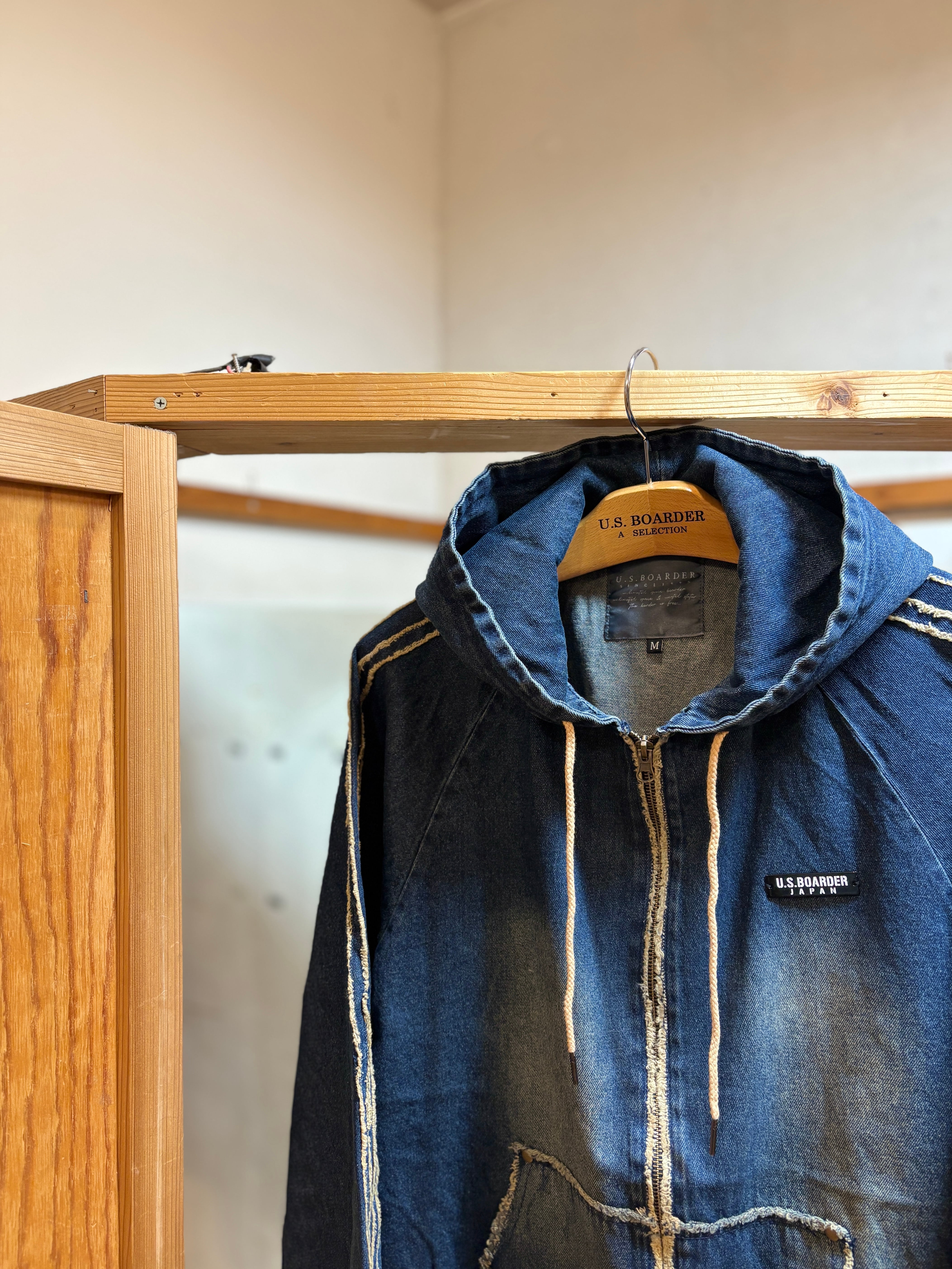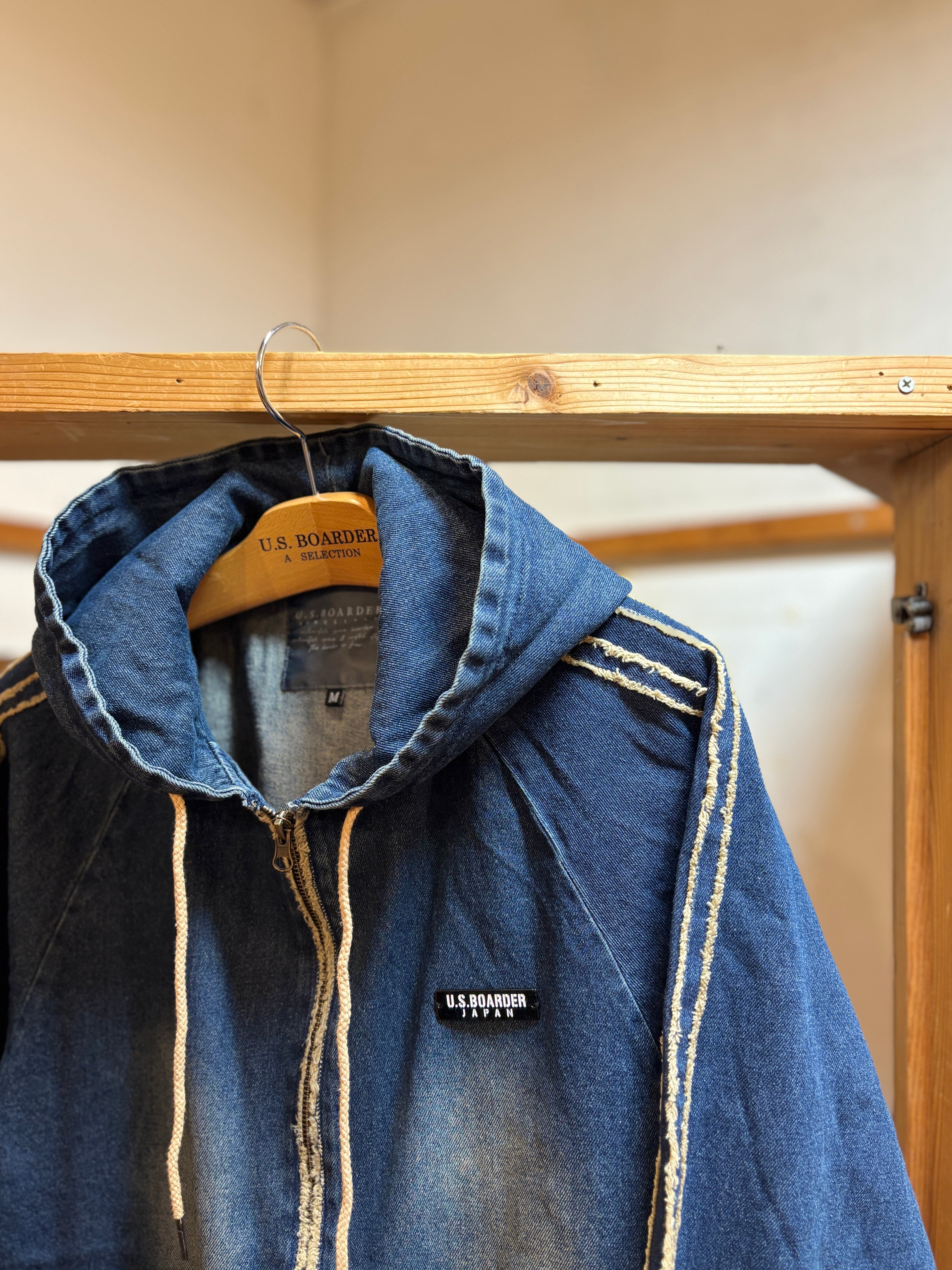 U.S.BOARDER オーバーダイJKT Blue ブルー BLU フリンジ デニム ライン パーカー フーディー Denim Indigo インディゴ メンズ レディース ユニセックス ユーエスボーダー
