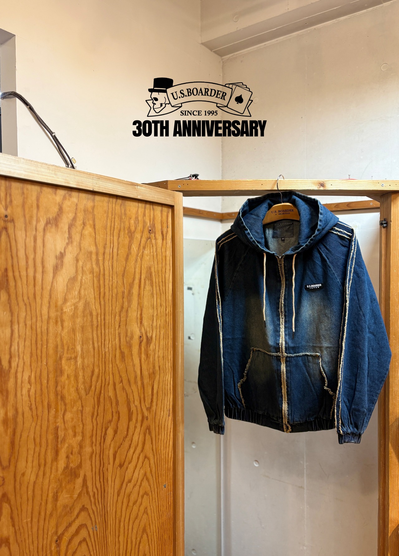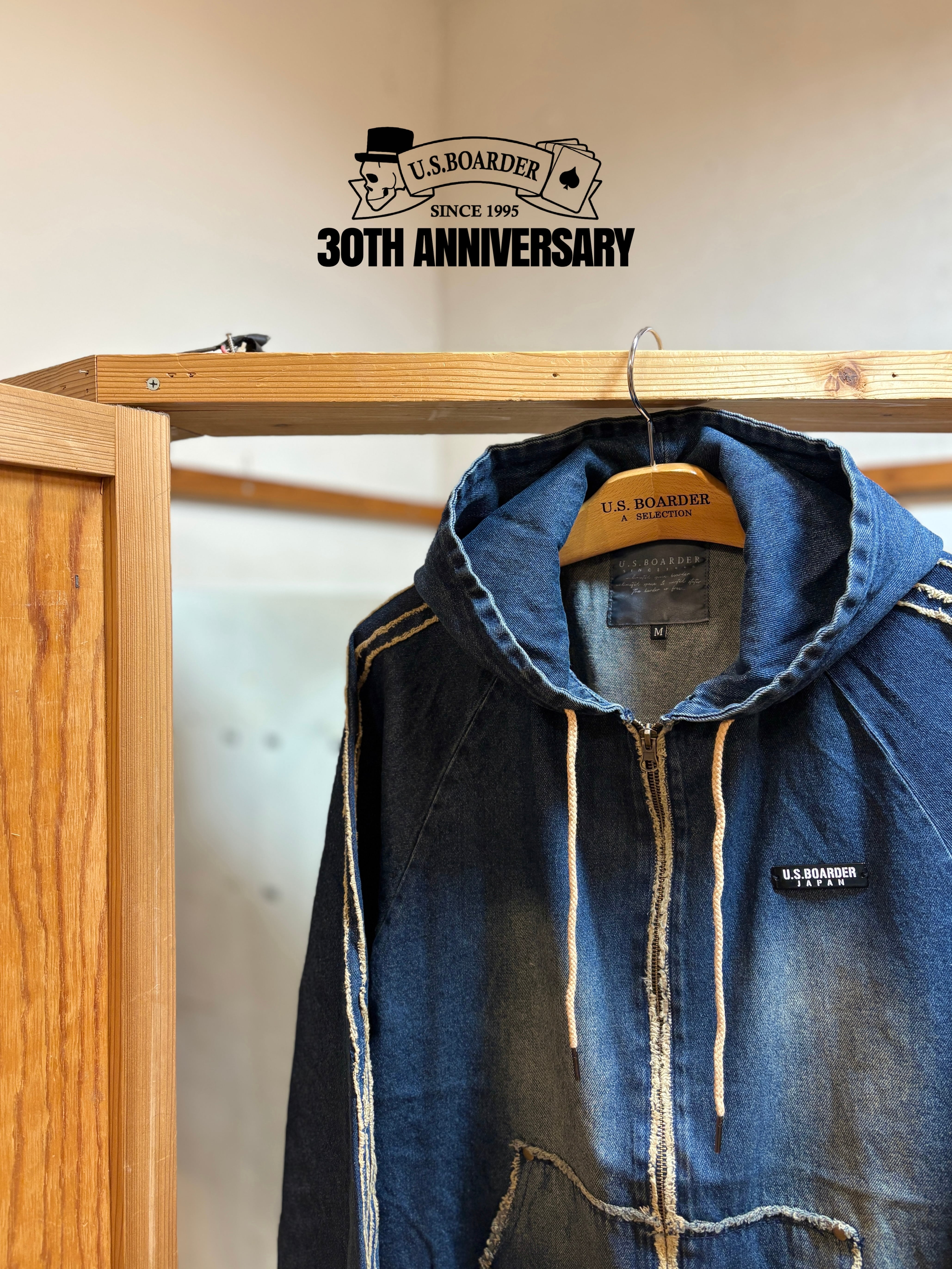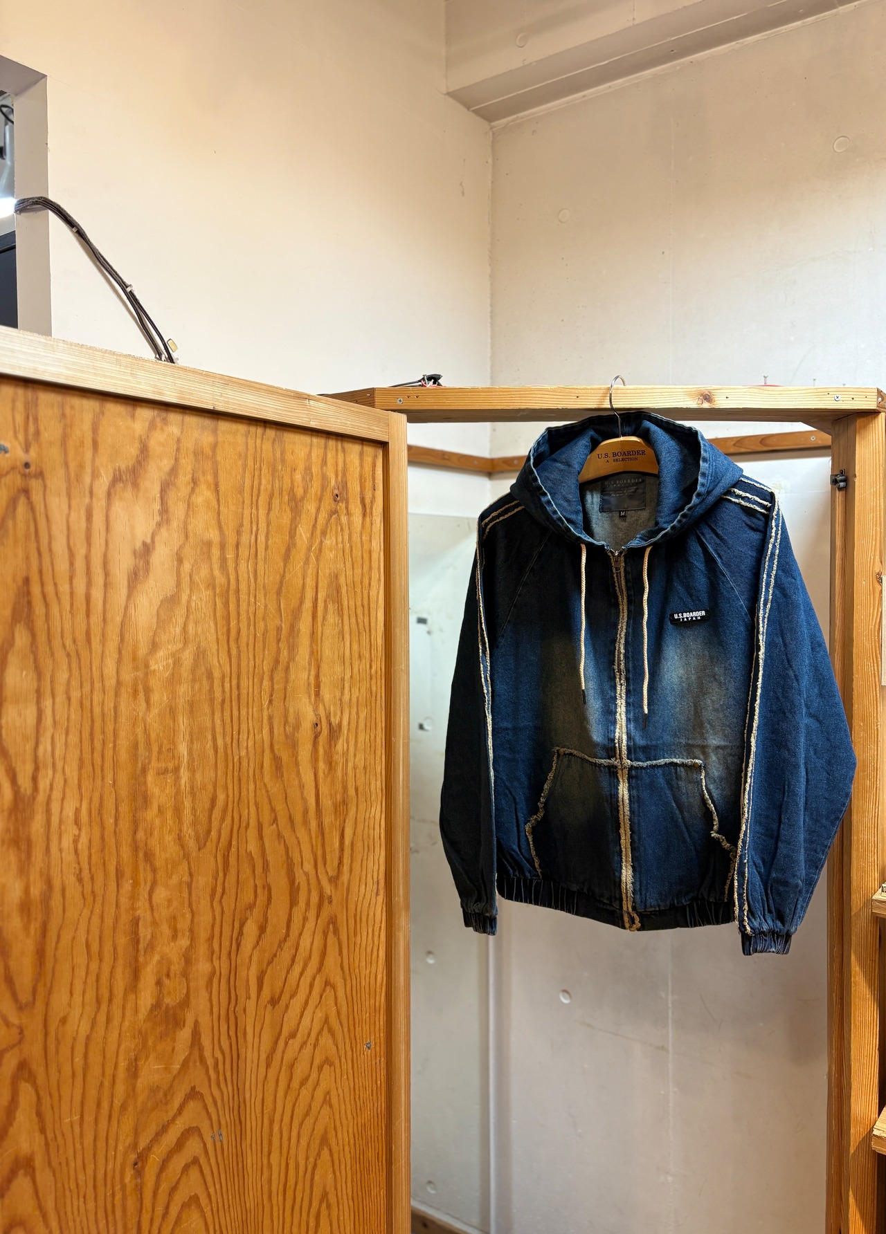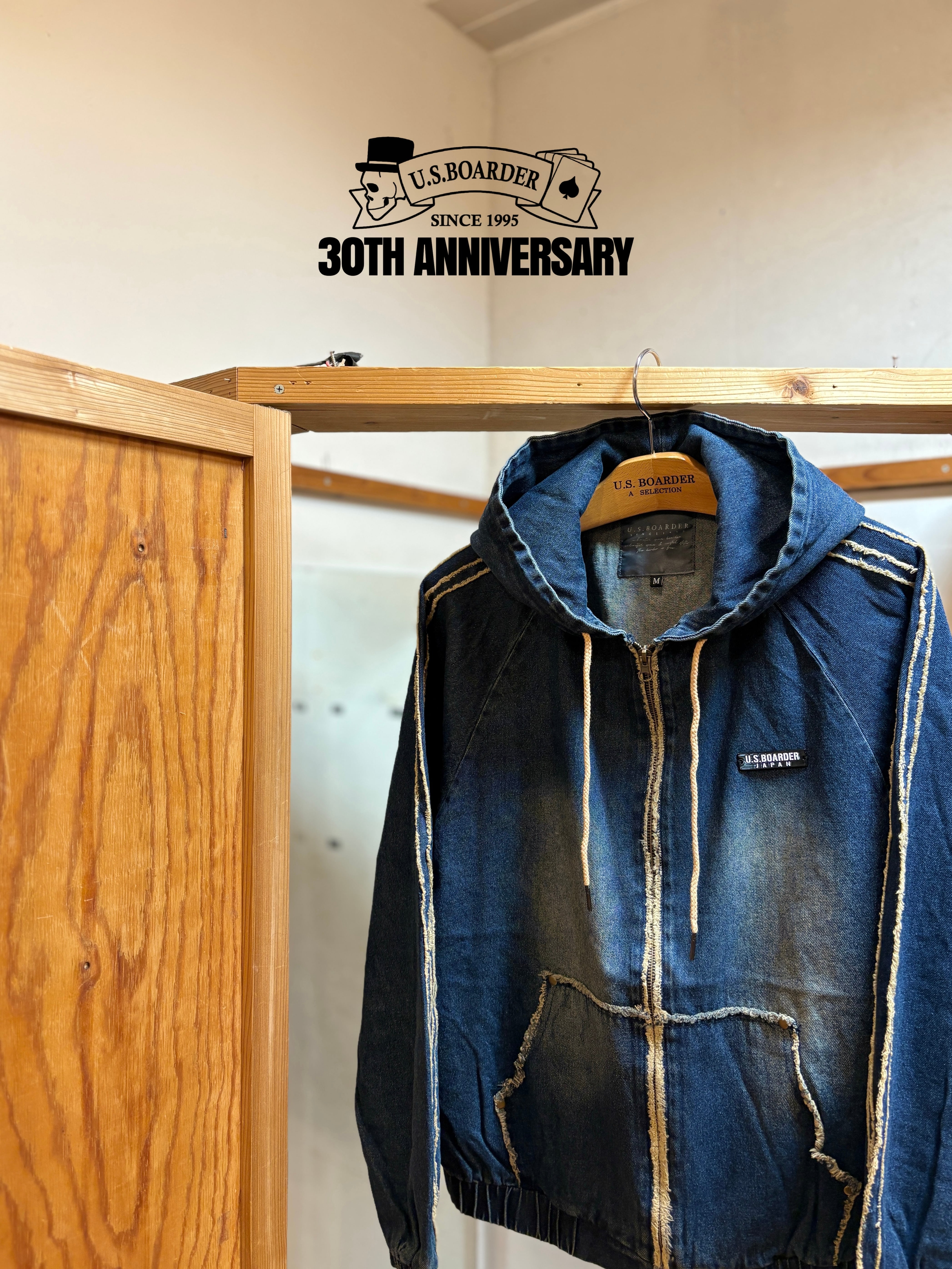 U.S.BOARDER オーバーダイJKT Blue ブルー BLU フリンジ デニム ライン パーカー フーディー Denim Indigo インディゴ メンズ レディース ユニセックス ユーエスボーダー