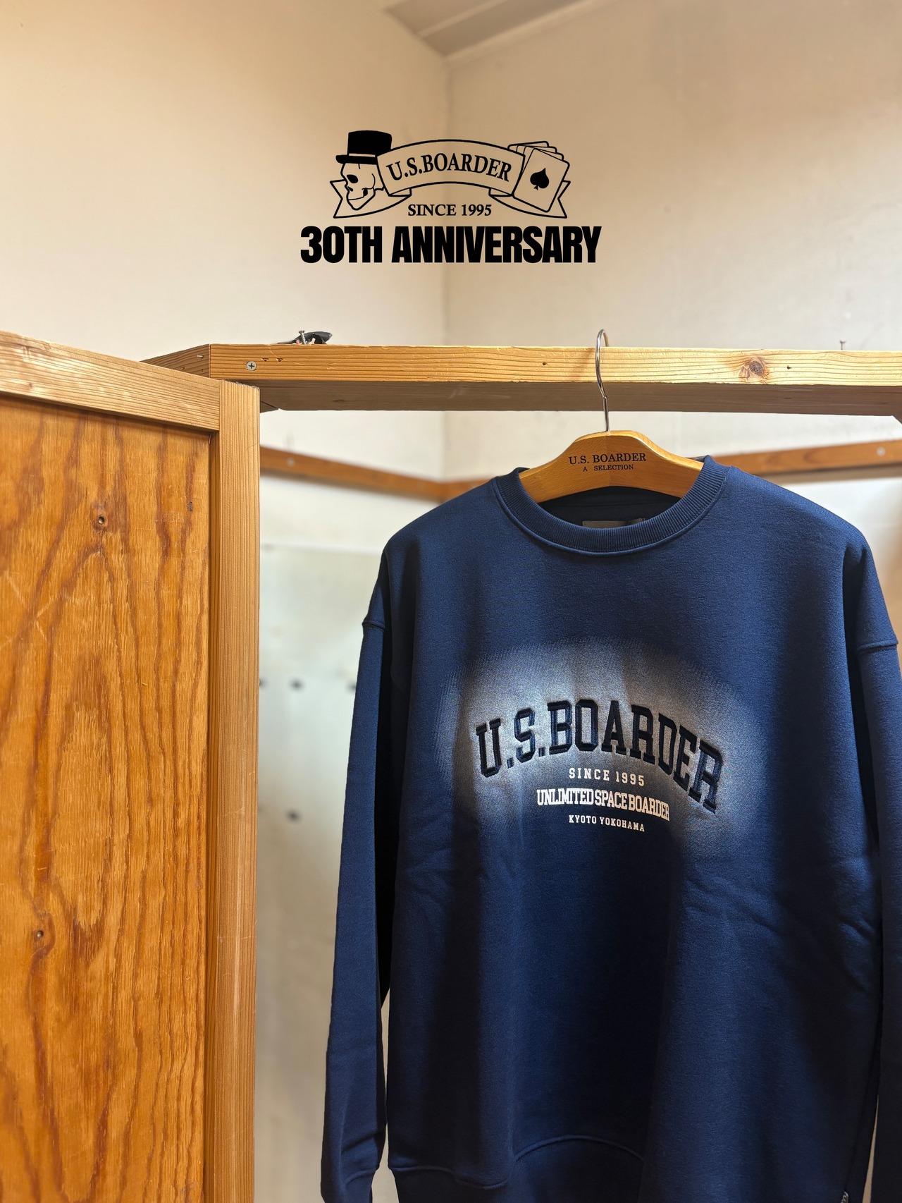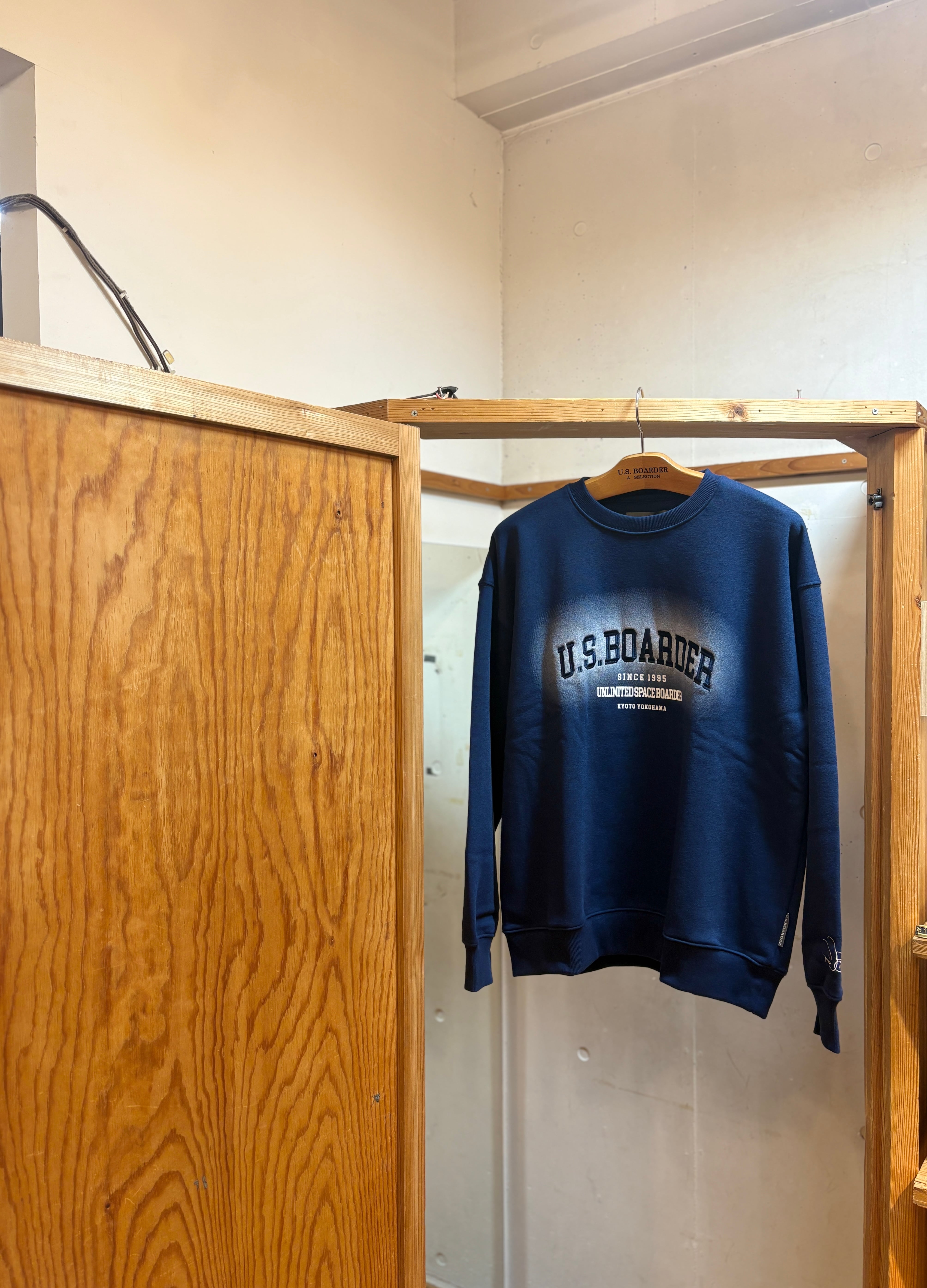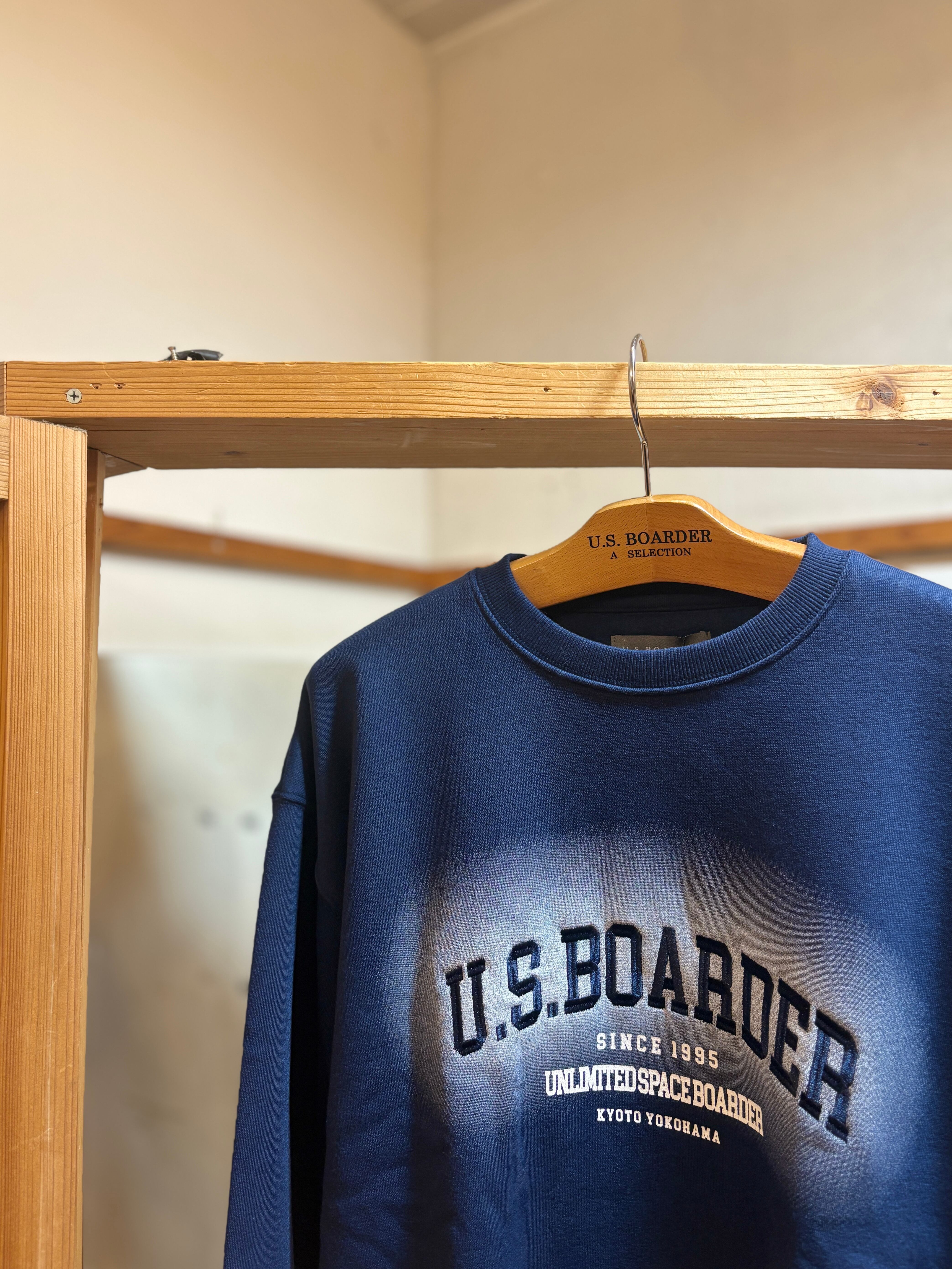 U.S.BOARDER 裏起毛25 SWT ネイビー NVY Navy blue 紺色 刺繍 カレッジ 刺繍 京都 横浜 Kyoto Yokohama スプレープリント sweatshirt usboarder ユーエスボーダー