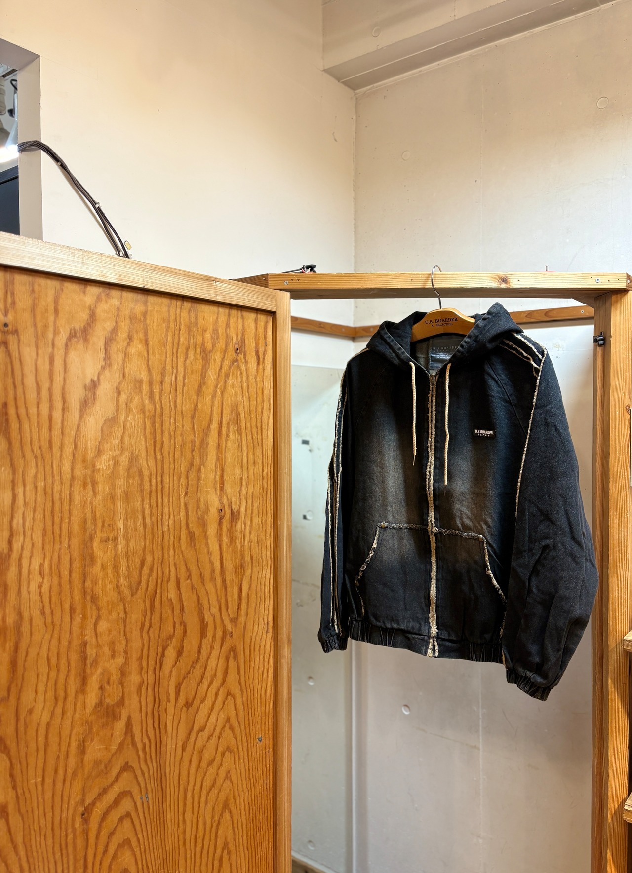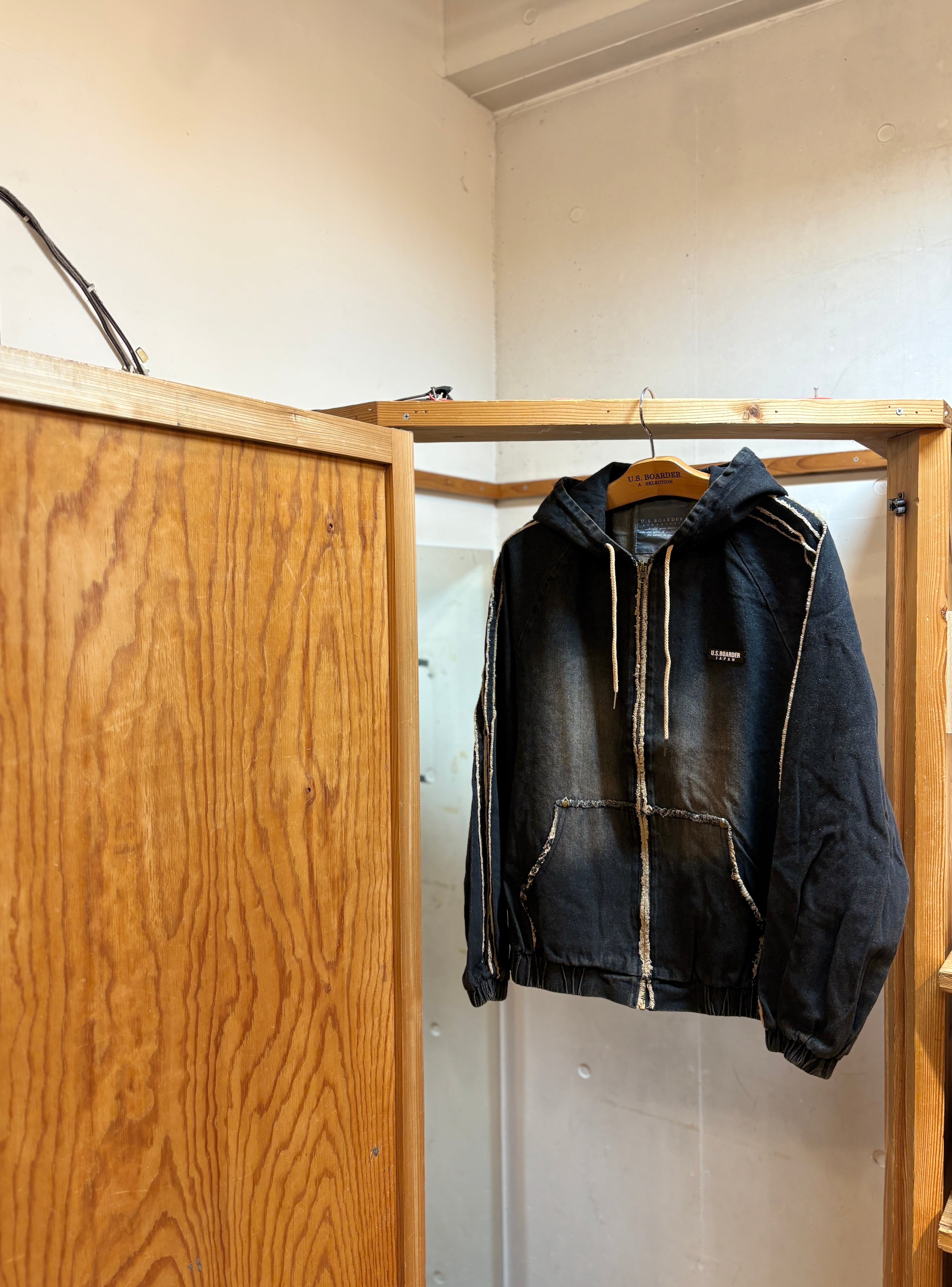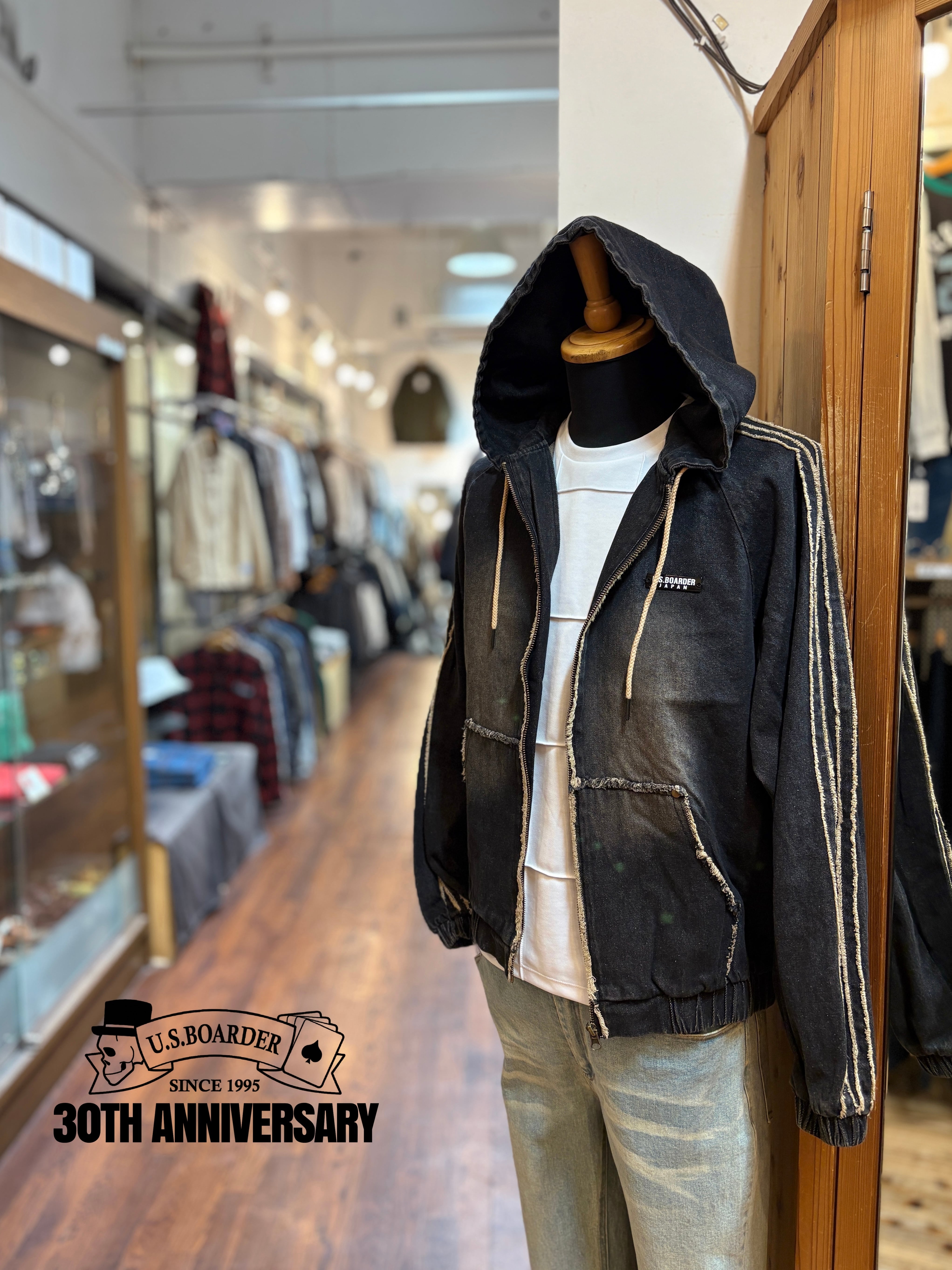 U.S.BOARDER オーバーダイJKT Black ブラック BLK フリンジ デニム ライン パーカー フーディー Denim Indigo インディゴ メンズ レディース ユニセックス ユーエスボーダー