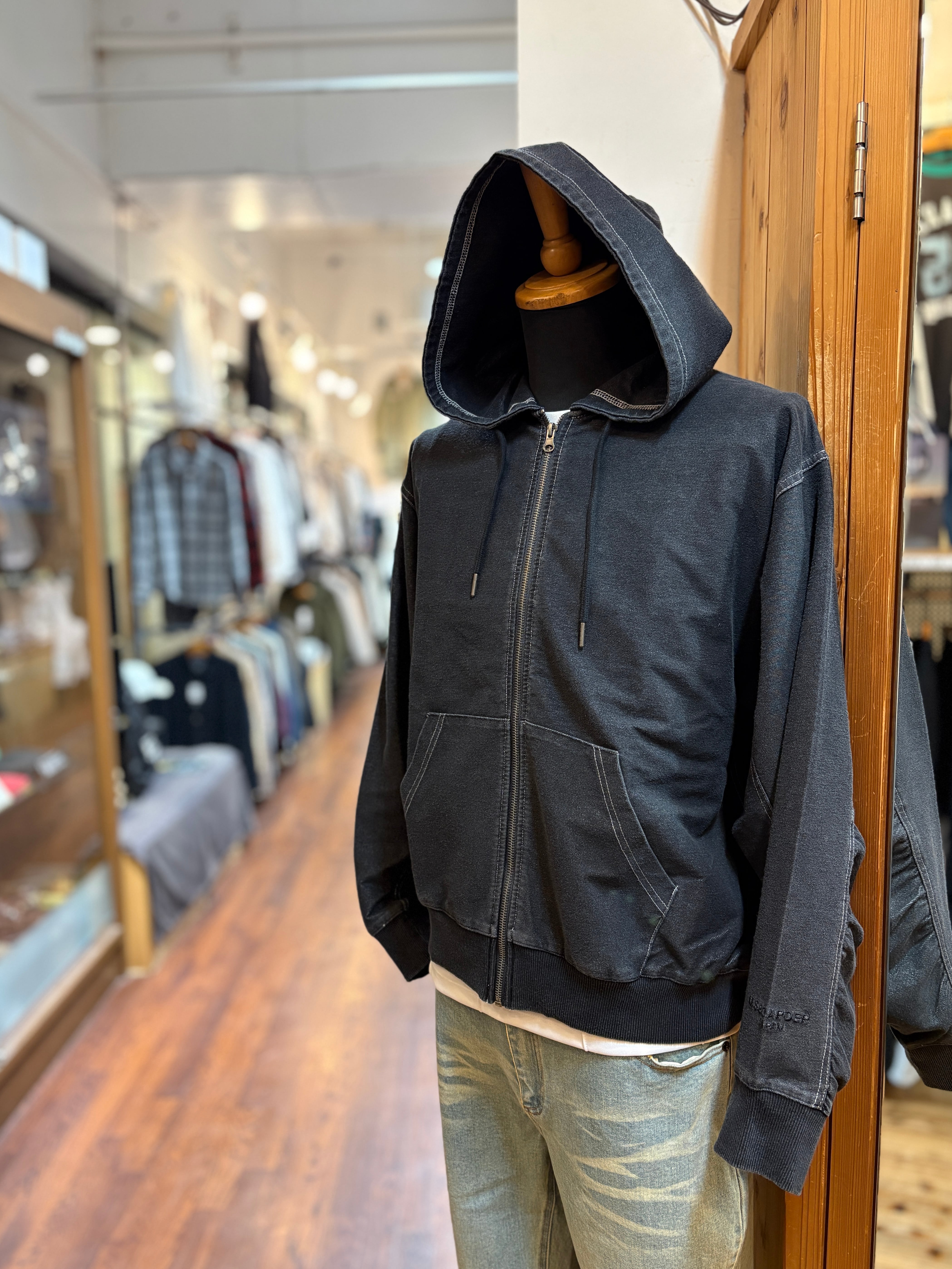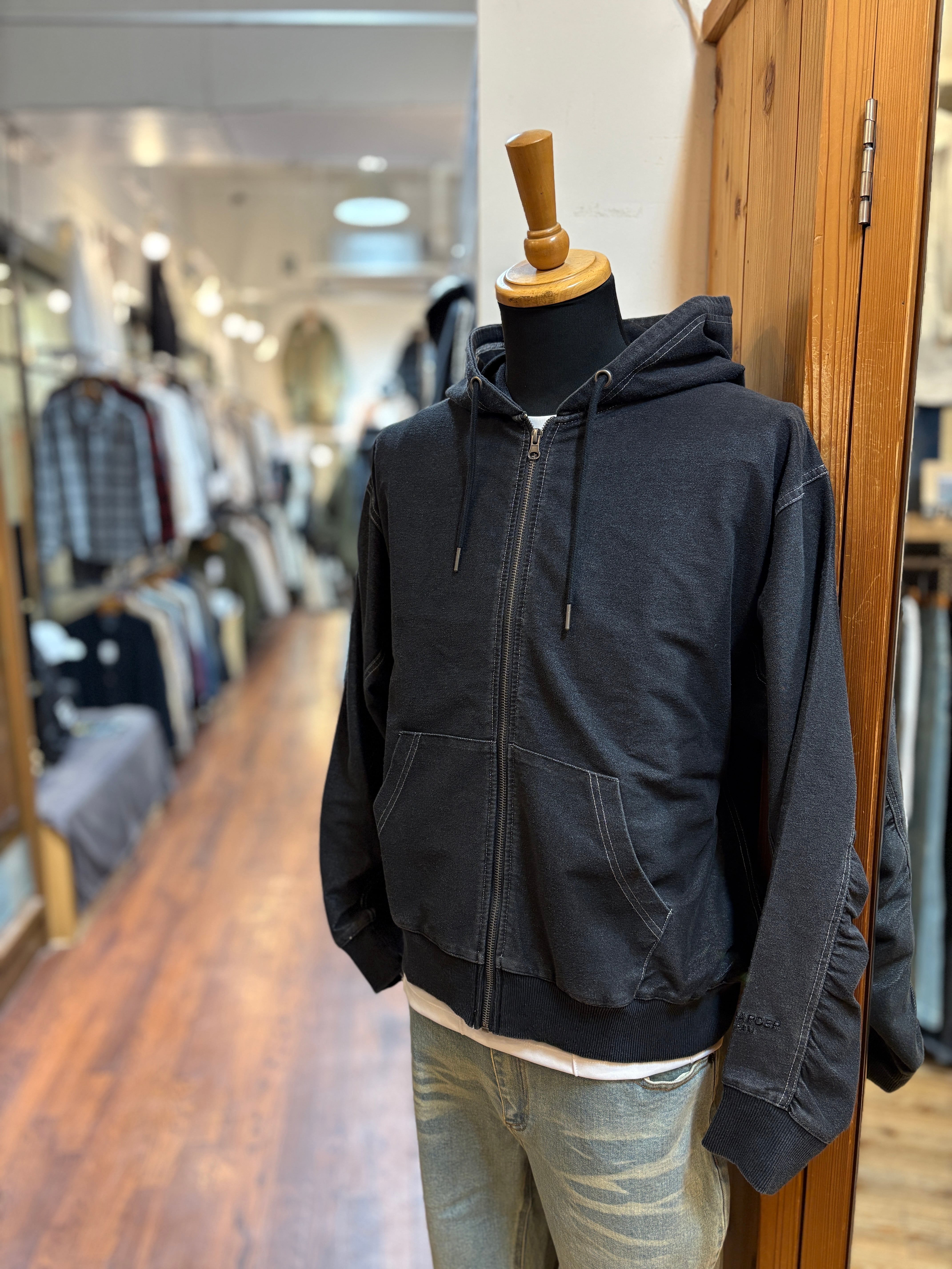 デニムをモチーフにしたZIPフーディーが入荷しました。加工風合い、着古した雰囲気が楽しめます。