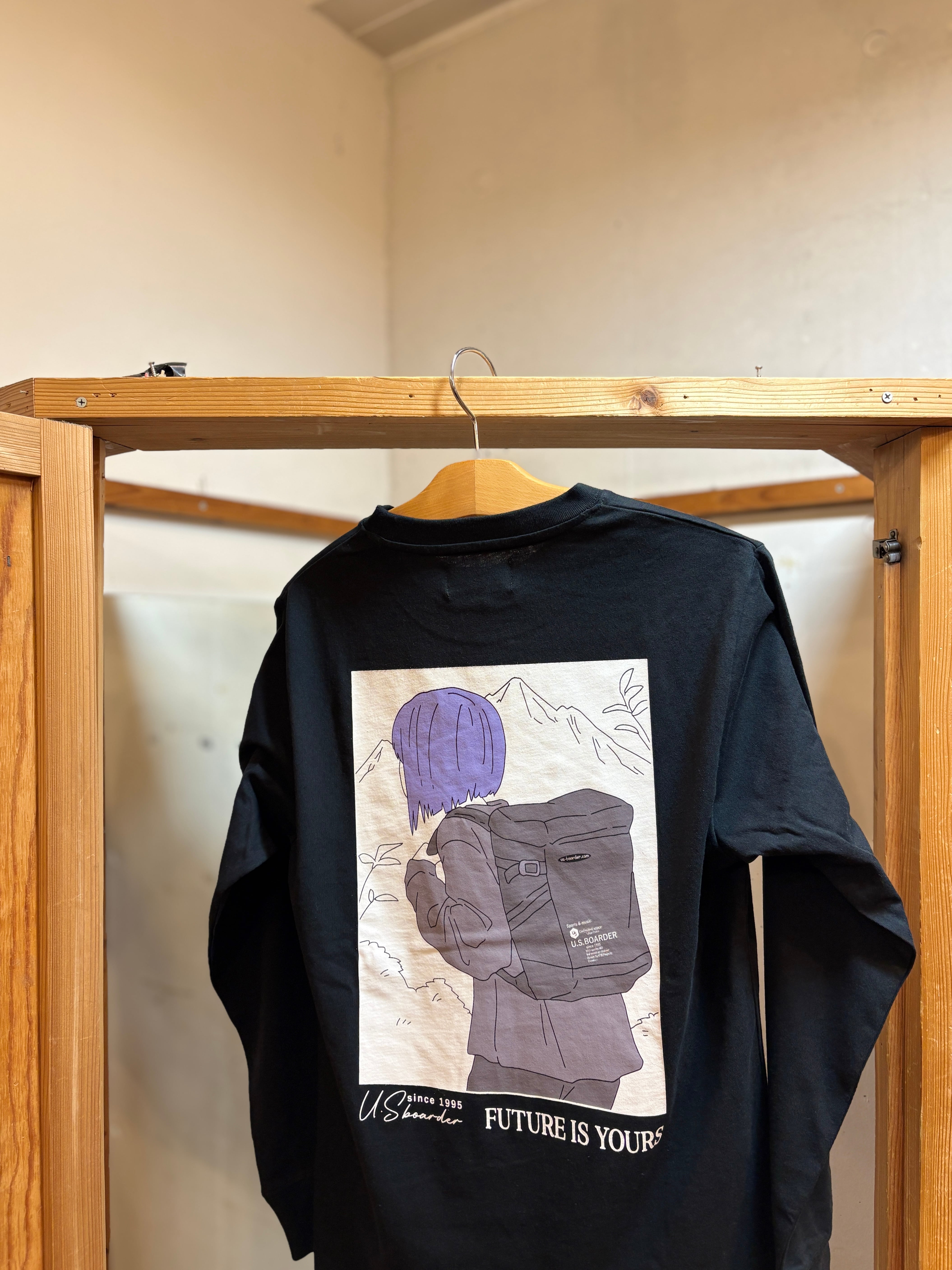 U.S.BOARDER Long-sleeve T-shirt L/T 26 Black ブラック 黒色 バックプリント ガール バックパック 登頂 登山 ロングスリーブ ユーエスボーダー u.s.boarder