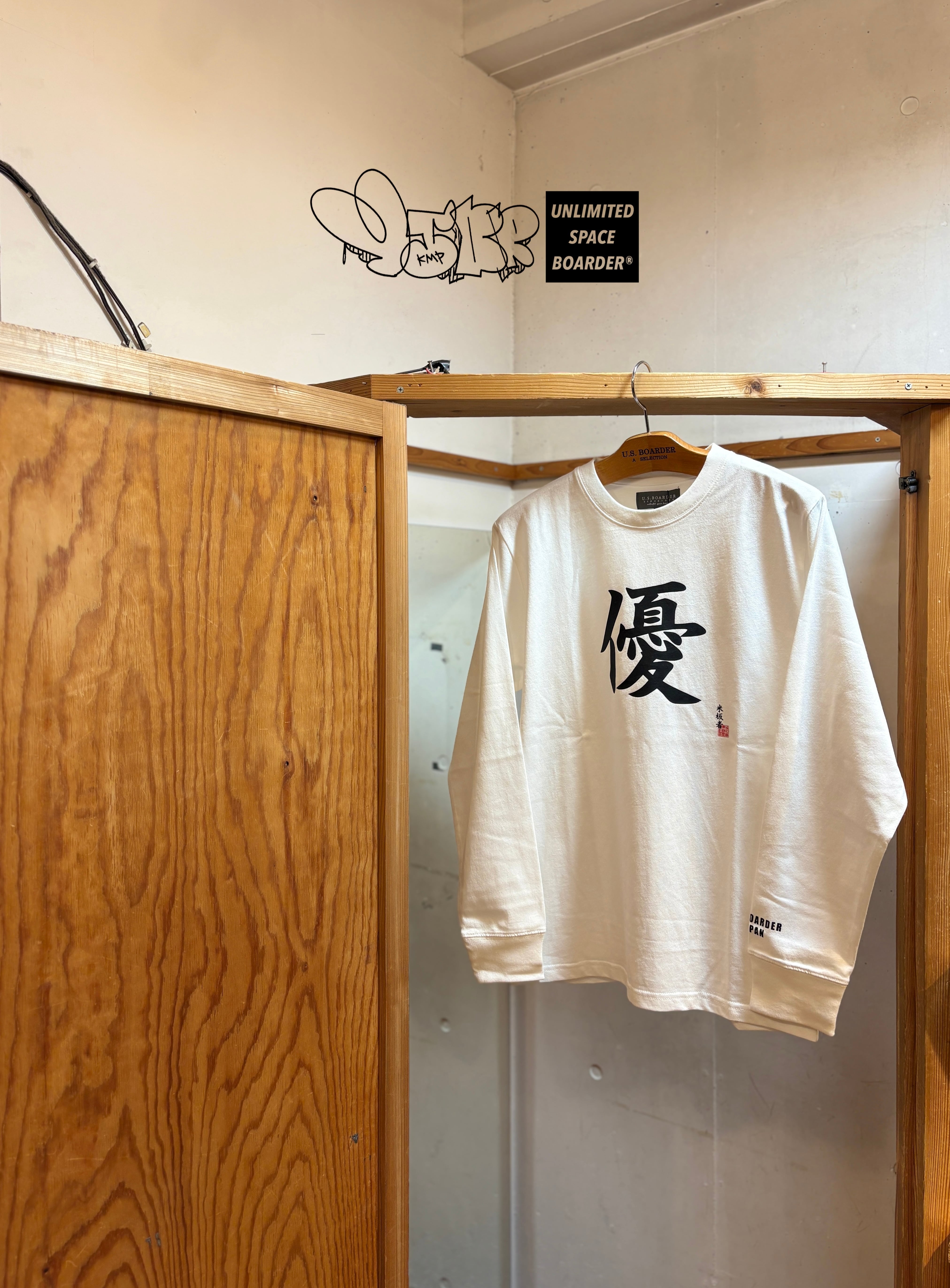 ブランド設立当初からある漢字Tシャツがロングスリーブとして復刻しました。usboarderフリークならお馴染みのデザインです。