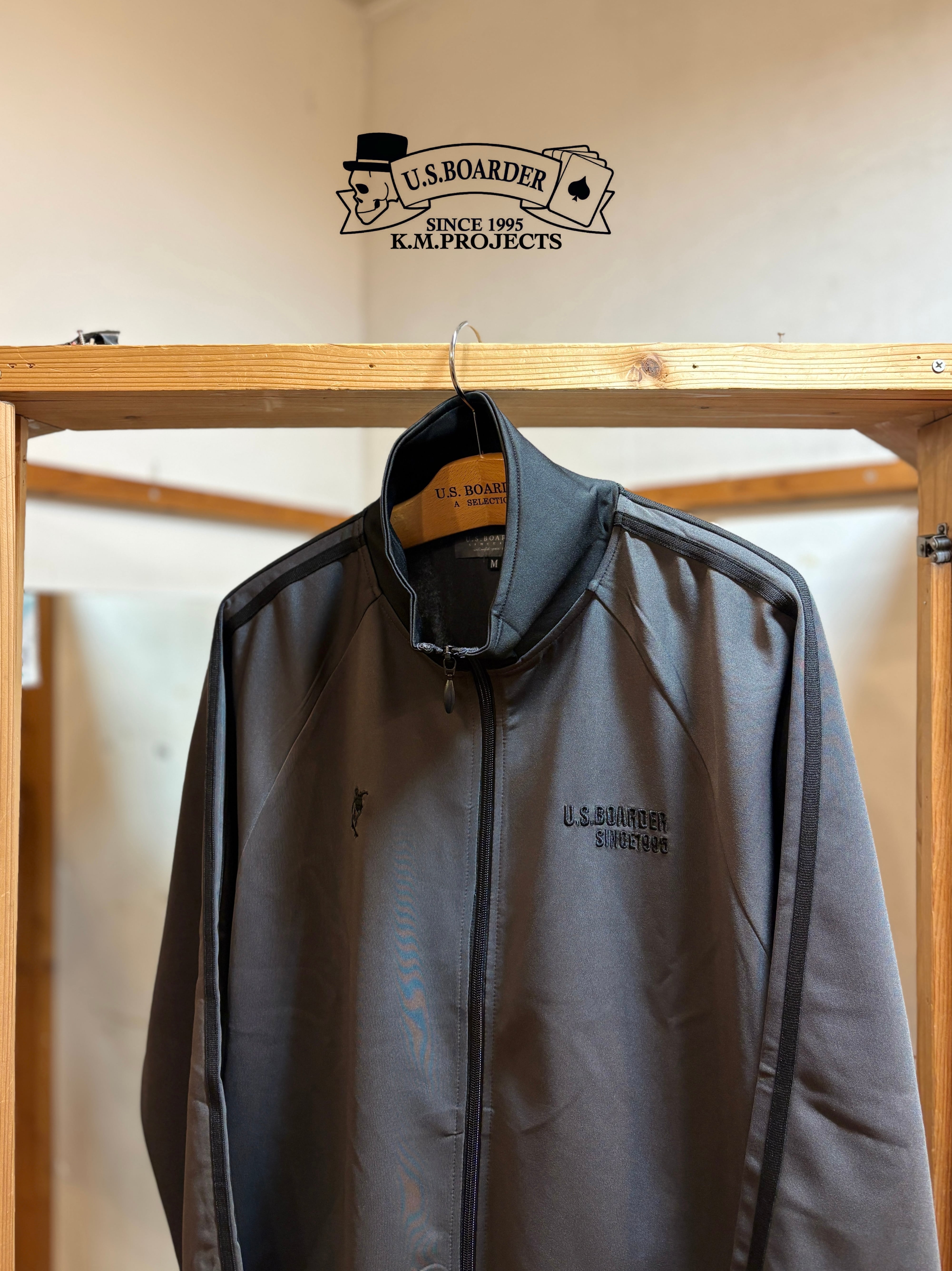 U.S.BOARDER ジャージJKT トラックジャケット Charcoal Gray チャコール ブラック CGRY CGRY/BLK Jacket ライントラックジャケット メンズ レディース ユニセックス u.s.boarder ユーエスボーダー