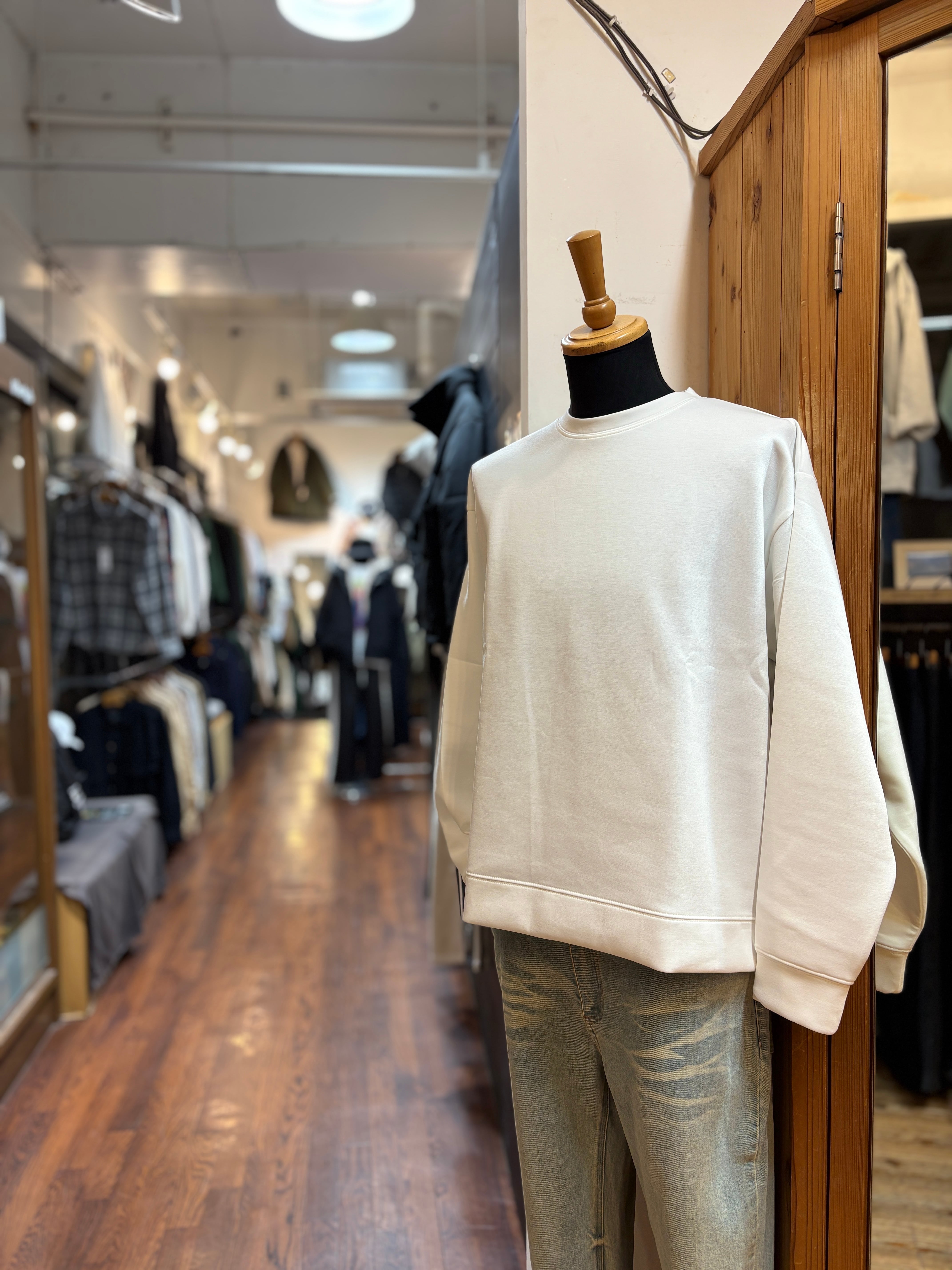 軽い生地感に滑らかな風合い、肌触りが心地よいです。スウェット素材の雰囲気を楽しめます。