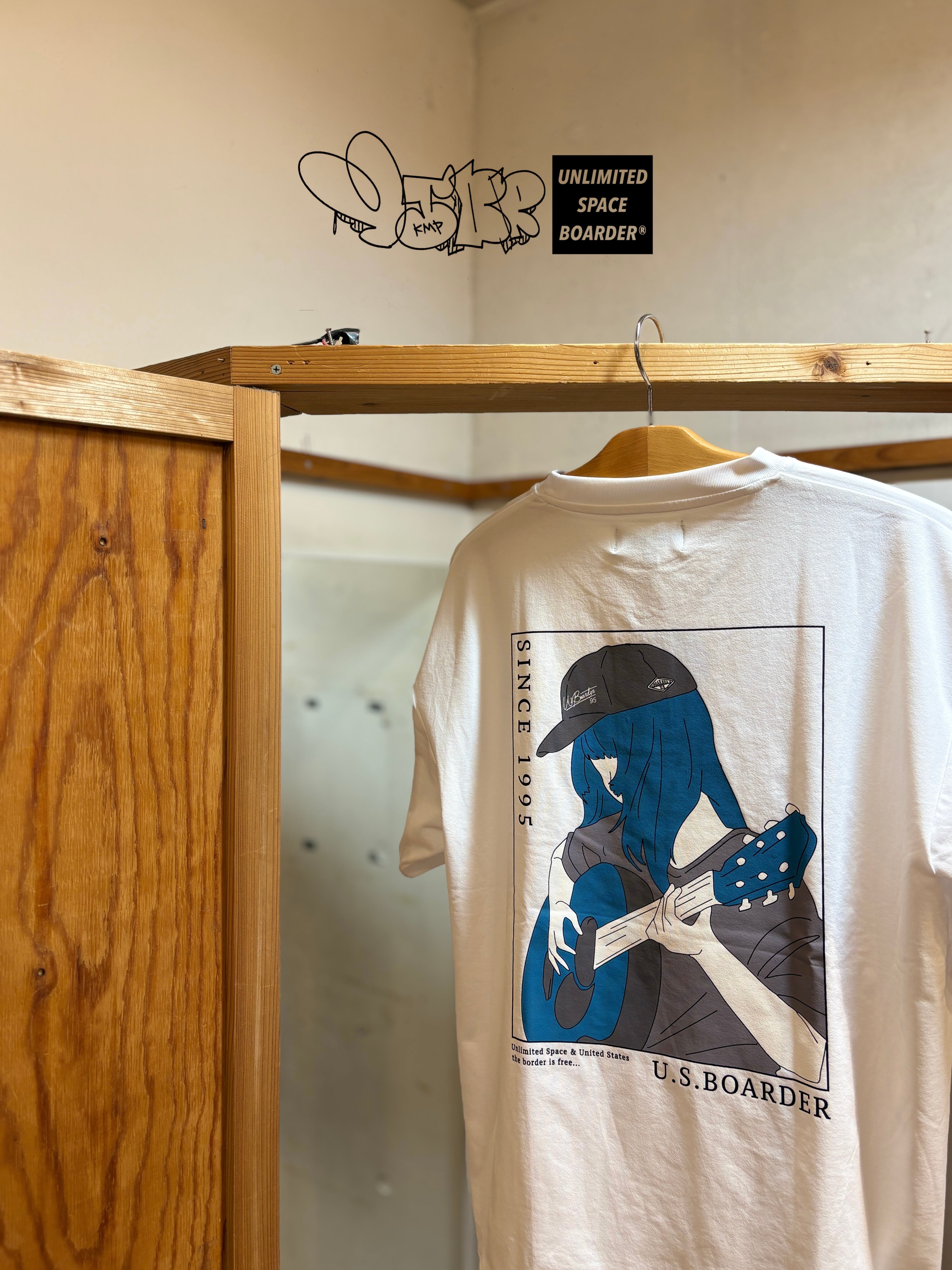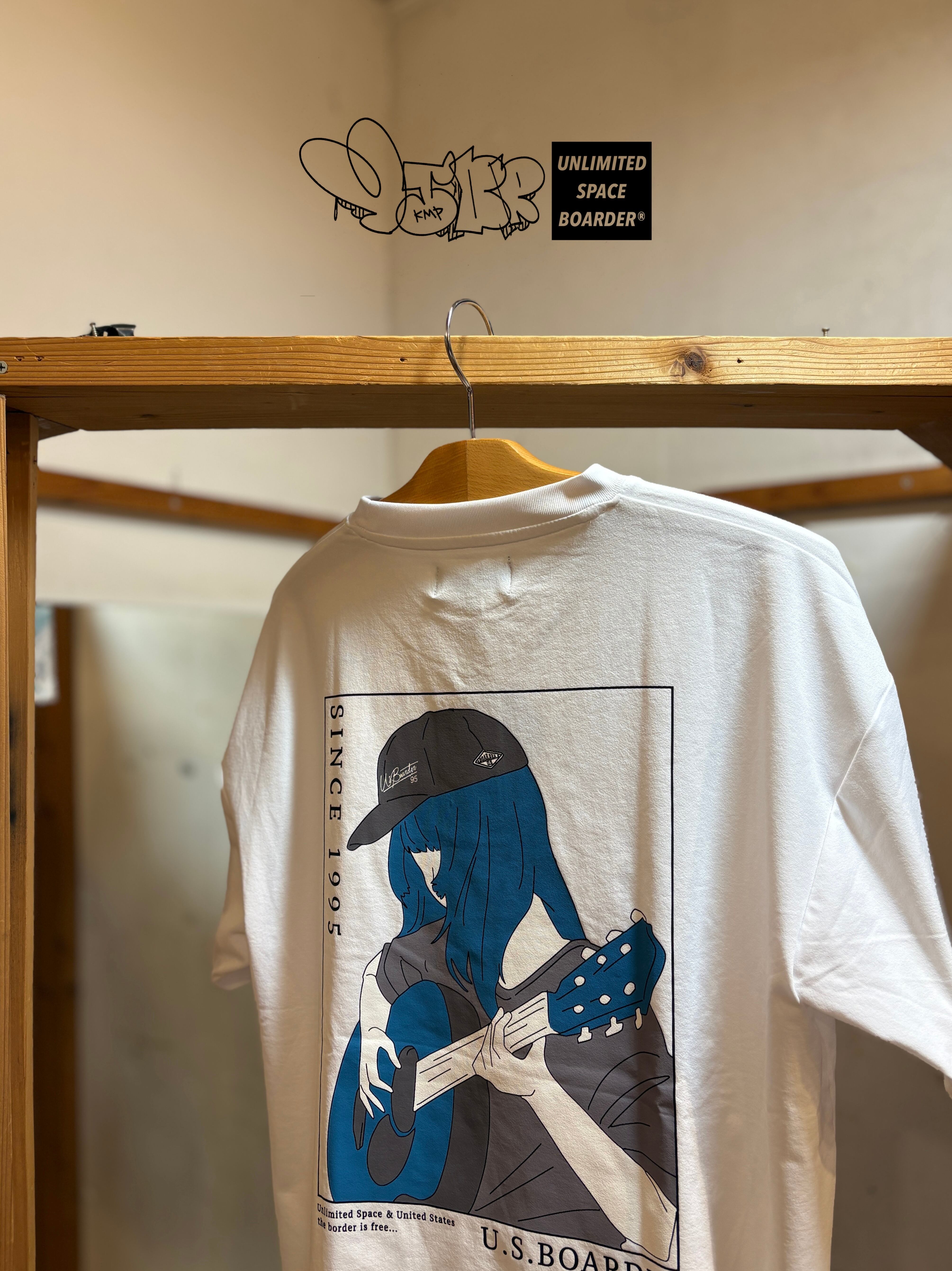 usboarder T-shirt S/S ギター T-shirt White ホワイト 白色 ストリート女子 girl guitar cap バックプリント ユーエスボーダー
