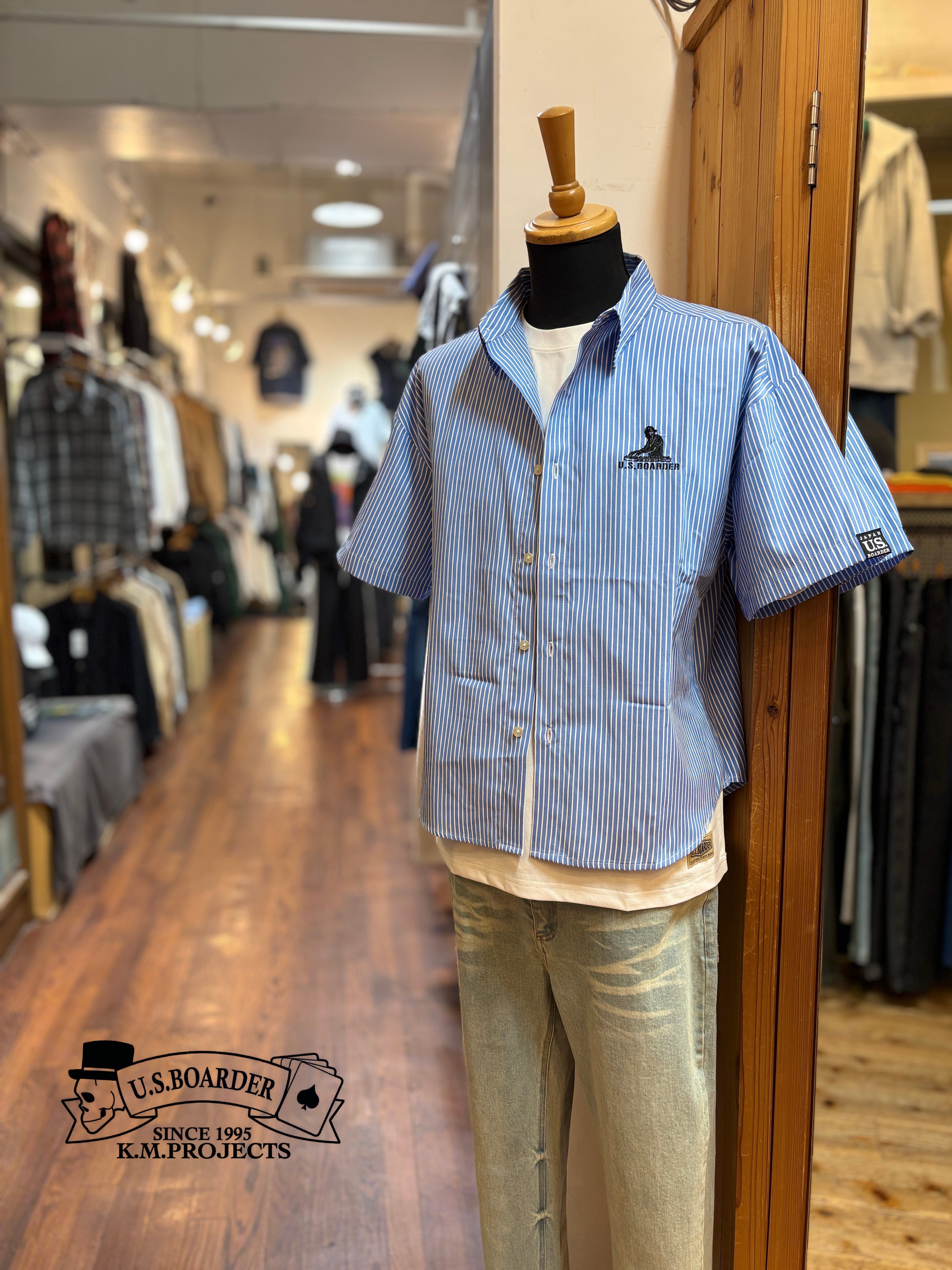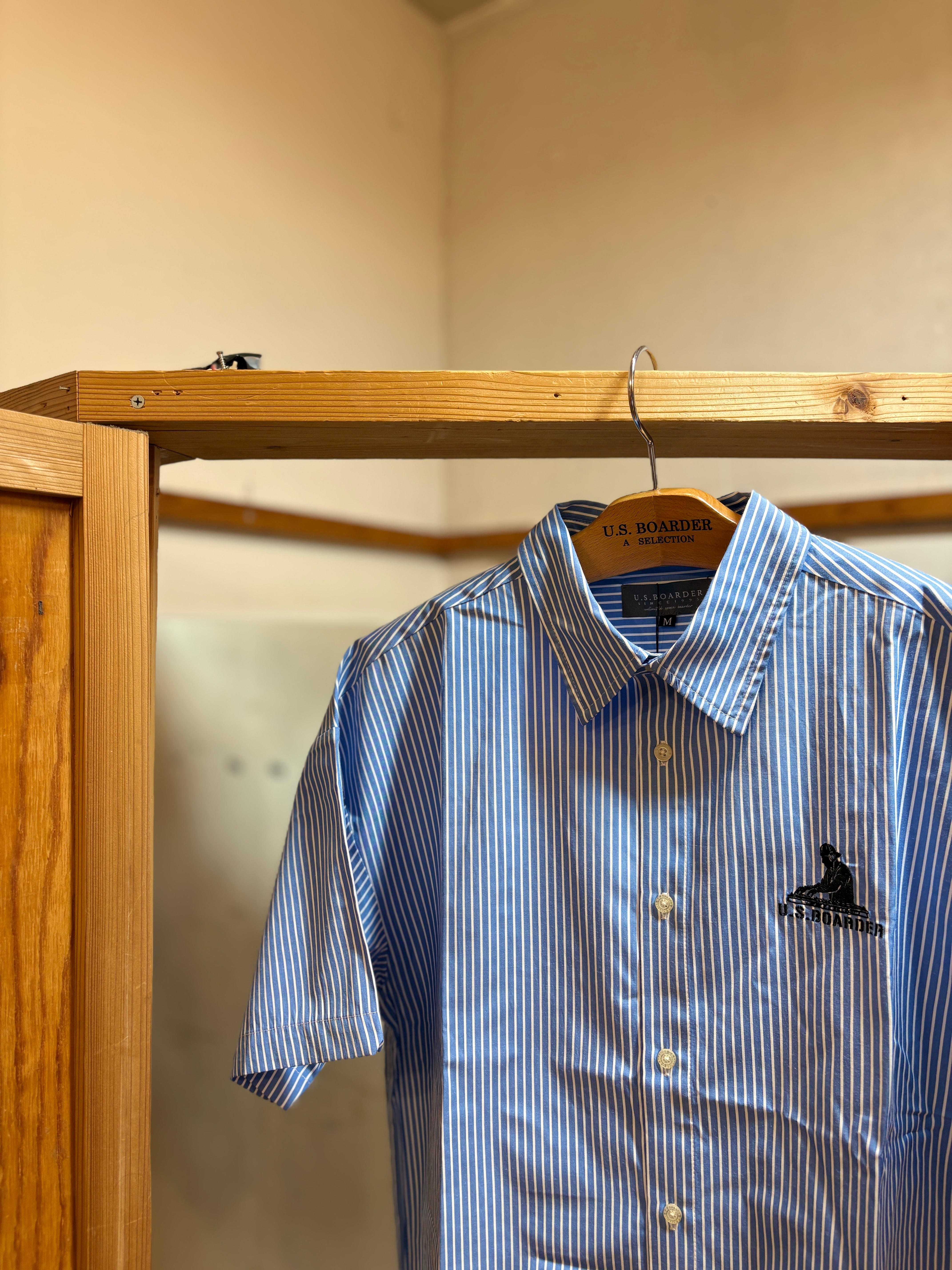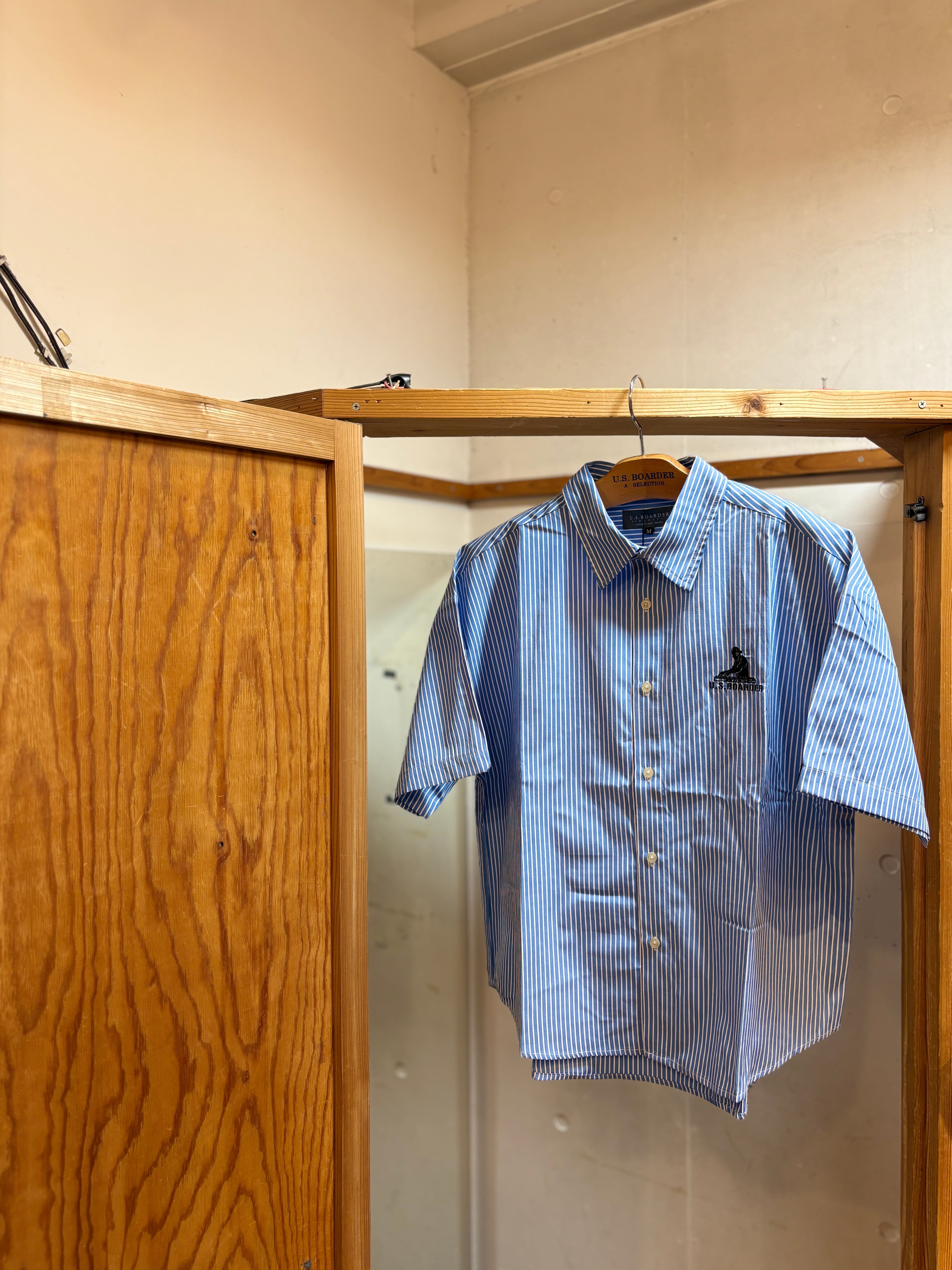 U.S.BOARDER S/S DJ SH Stripe ストライプ シャツ ブルー/ホワイト Blue / White シャツジャケット ジャケット ワークシャツ ボックスシャツ 刺繍 DJ djブース ユーエスボーダー