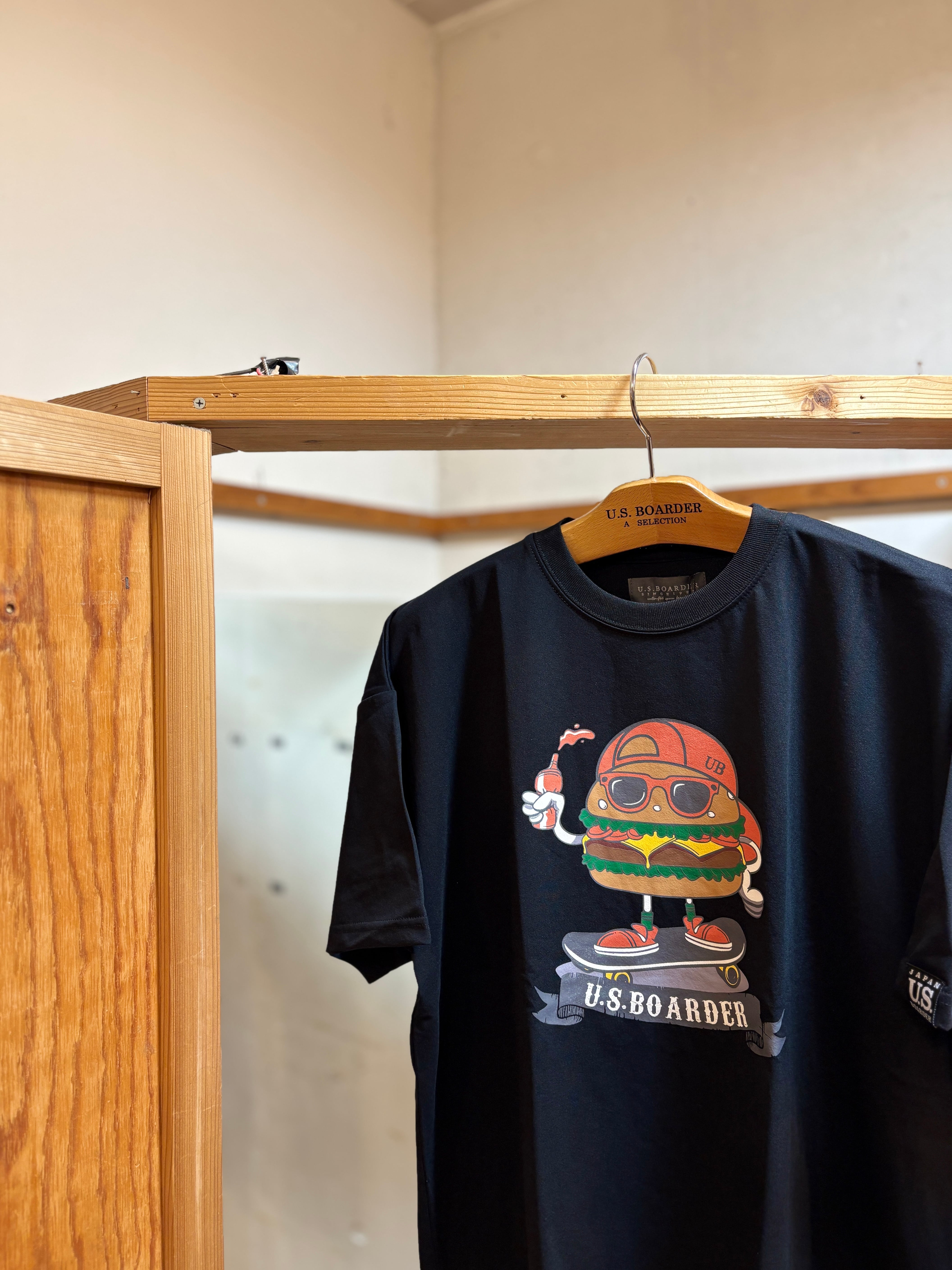 usboarder T-shirt S/S バーガーT T-shirt Black ブラック 黒色 ハンバーガー burger スケートボード sk8 ユーエスボーダー