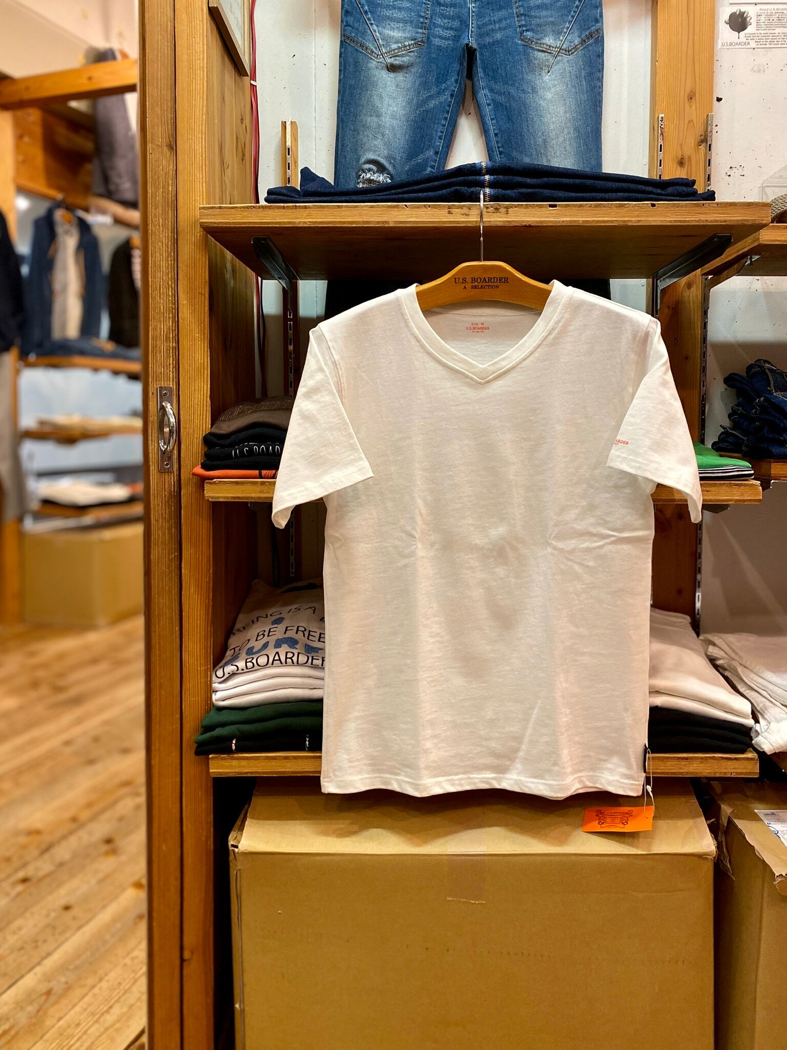 usboarder S/S V neck T-shirt white orange VネックTシャツ