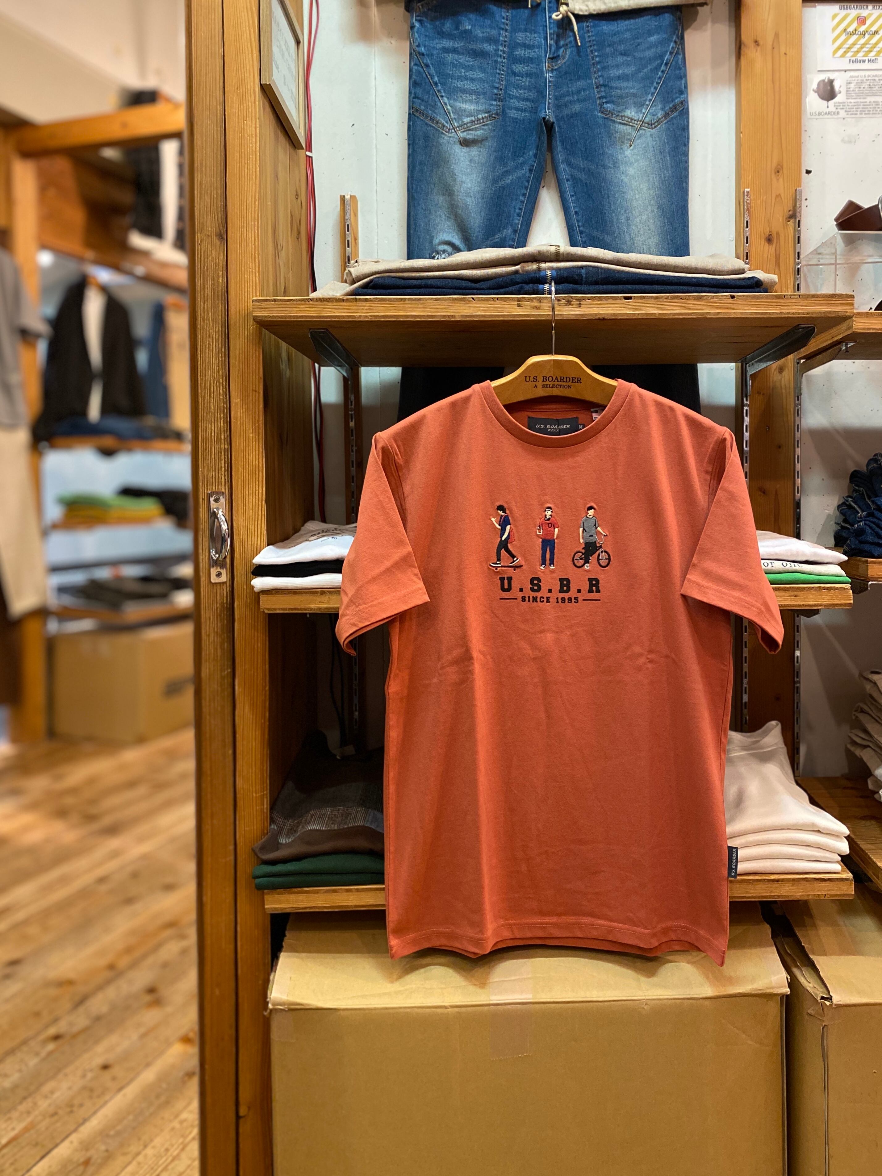 U.S.BOARDER Embroidery print T-shirt (Orange) 刺繍 三人 Tシャツ カジュアル