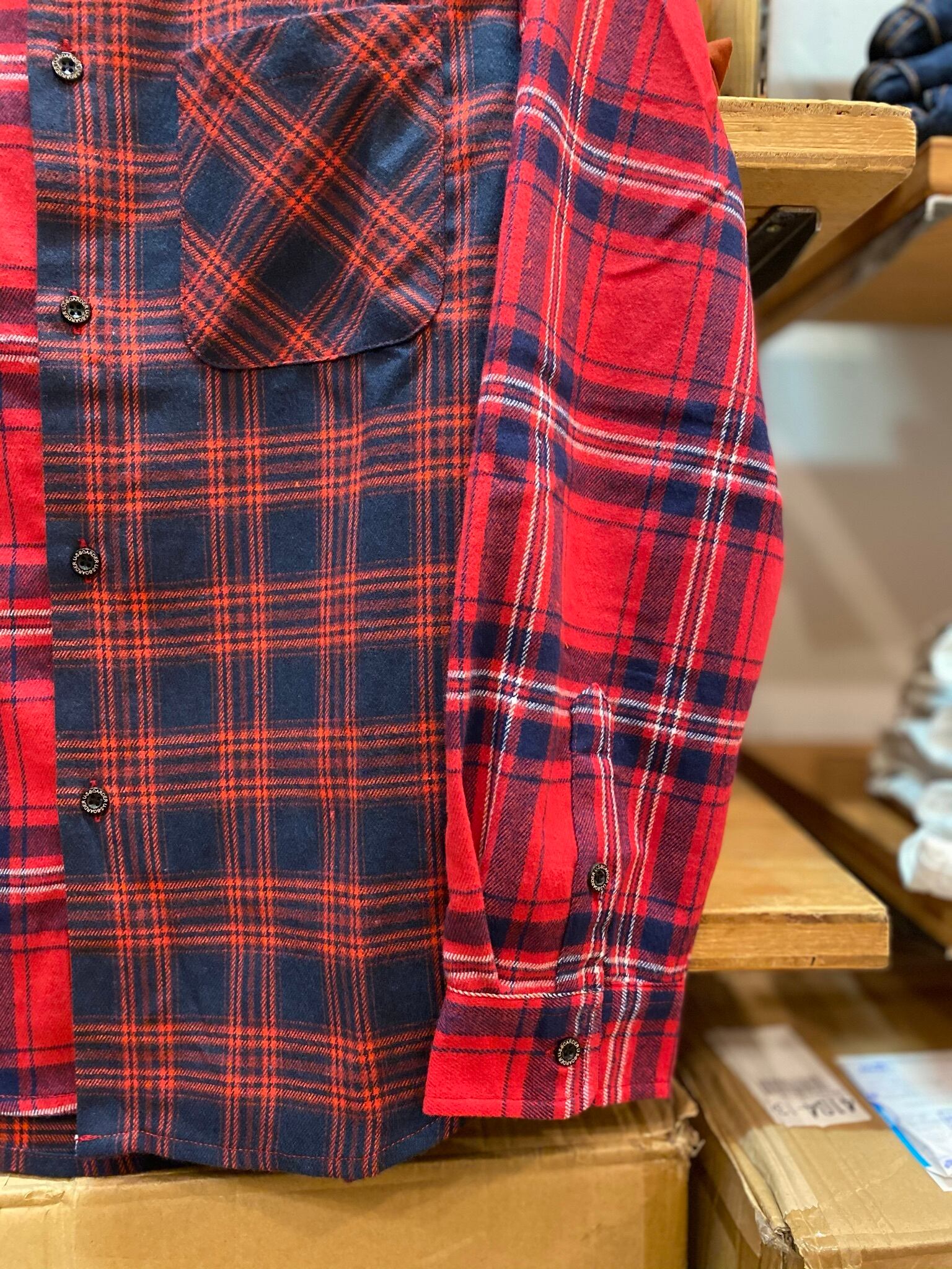 usboarder WチェックネルSH ネルシャツ チェック (Red) 赤色 チェックシャツ アシメトリー