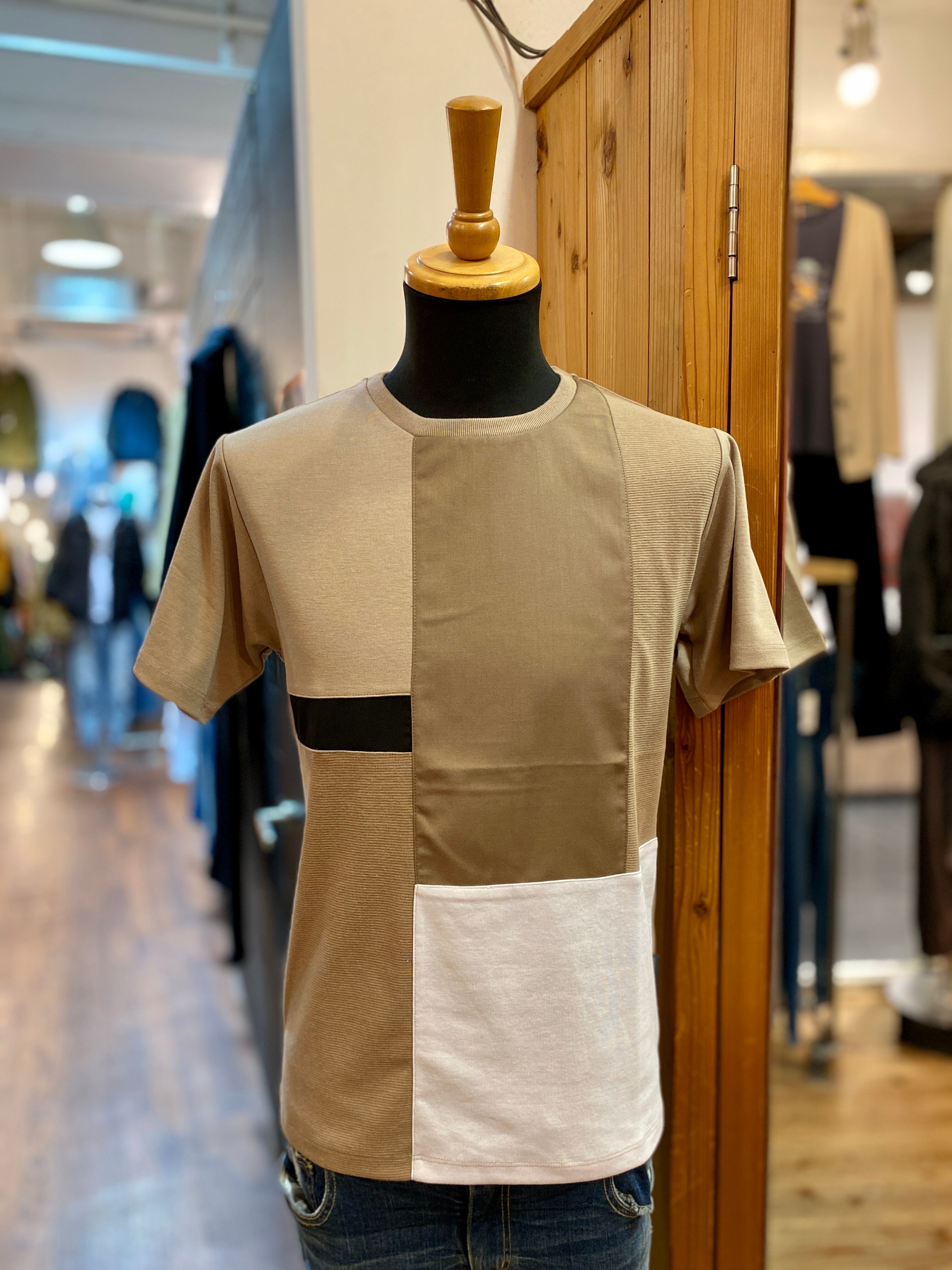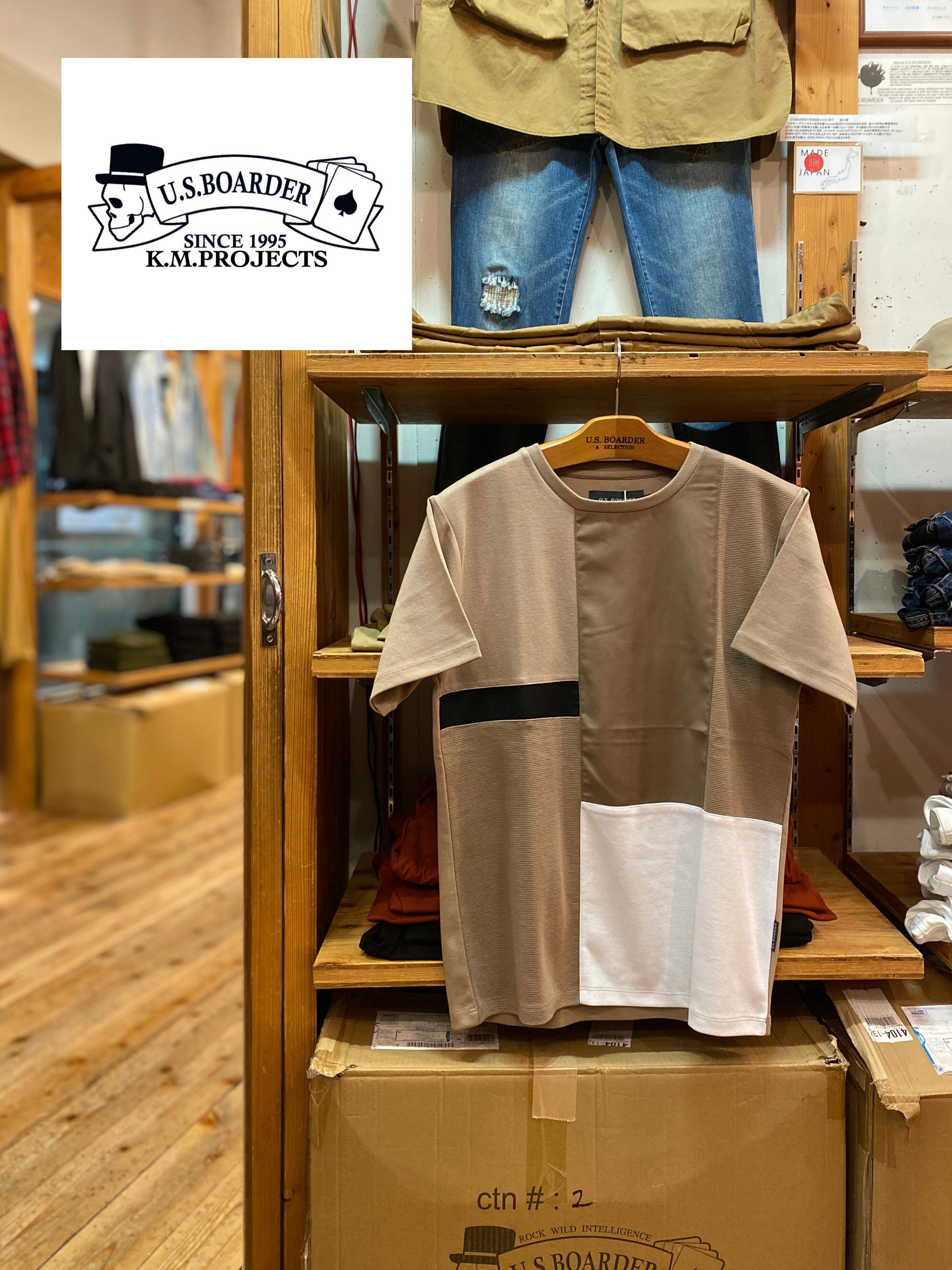 usboarder T-shirt S/S ポンチ異素T ポンチ 異素材 Beige ベージュ patchwork パッチワーク ユーエスボーダー