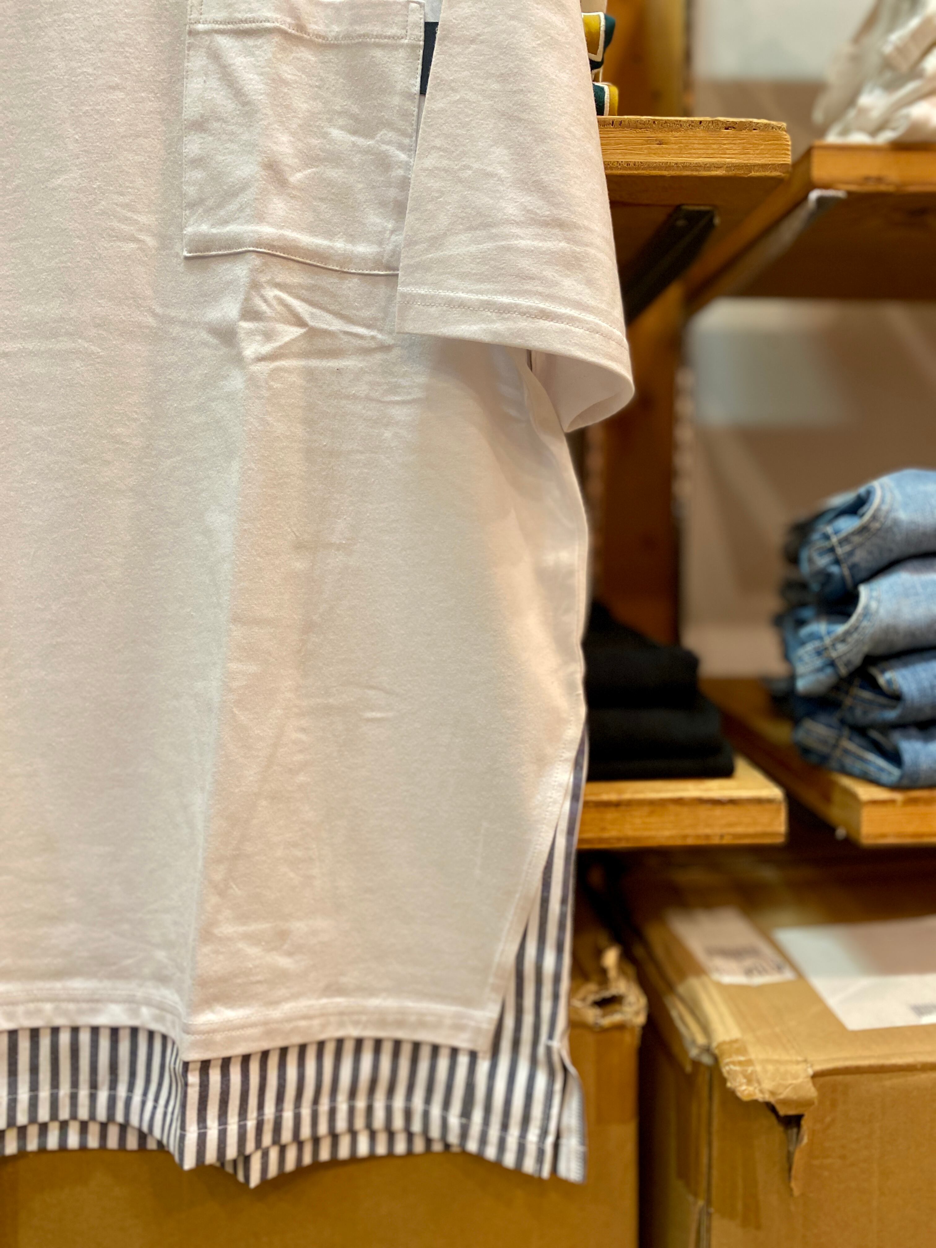 usboarder S/S BIGスリットT White ホワイト レイヤード Tシャツ 重ね着風 スリット オーガニックコットン ユーエスボーダー