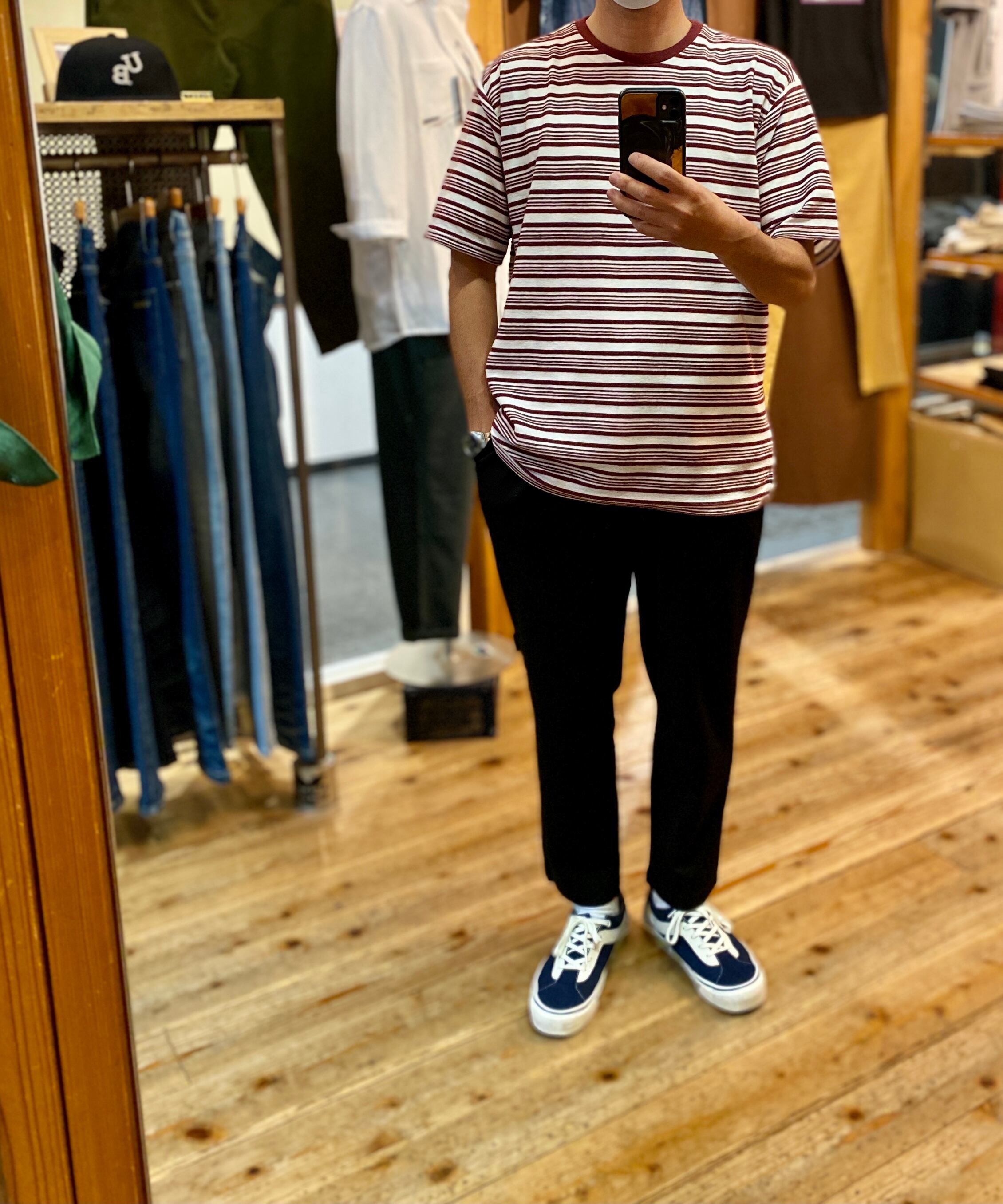 サラッとした質感にジャージの様な履き心地は夏の汗ばむ季節でもまとわりつかず、滑らかな生地感が心地良いです。涼しく履けるアイテムです。