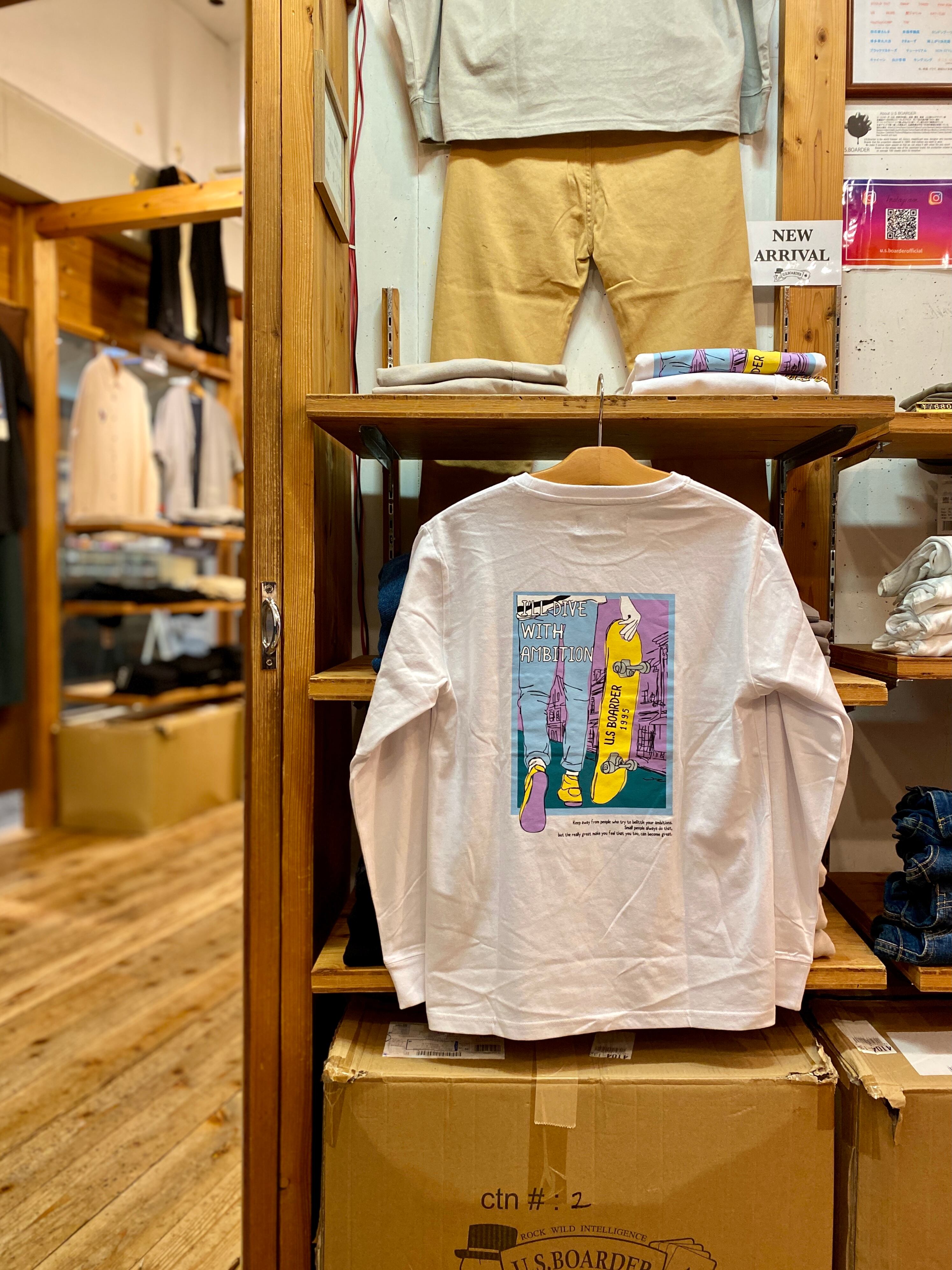 usboarder L/S ロンT 新 White 白 バックプリント スケートボード ロングスリーブ ユーエスボーダー