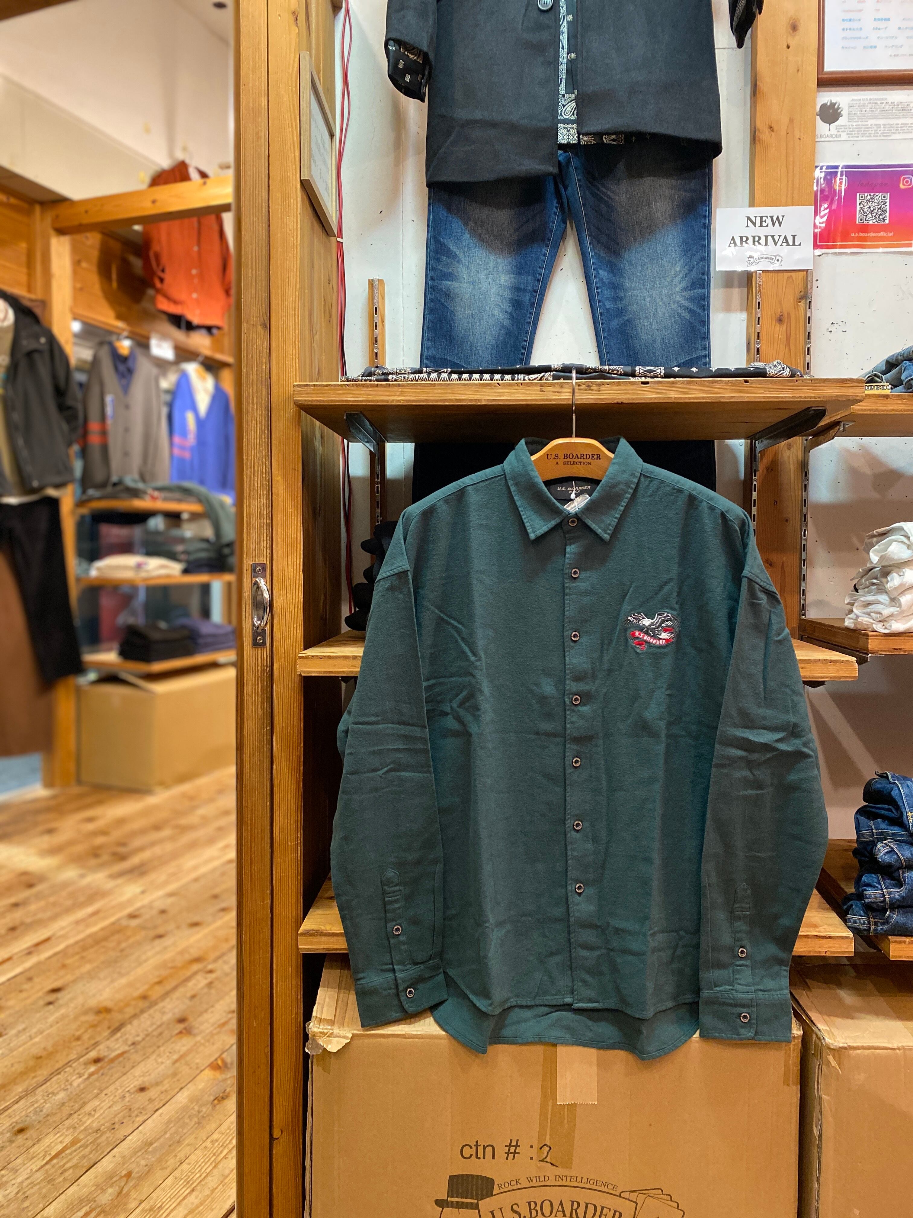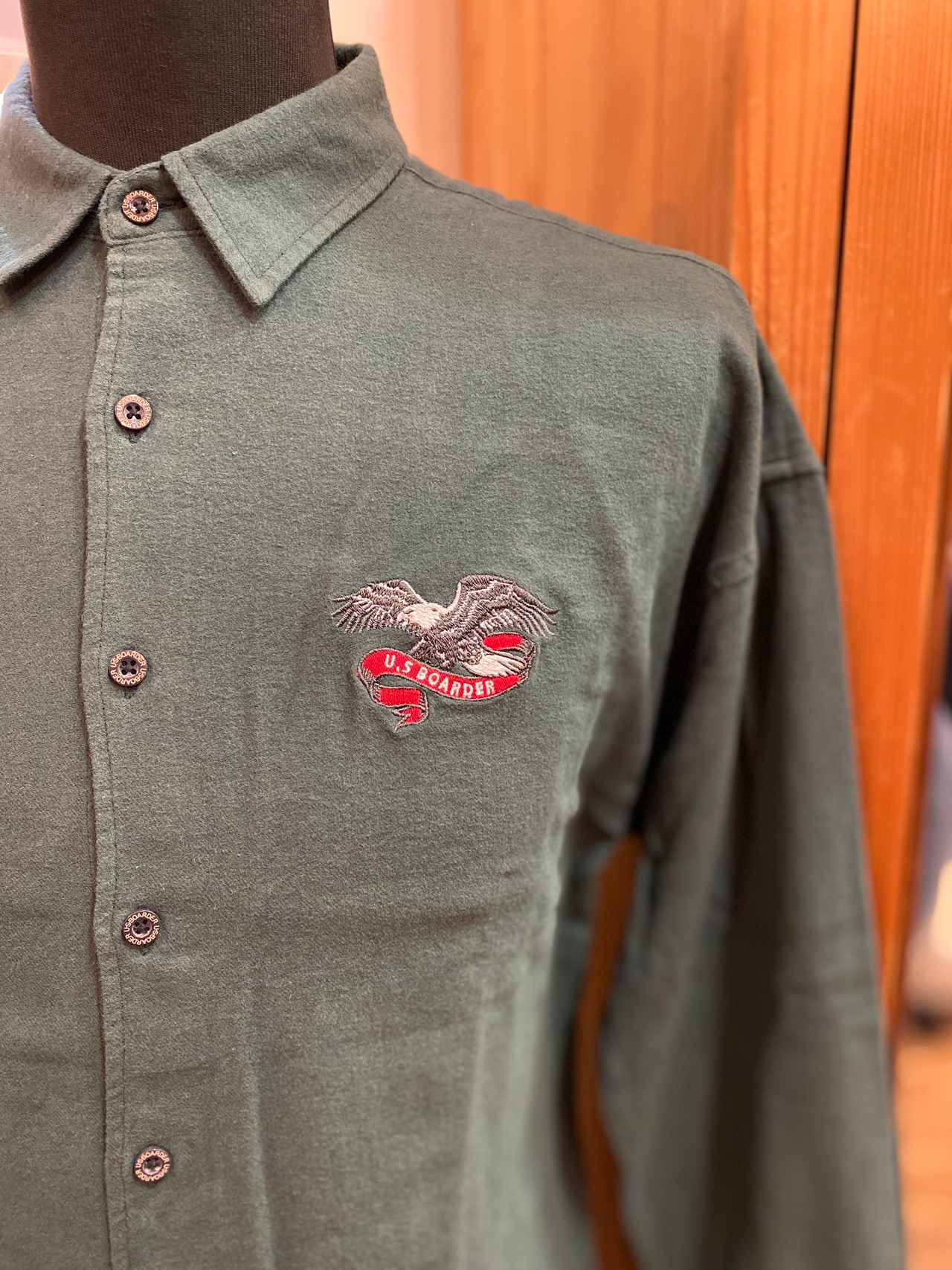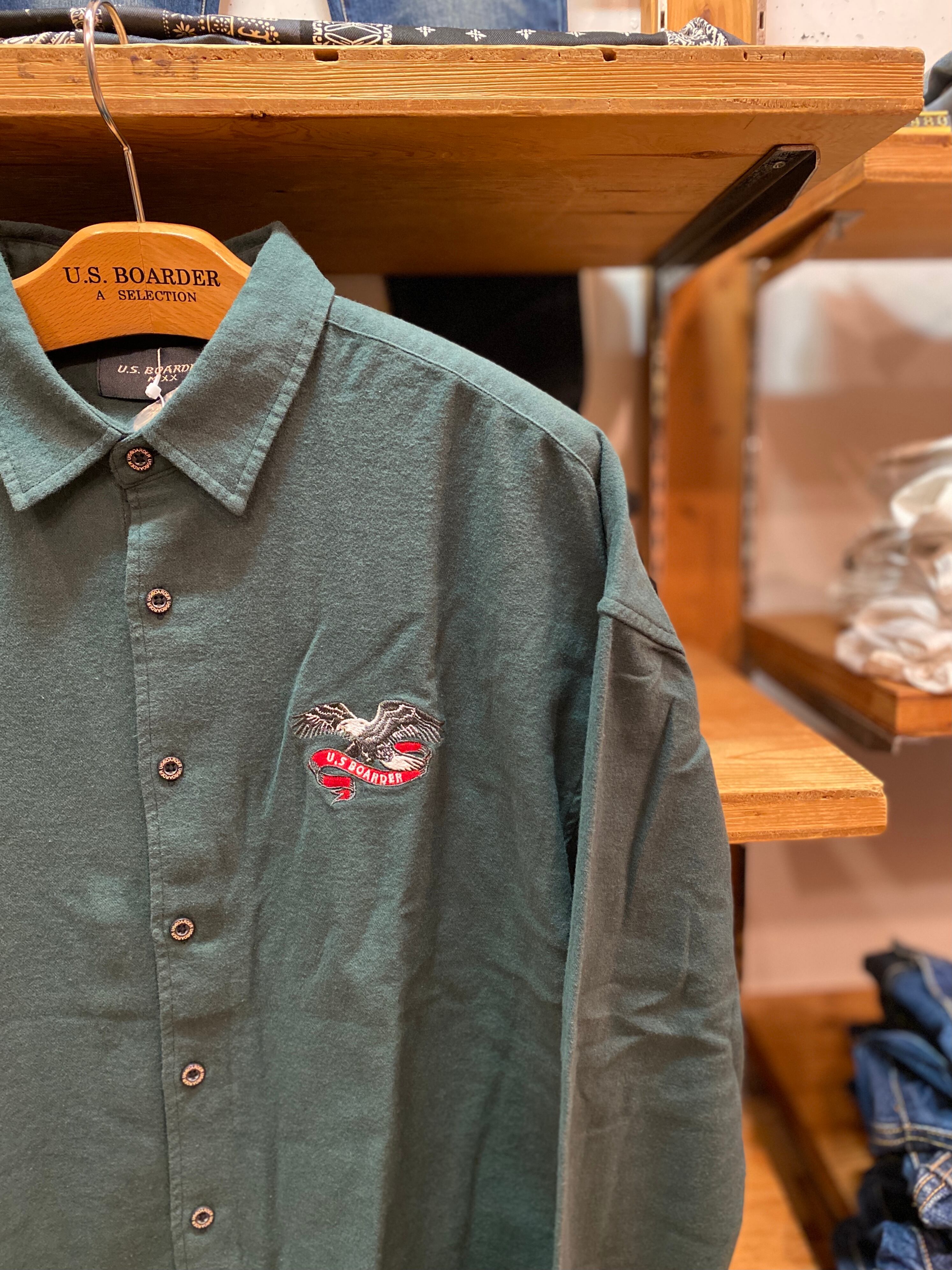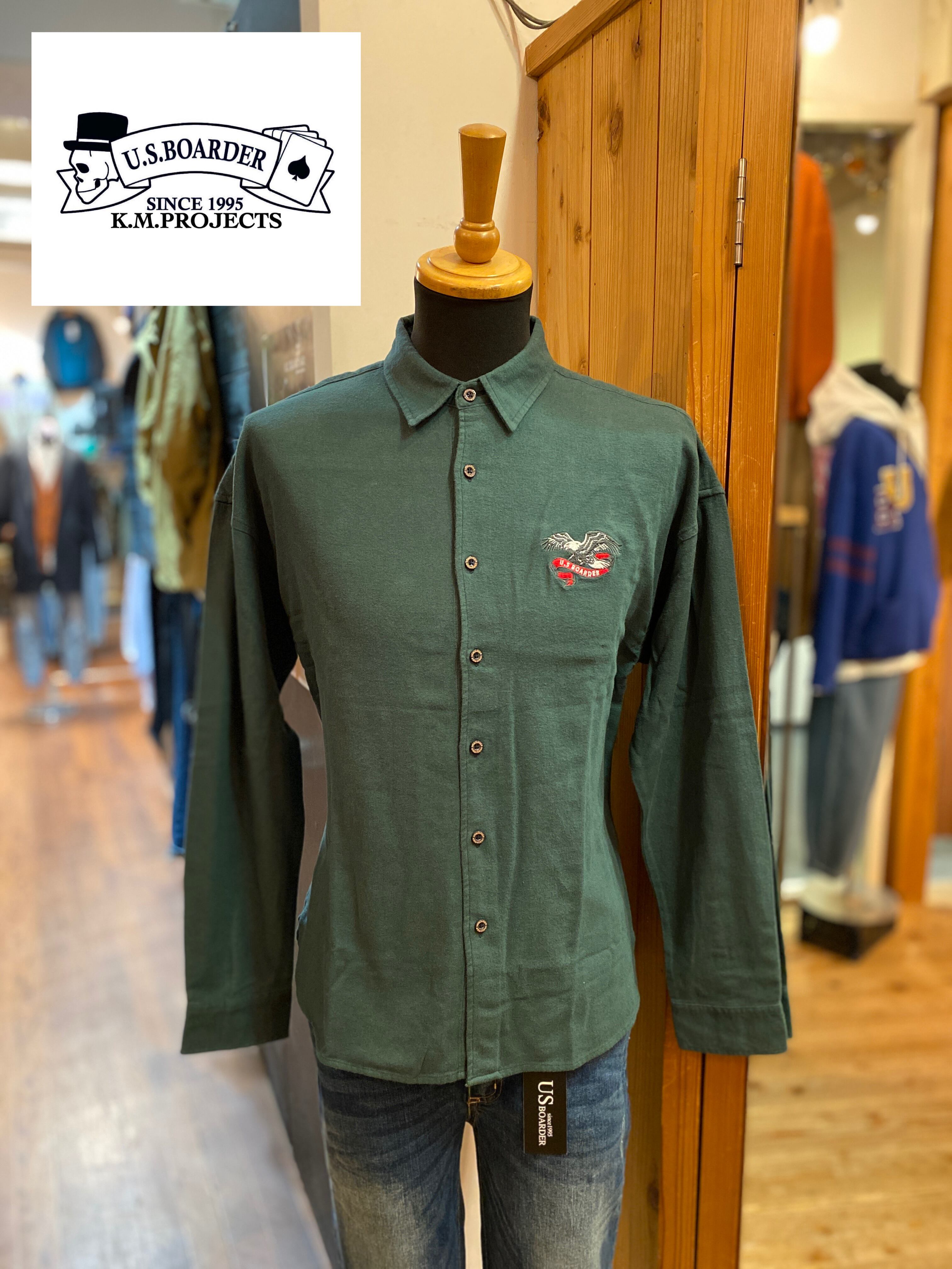 usboarder コットン刺繍SH Green 緑 起毛コットン Shirt 刺繍 embroidery シャツ ユーエスボーダー