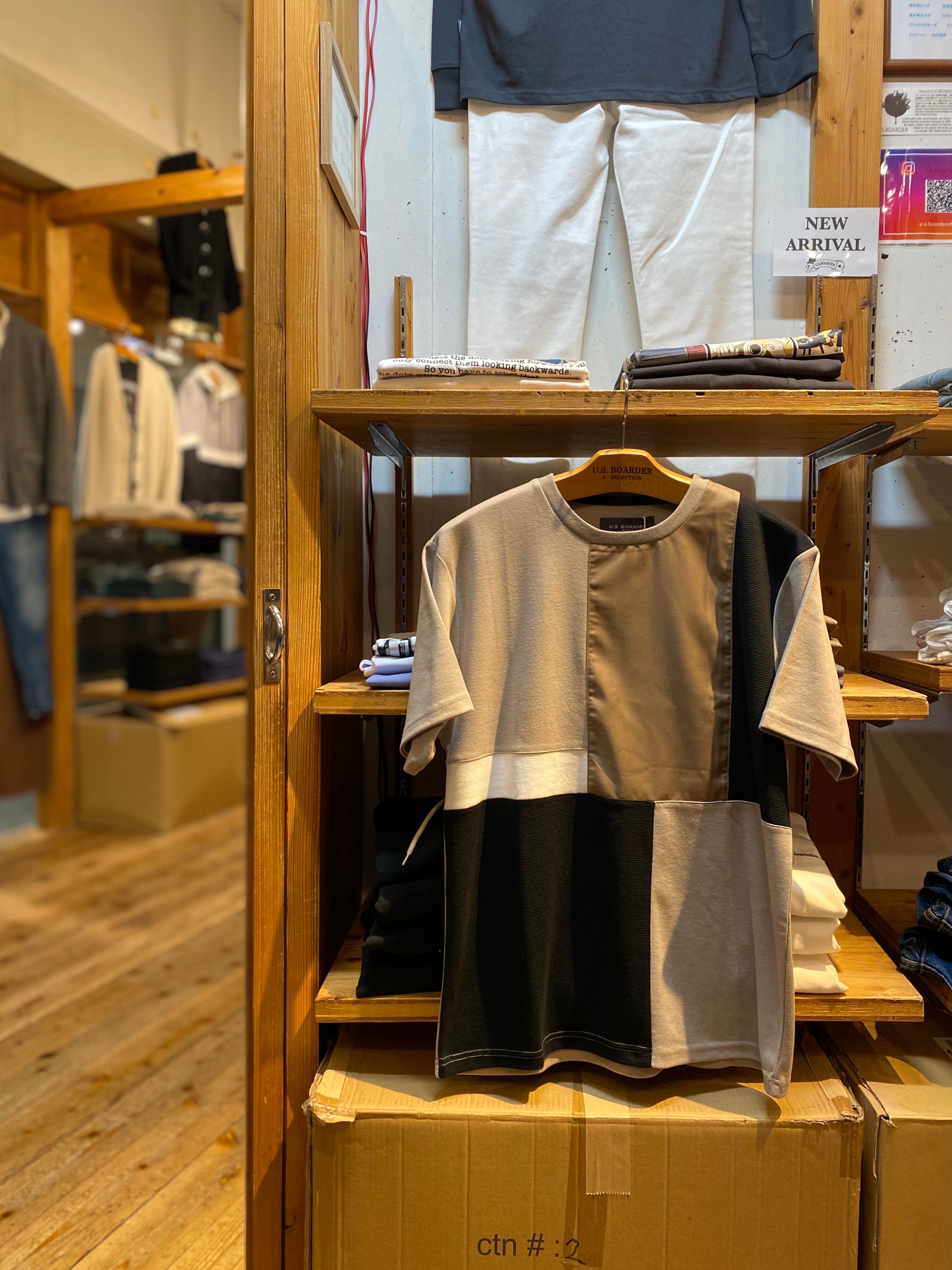 usboarder T-shirt S/S ブロック切替T block Beige ベージュ patchwork パッチワーク
