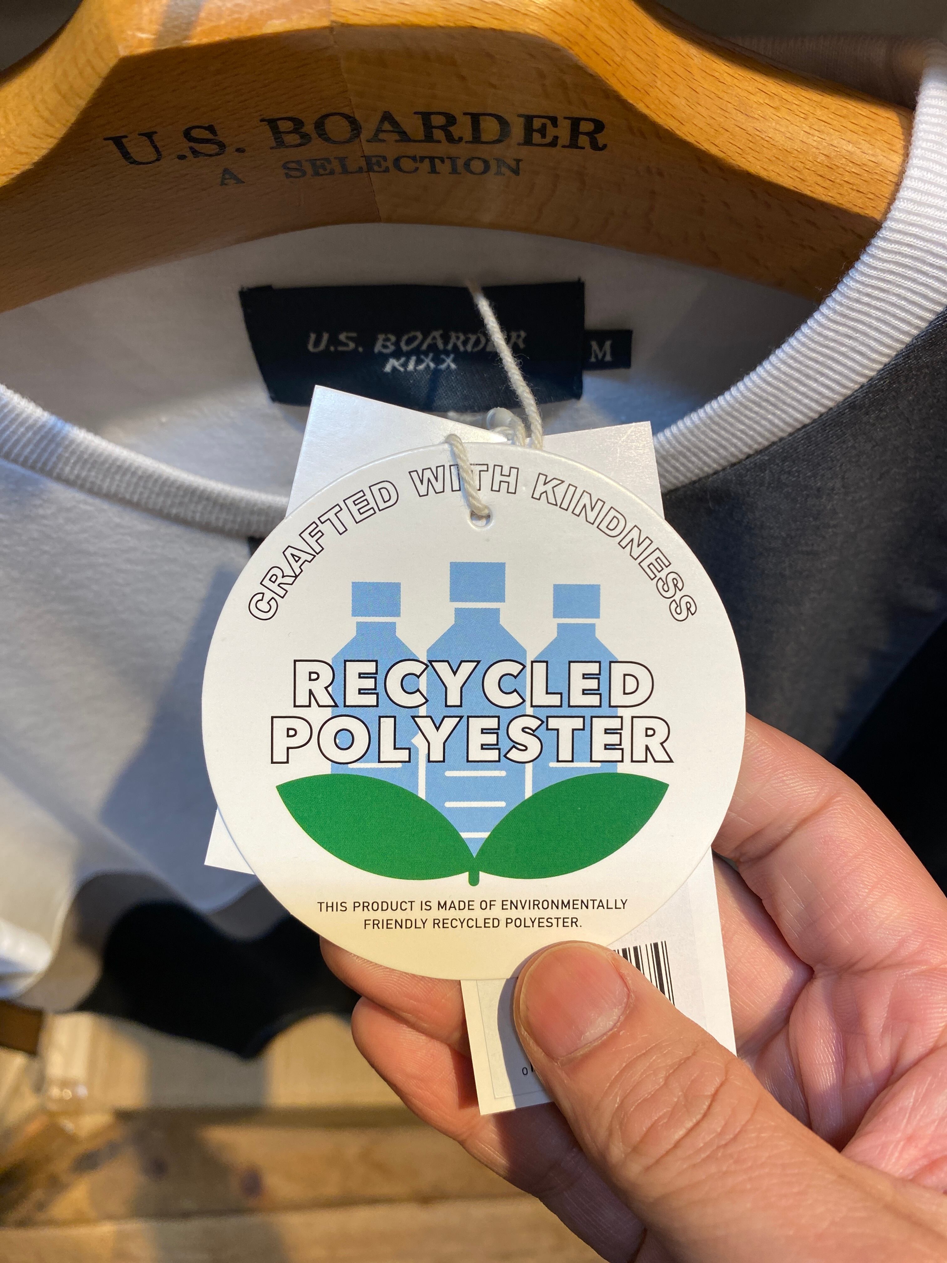 再生ポリエステルを使用している為、環境に優しいアイテムです。(パッチワーク部分はリップルと布帛生地を使用。)