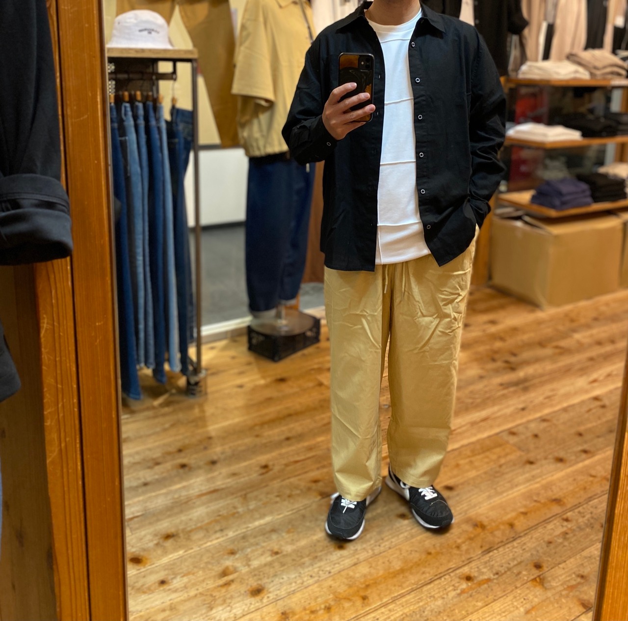 コットンにテンセル素材のシャリ感、ワイドシルエットが特徴的なボトムスです。
