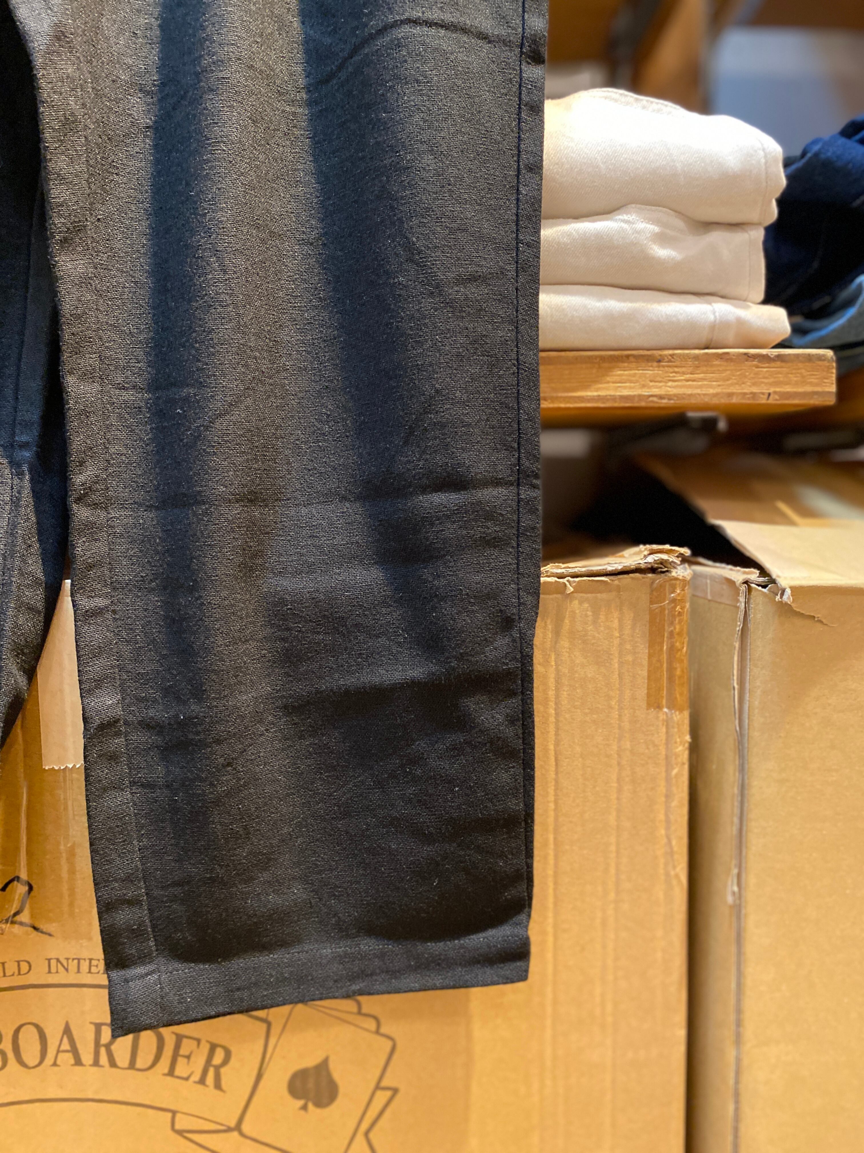 汗ばむ季節に混合リネンのサラッとしたシャリ感、緩めシルエットが動きやすくライトな質感が心地良いです。