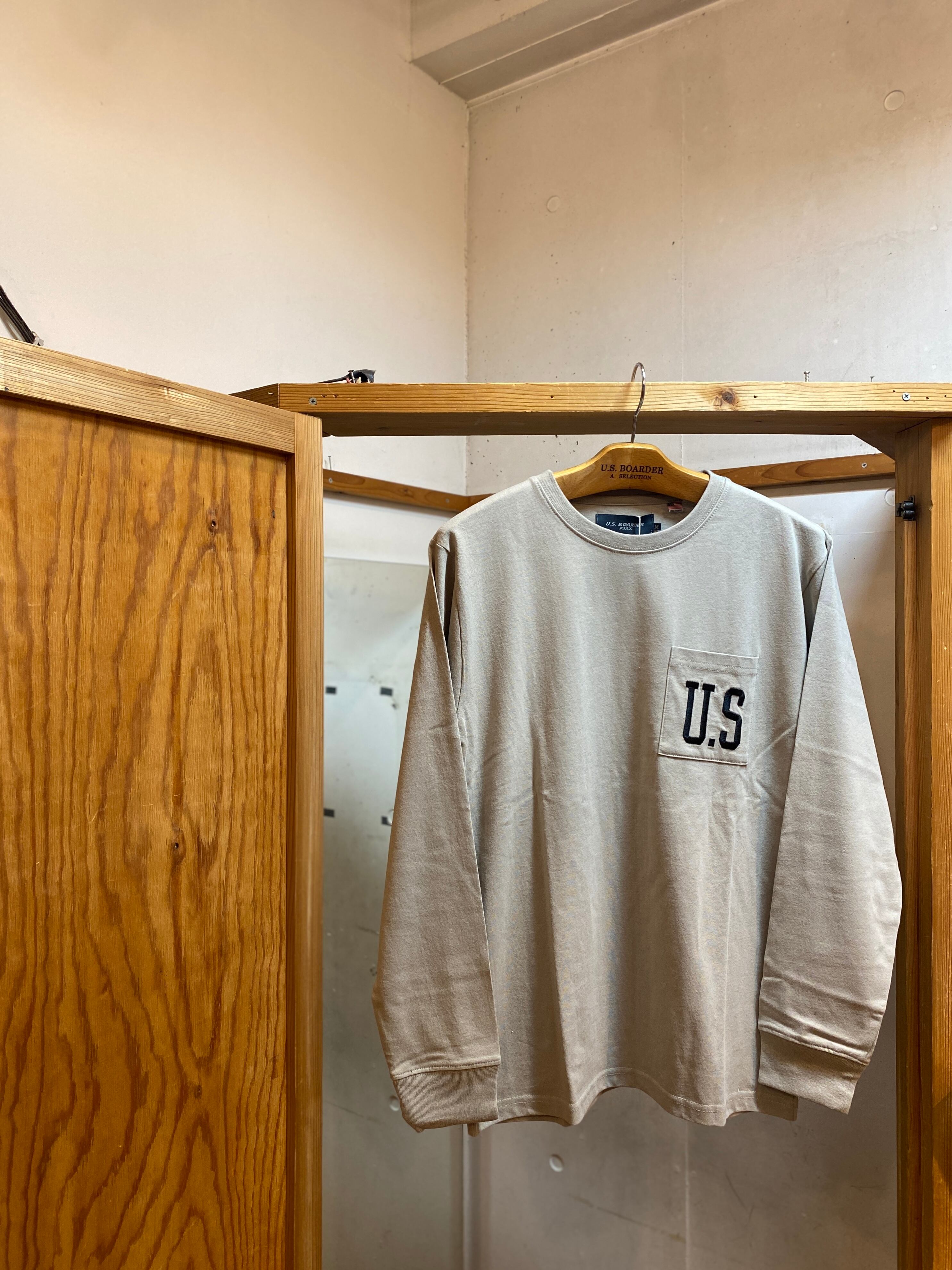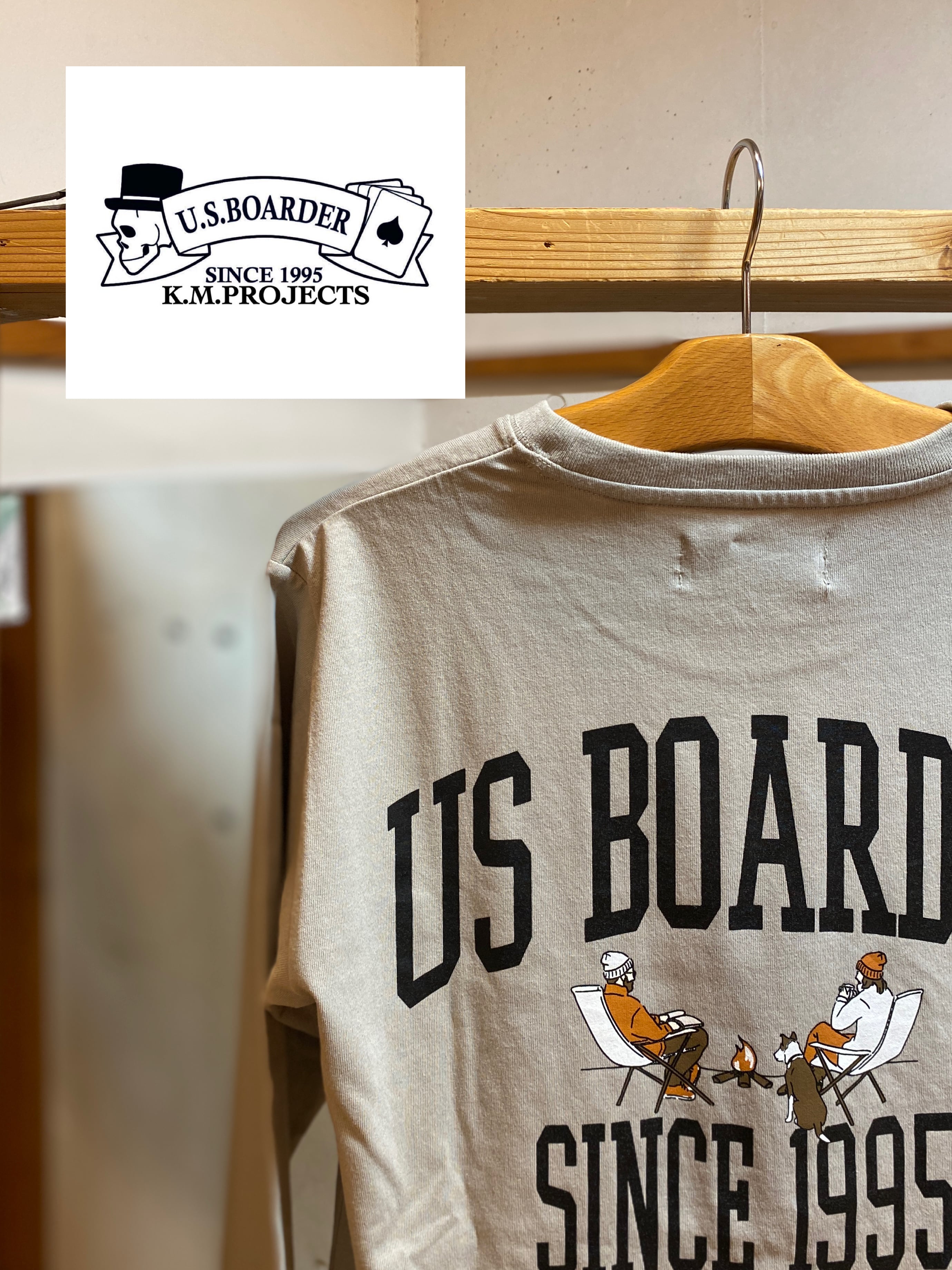 usboarder L/S ロンT 新宿 グレージュ Greige バックプリント キャンプ キャンプファイヤー 刺繍 焚き火 キャンピング ロングスリーブ ユーエスボーダー