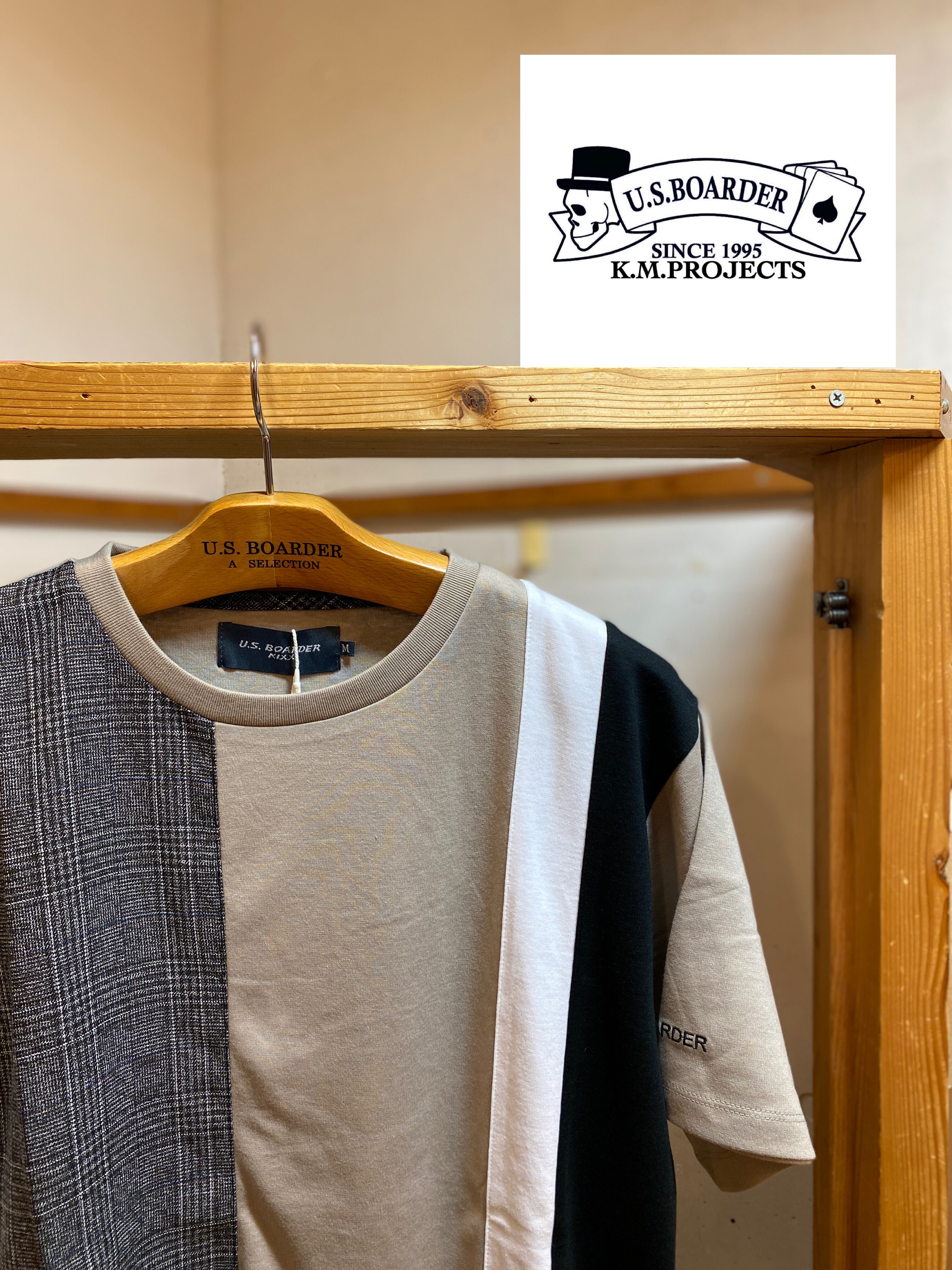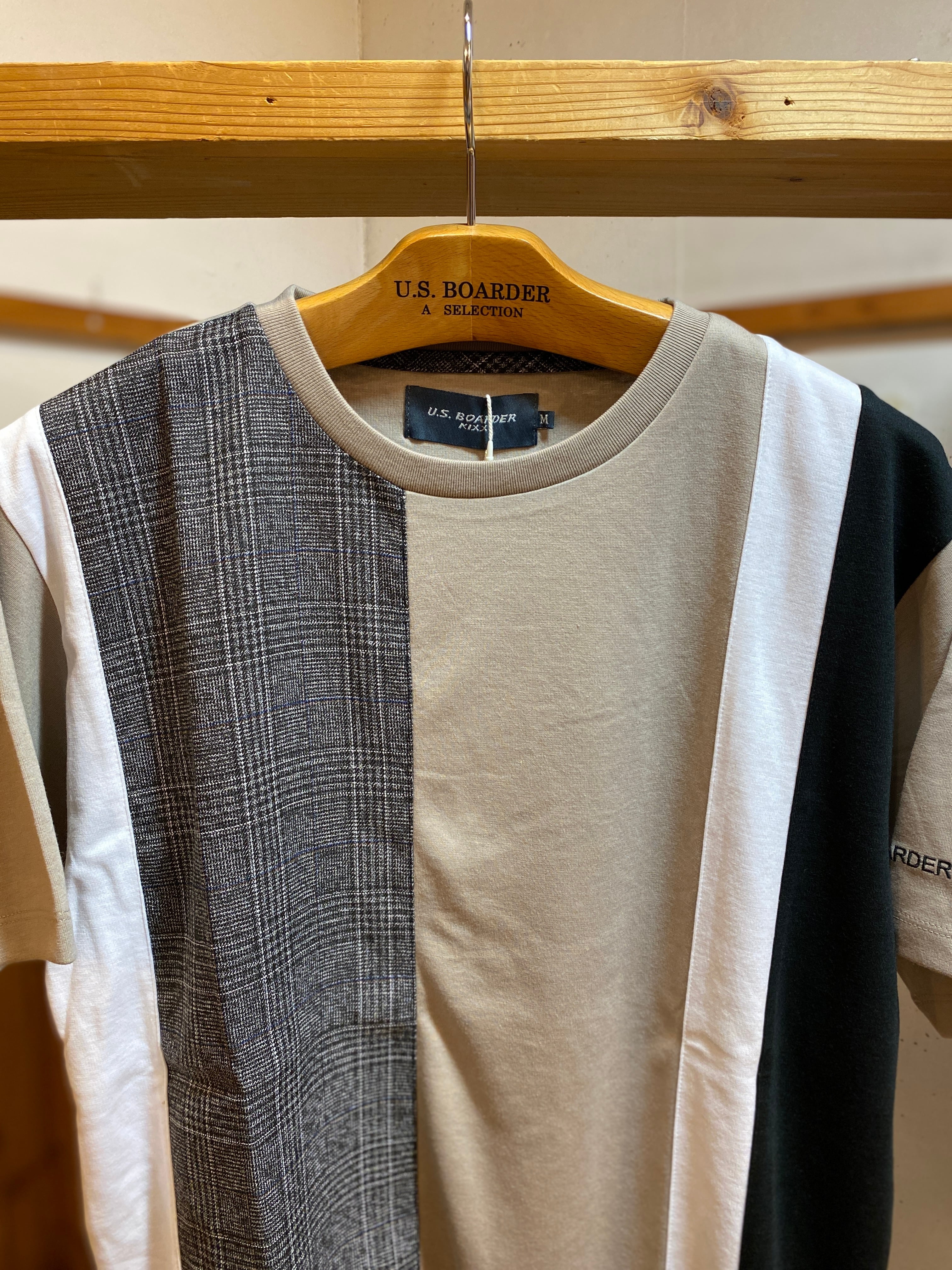 usboarder T-shirt S/S 縦ブロック切替T Greige グレージュ patchwork パッチワーク グレンチェック ユーエスボーダー