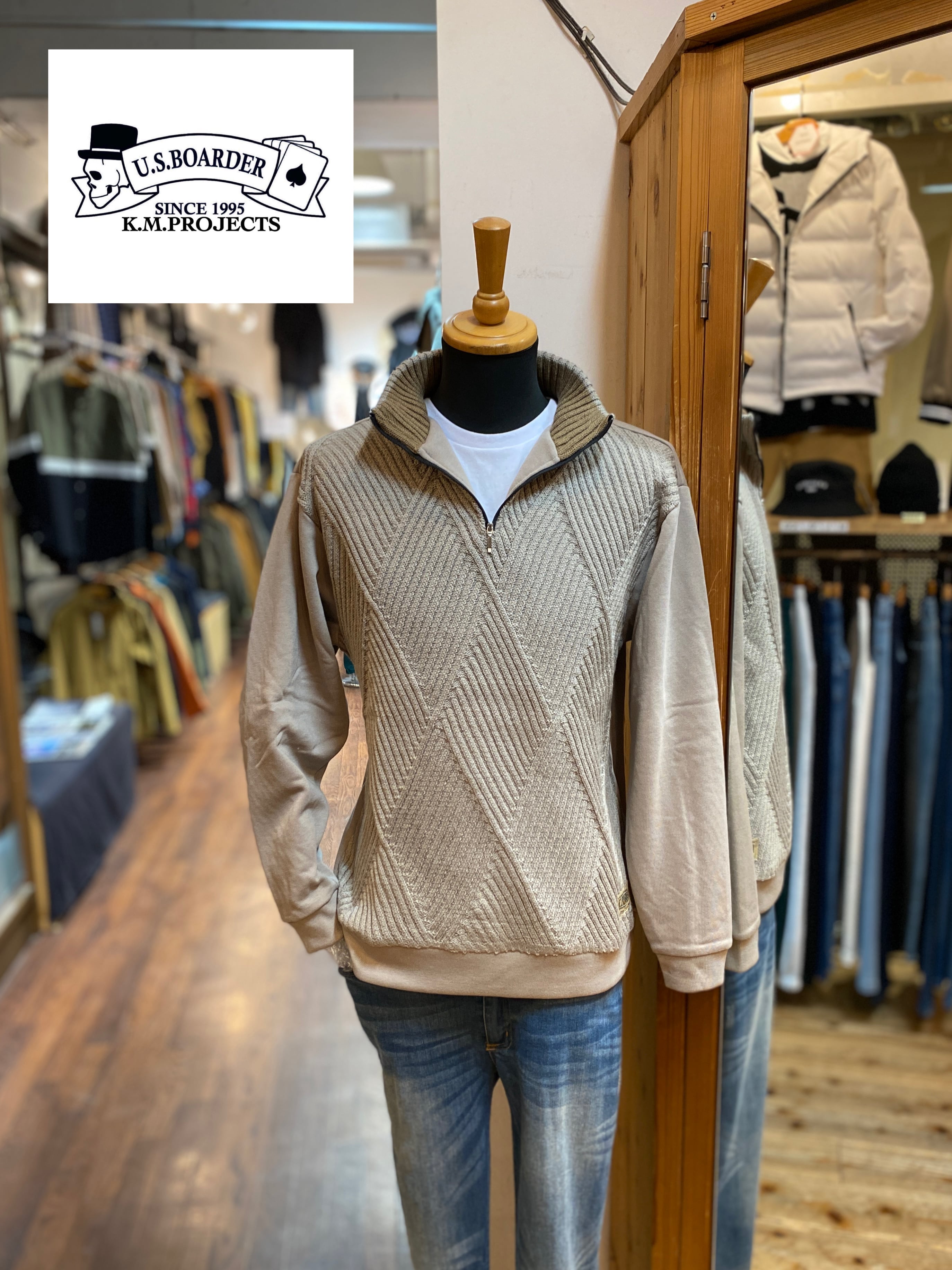 U.S.BOARDER ハーフZIPセーター Half zip sweater GRG Greige グレージュ ニット アノラック ハーフジップ ユーエスボーダー