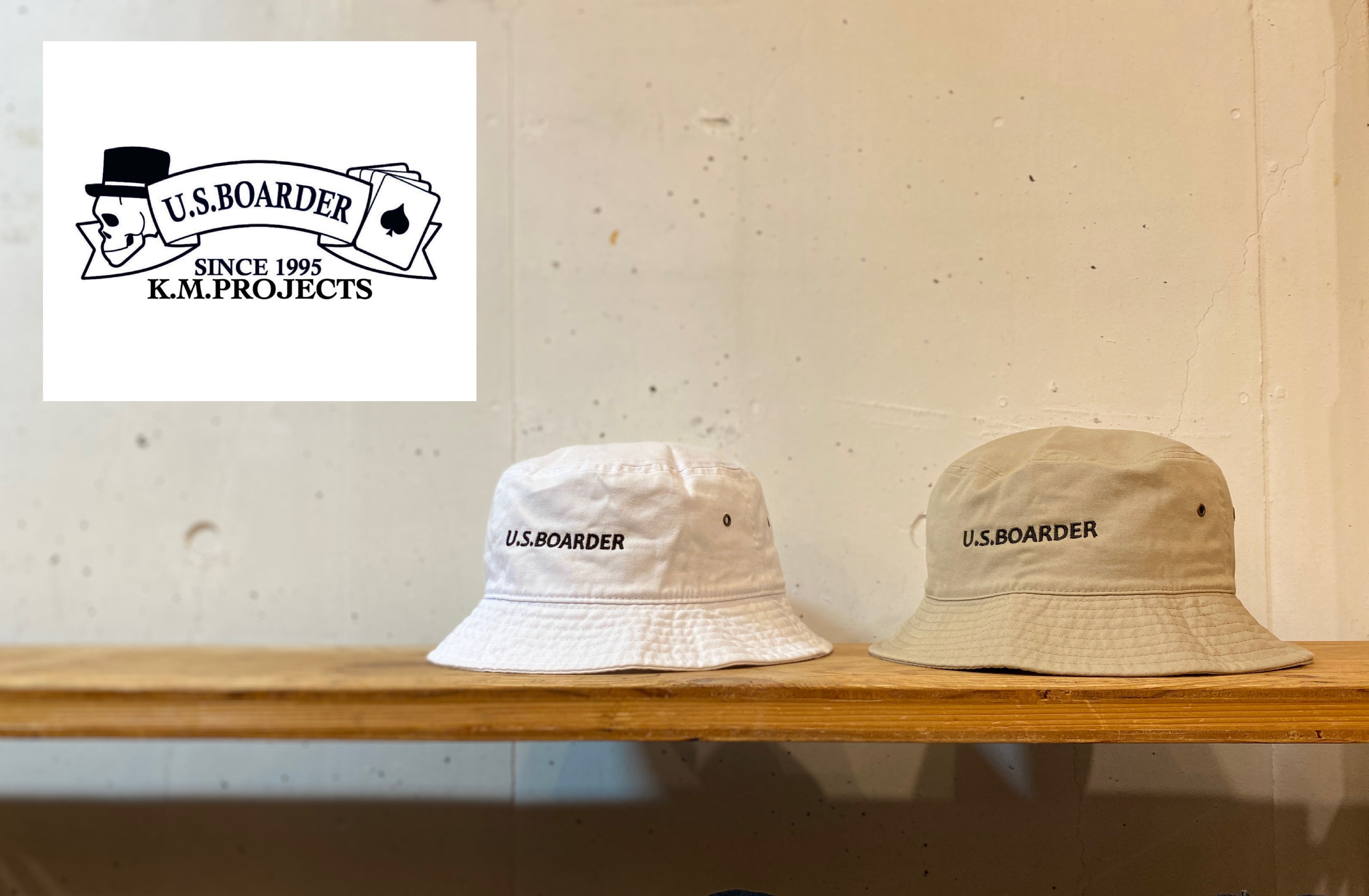 U.S.BOARDER Bucket hat バケットハット usボーダ White ホワイト 白色 Beige ベージュ 黄土色 ハット 刺繍 embroidery ユーエスボーダー