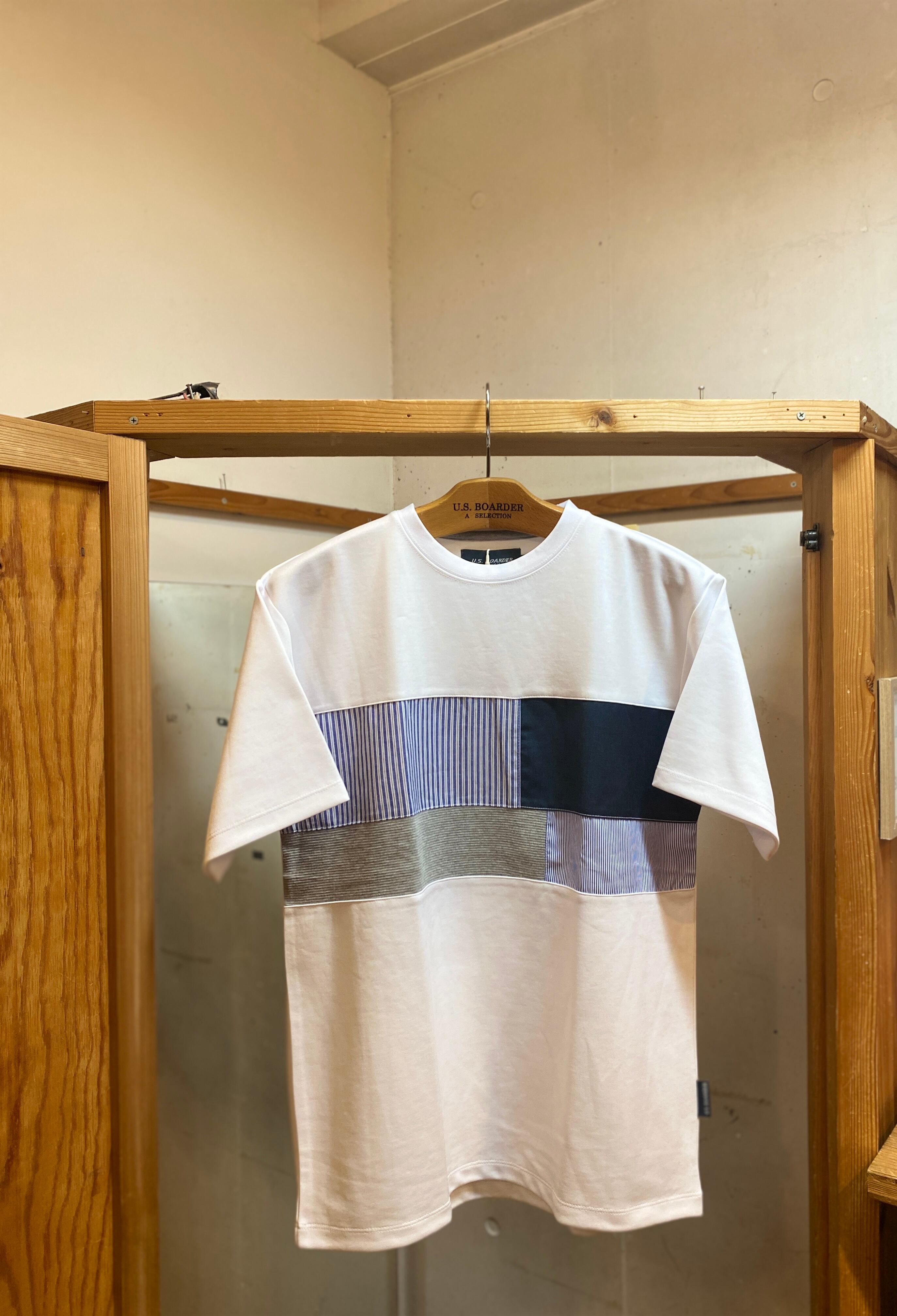 usboarder T-shirt S/S 胸パネルT White ホワイト 白色 patchwork パッチワーク 冷感素材 ユーエスボーダー