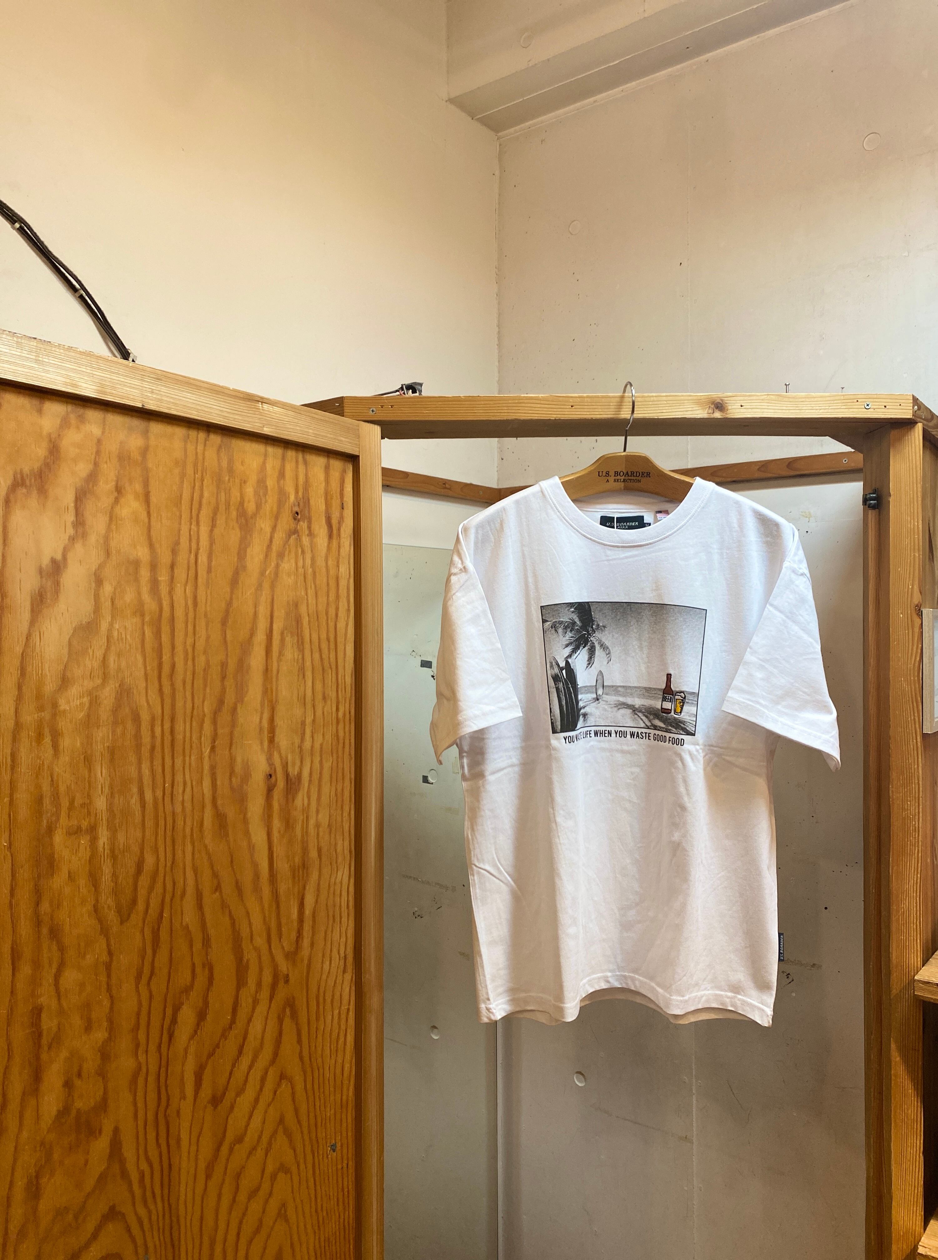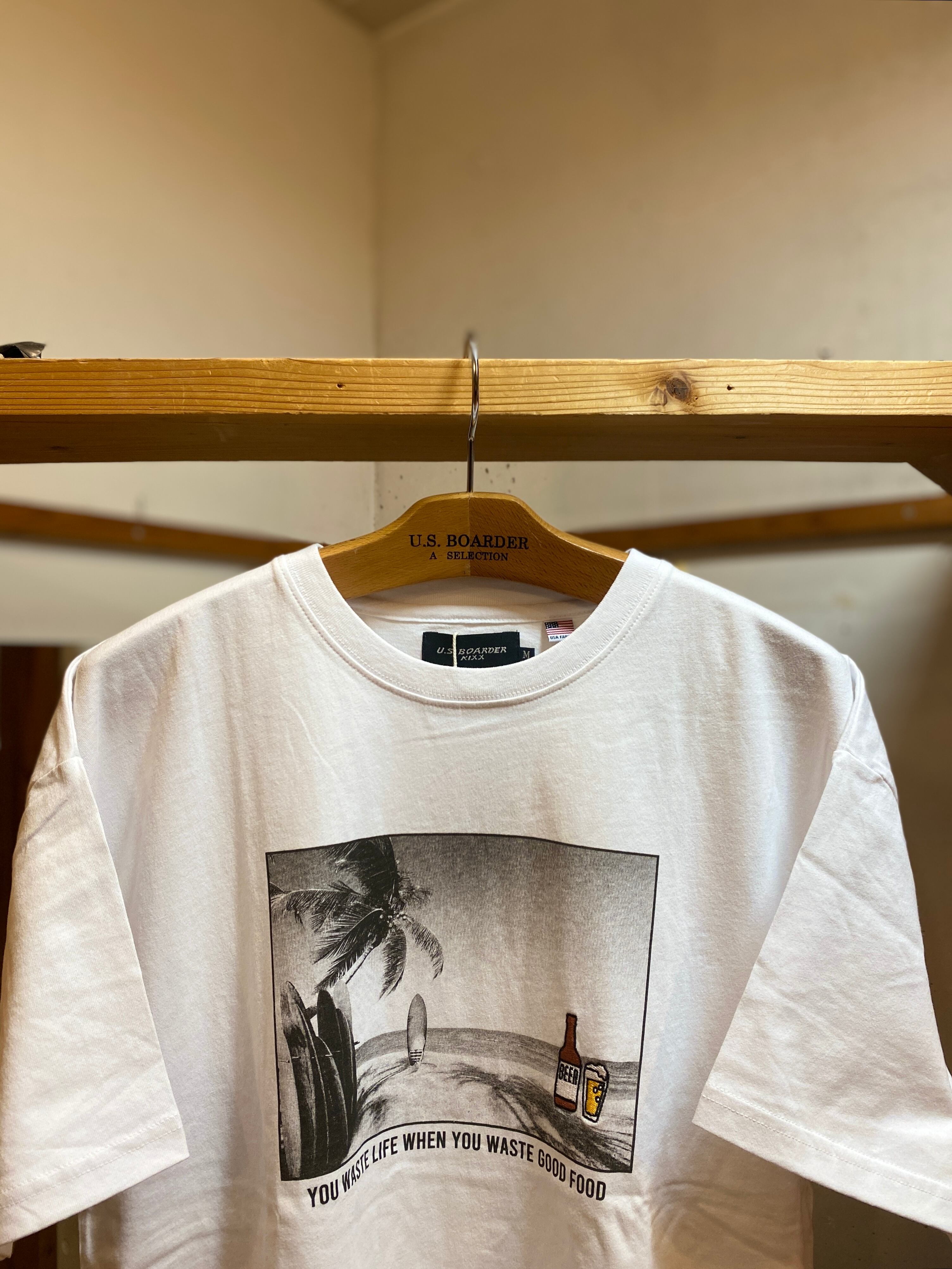 usboarder T-shirt S/S フォトT ビーチ White ホワイト beach フォト Tシャツ 刺繍 ビール 瓶ビールT-shirt