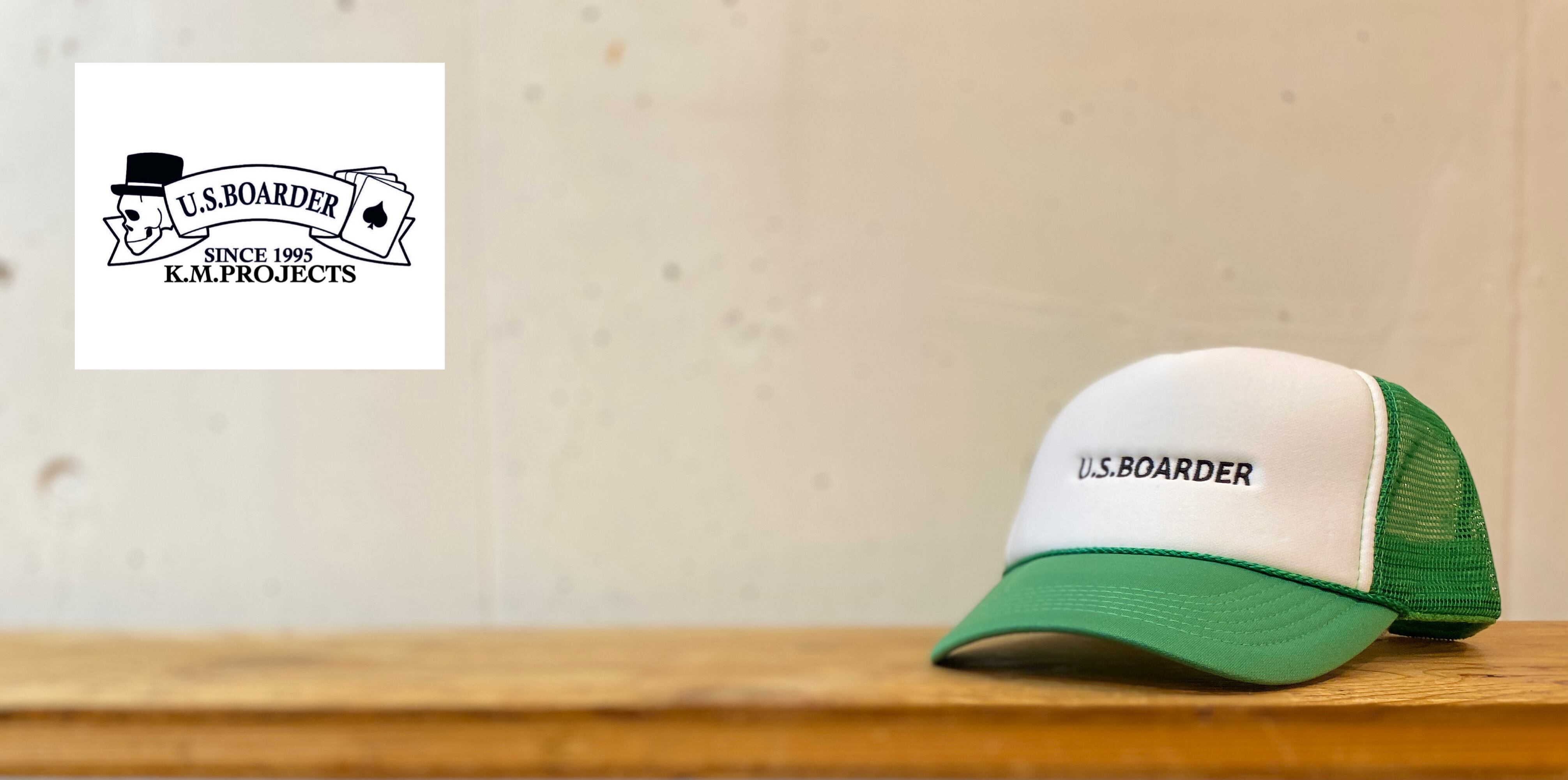 U.S.BOARDER メッシュキャップ Green/White ブラック/ホワイト 緑色/白色 メッシュ キャップ cap メッシュCAP トラッカーキャップ 刺繍 ユーエスボーダー