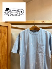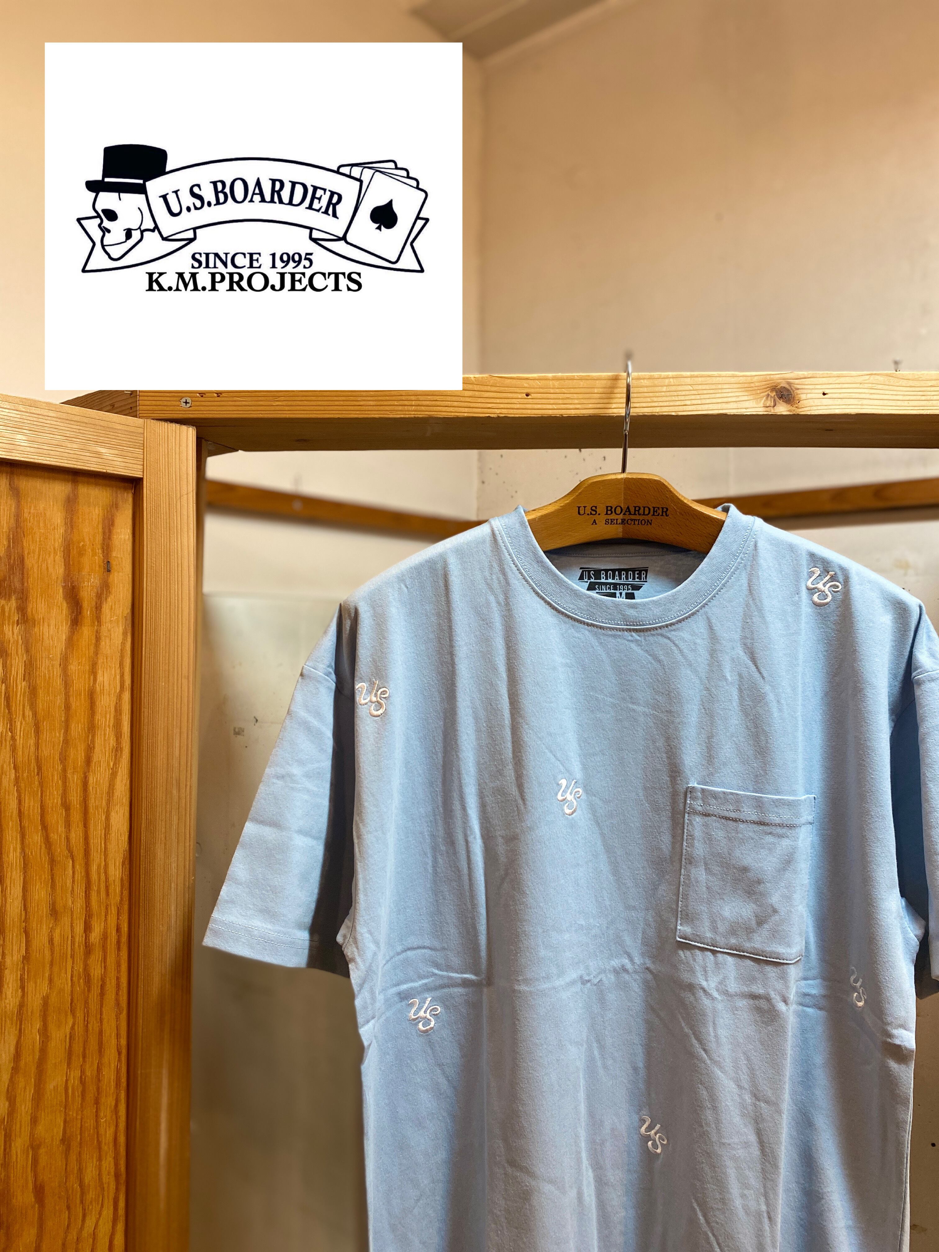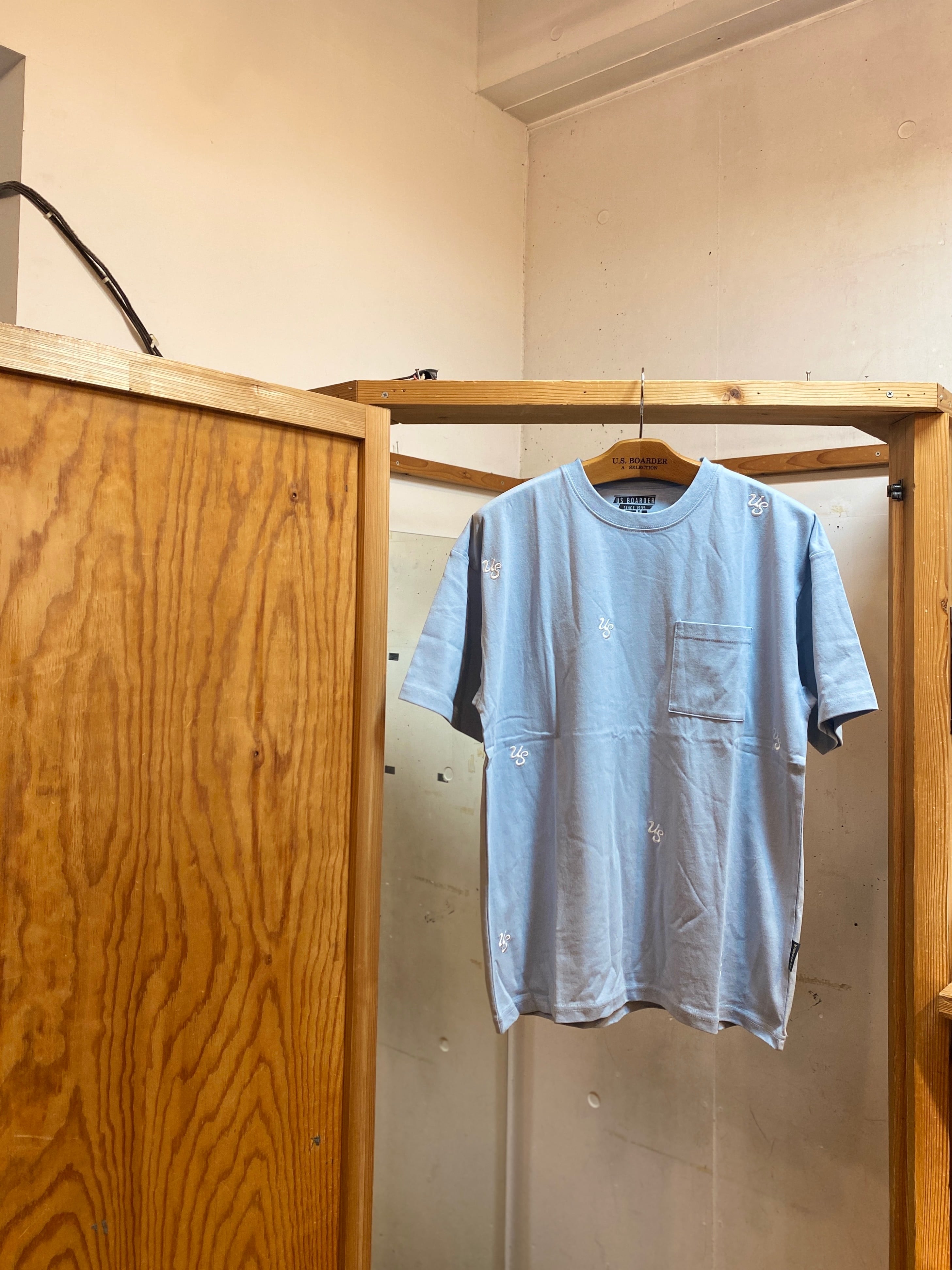 usboarder T-shirt S/S 飛び刺T Saxe ライト サックス ブルー Light saxe blue 水色 刺繍 ユーエスボーダー