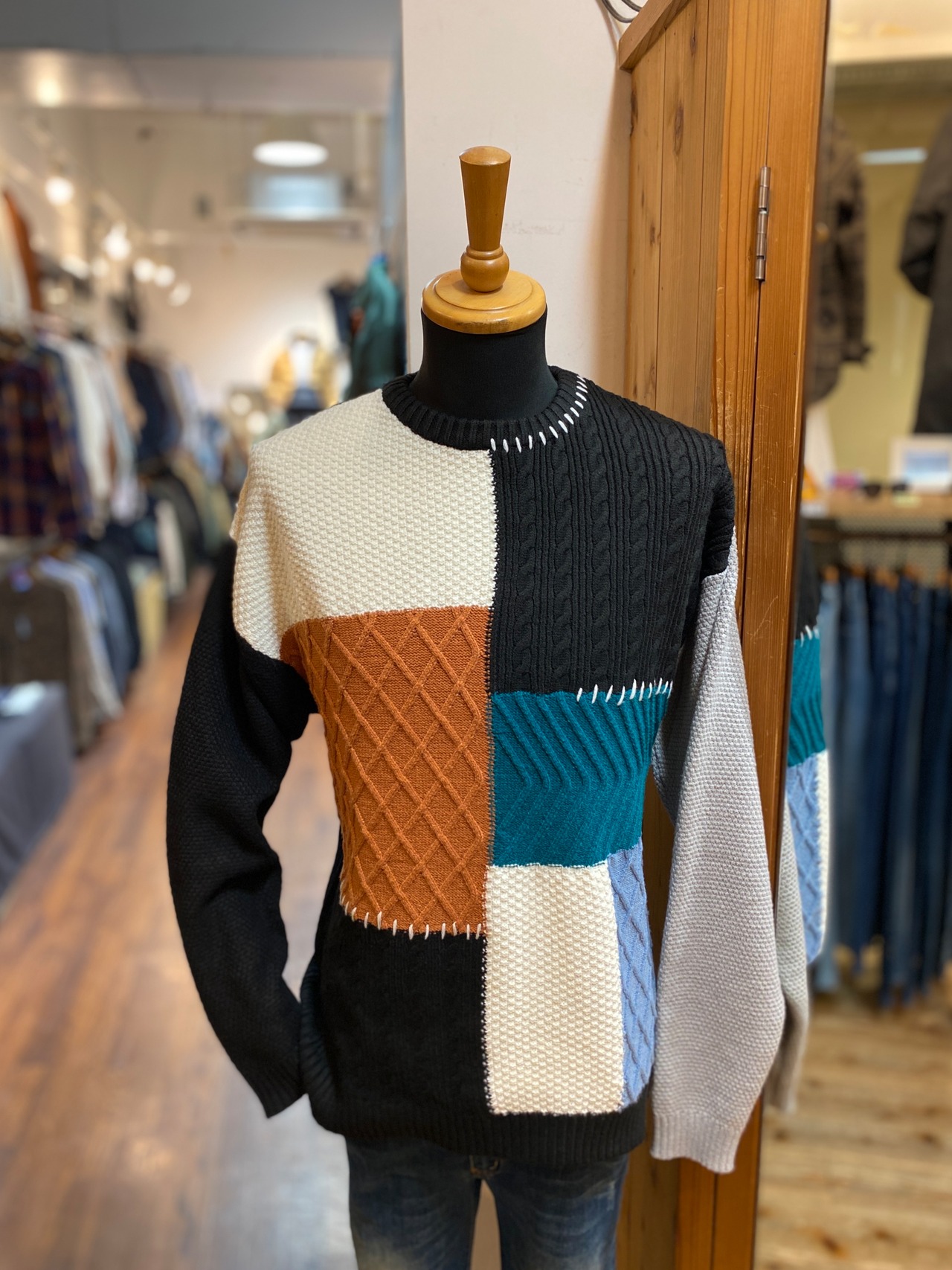 U.S.BOARDER パッチクルー Black ブラック Sweater Knit ニット Patchwork crew neck パッチワーク クルーネック 切り返し ユーエスボーダー usboarder
