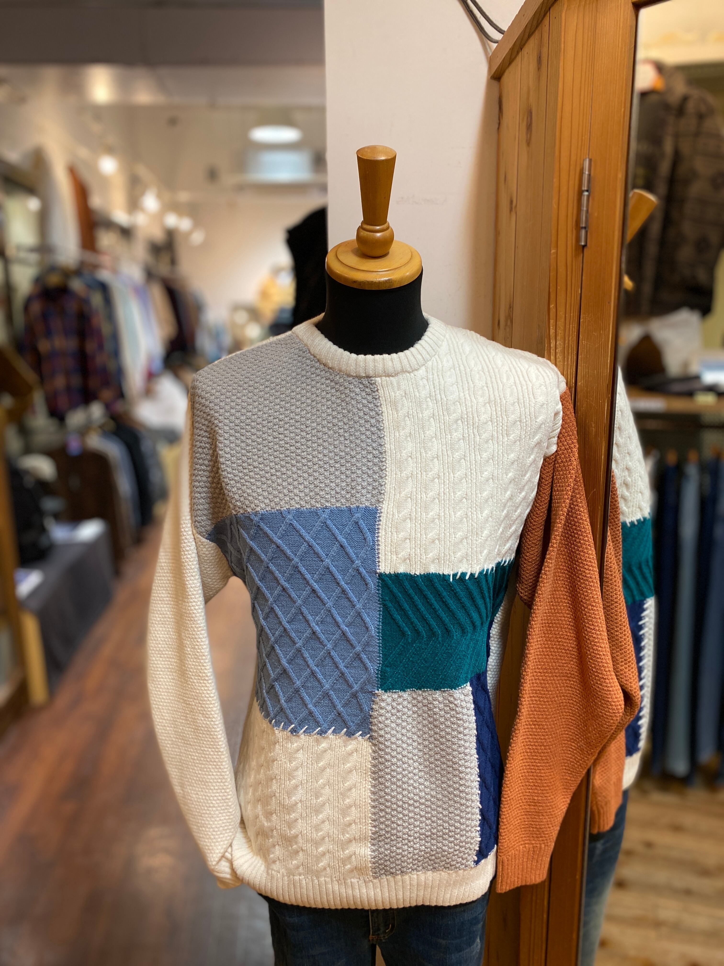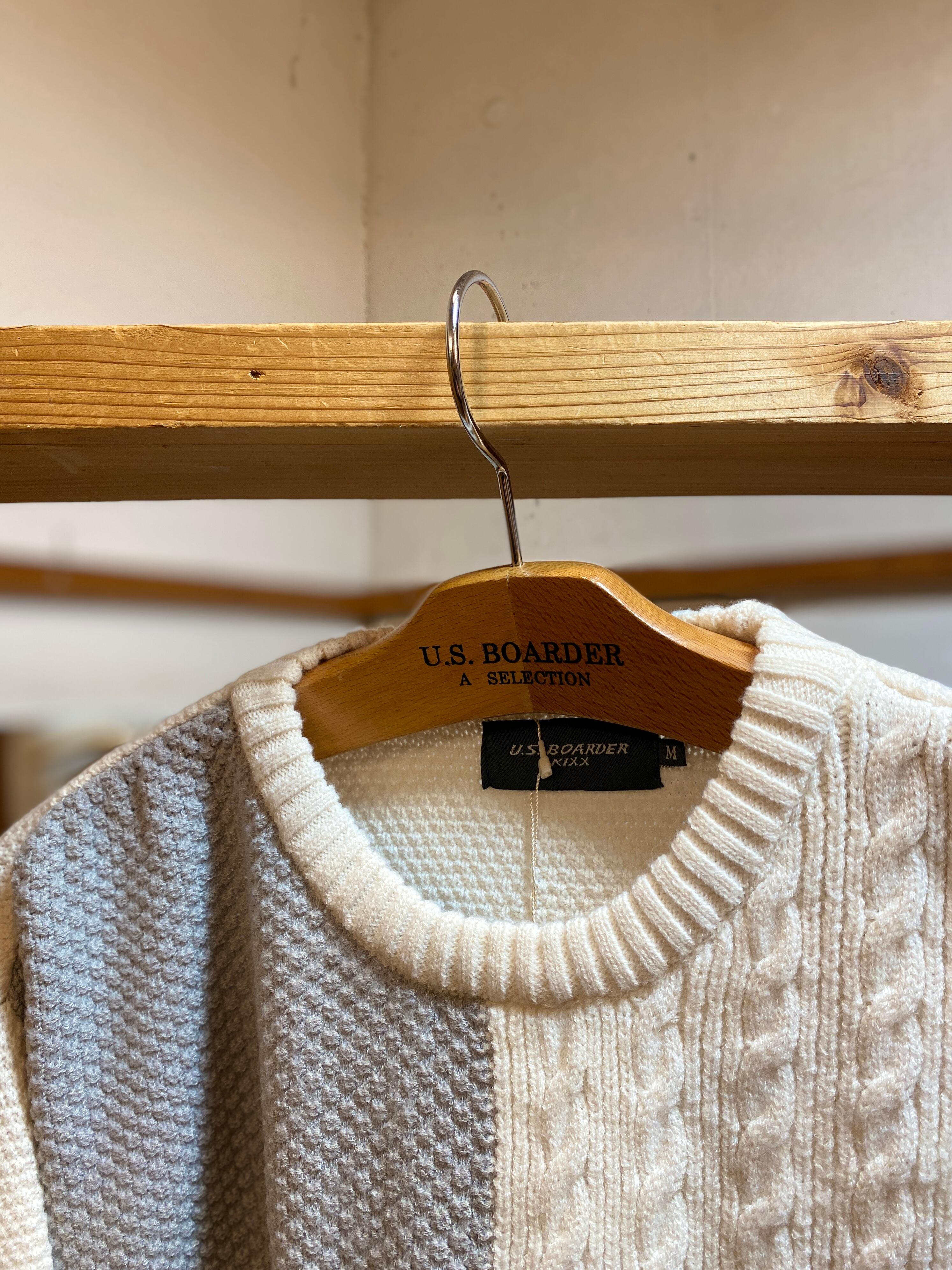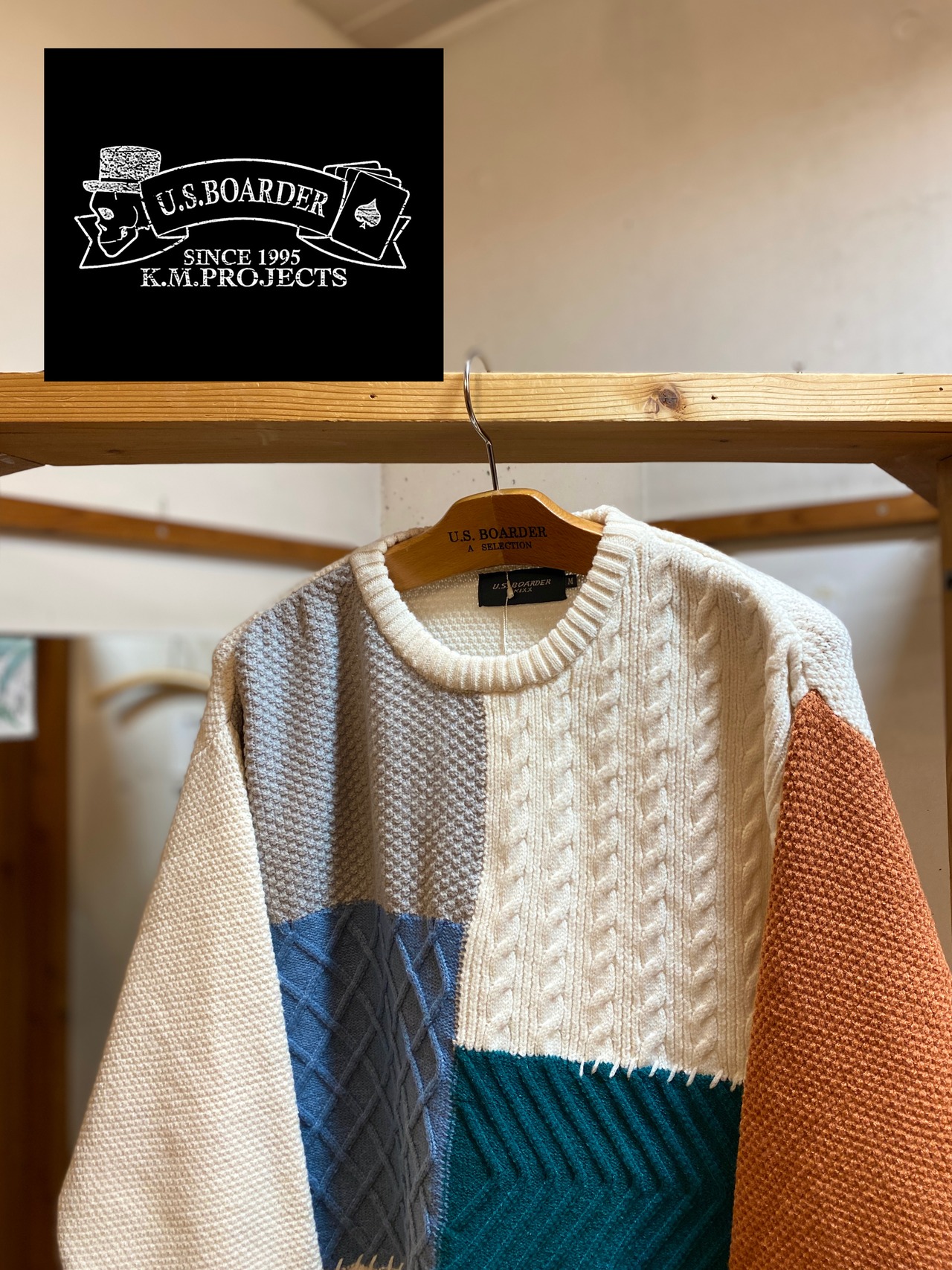 U.S.BOARDER パッチクルー Ivory アイボリー Sweater Knit ニット Patchwork crew neck パッチワーク クルーネック 切り返し ユーエスボーダー usboarder
