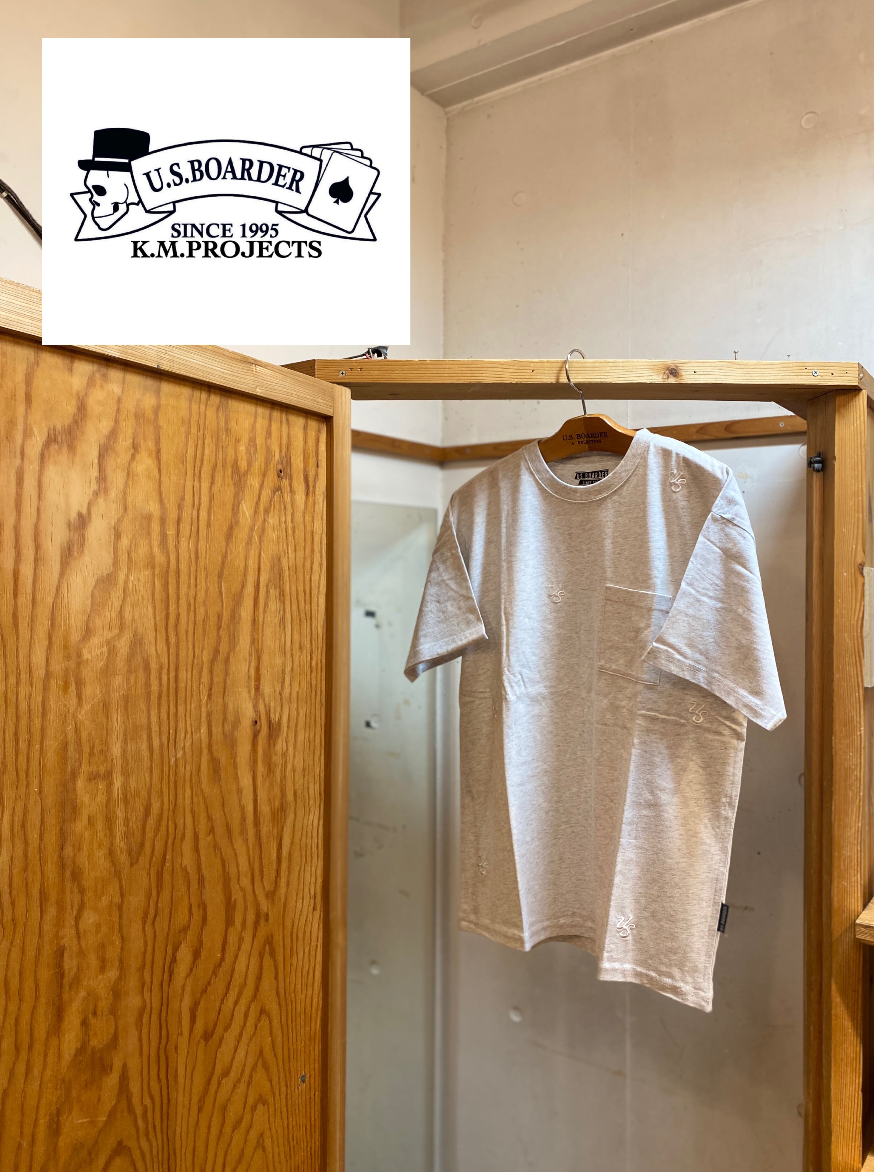 usboarder T-shirt S/S 飛び刺T Ash アッシュ グレイ ASH Gray ねずみ色 刺繍 embroidery ユーエスボーダー